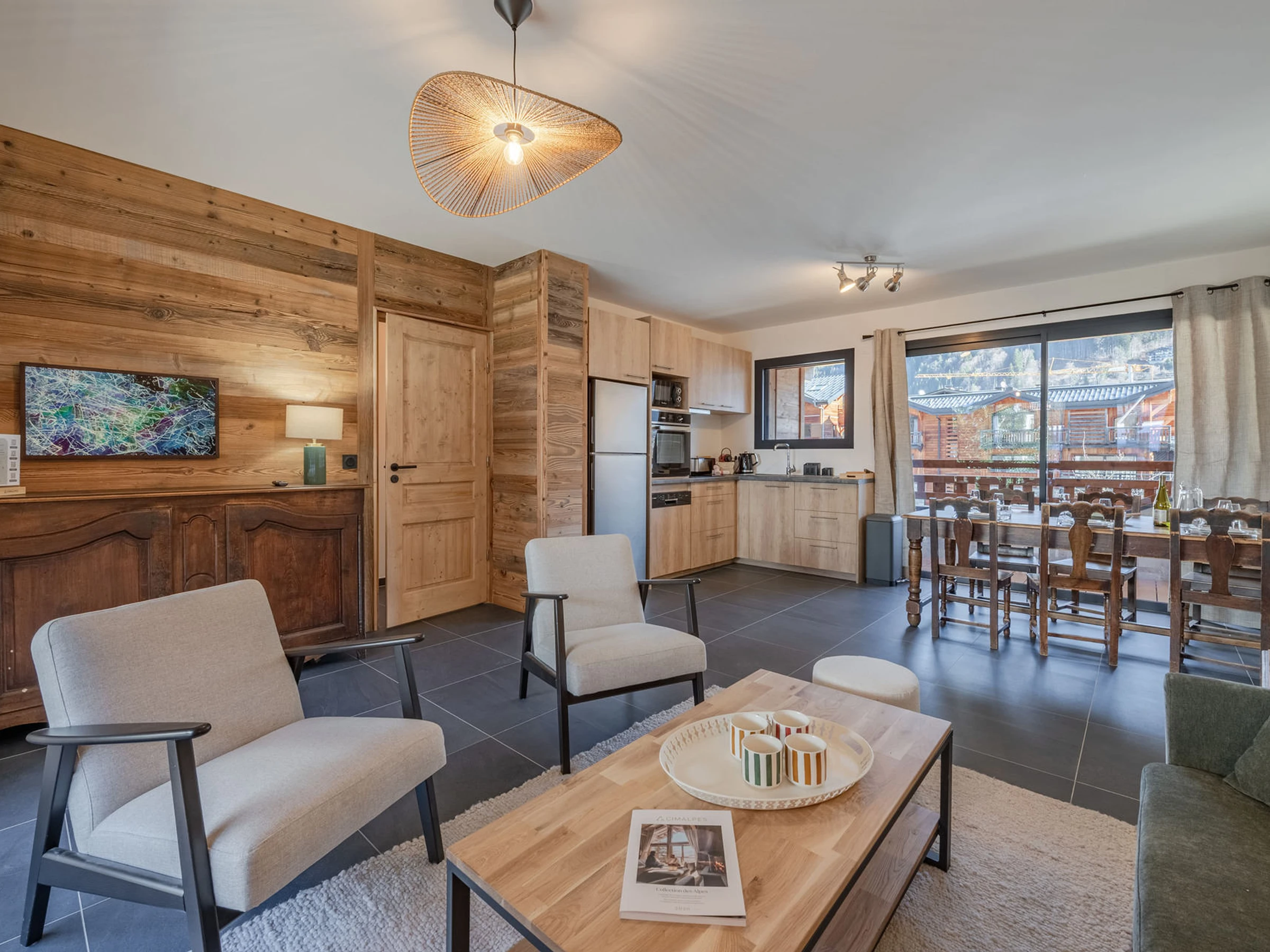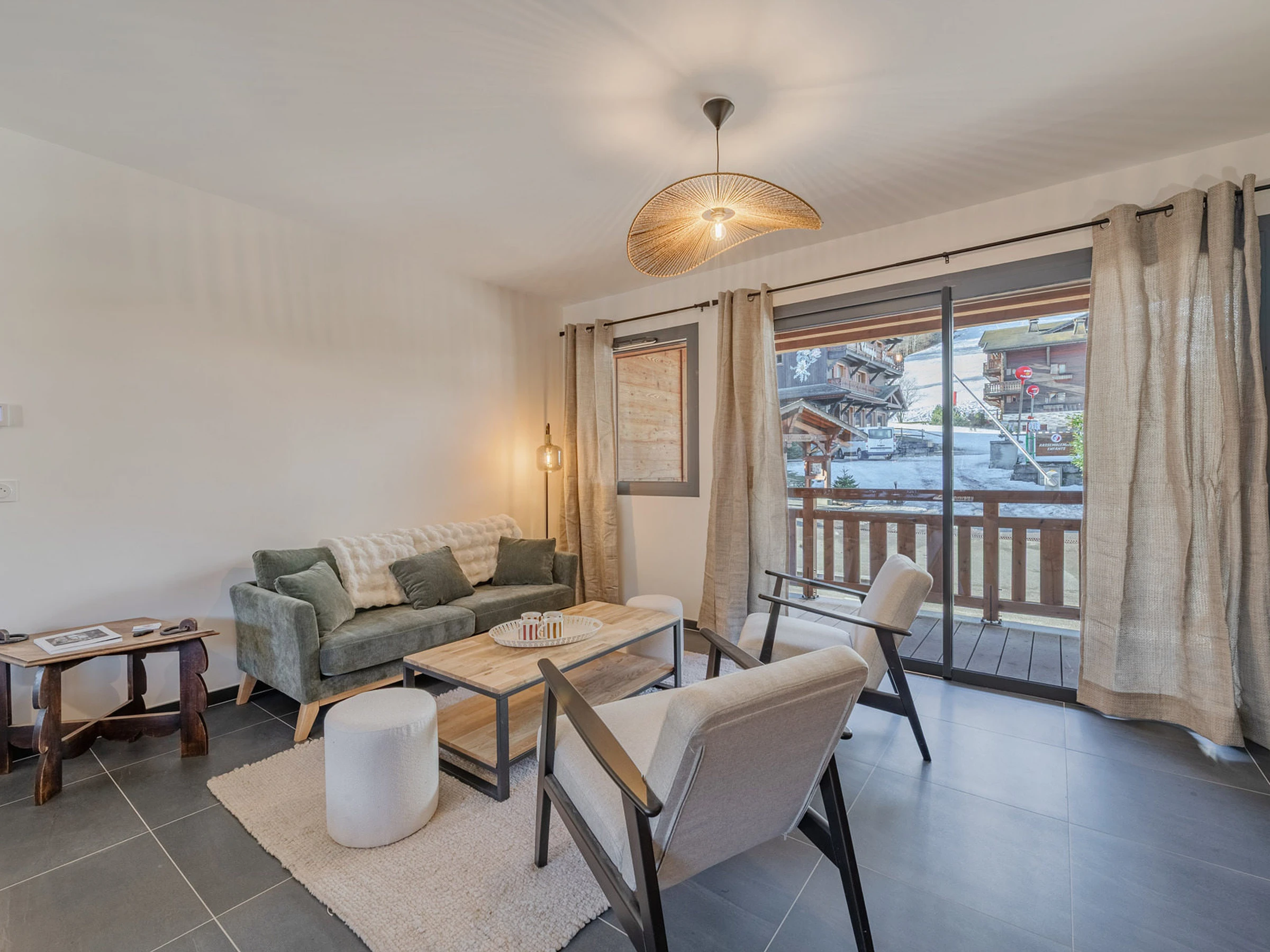 New 4-room apartment, accommodating 6 people (4 adults + 2 children), located on the 1st floor of a residence with an elevator, right at the foot of the slopes and in the heart of Morzine.