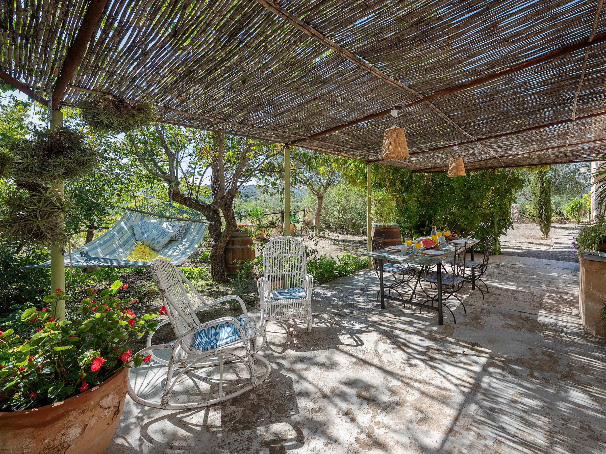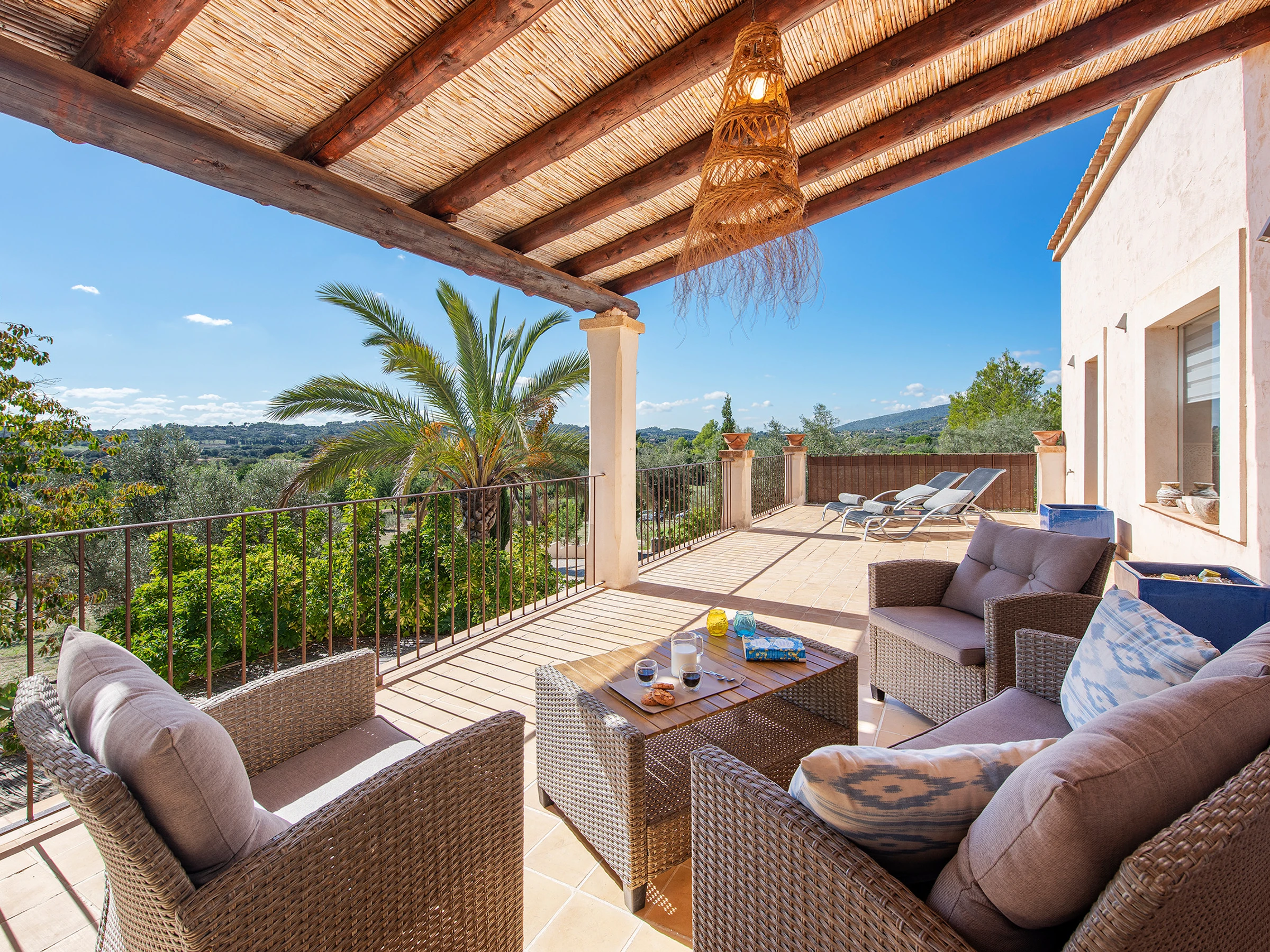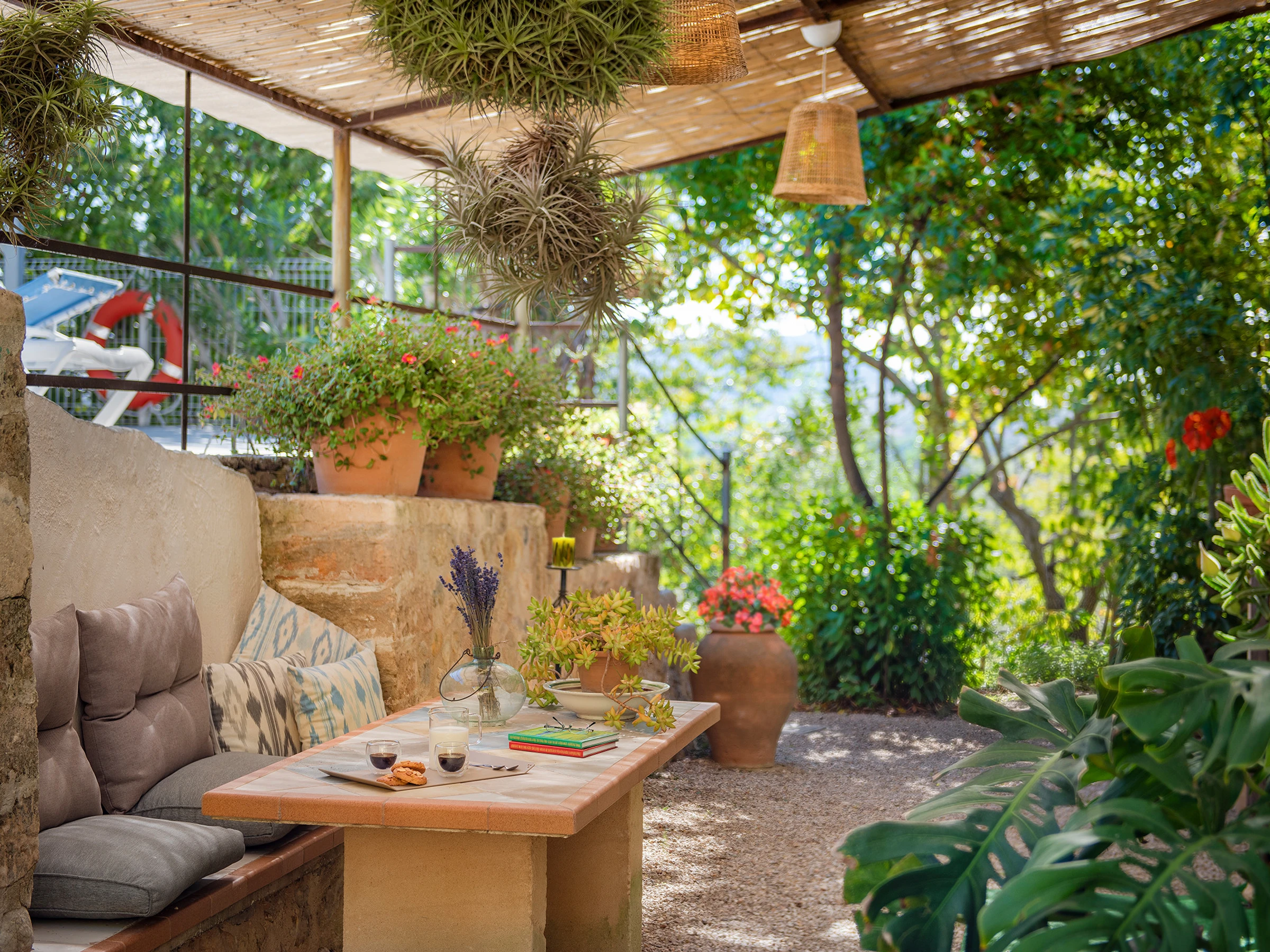Surrounded by Mediterranean flowers and native plants, Villa Sa Fontasa welcomes you to your luxurious holiday home in the heart of nature. As you arrive at the property, you'll find a covered terrace right in front of the main entrance — the ideal spot to enjoy your morning coffee or a glass of wine at sunset.