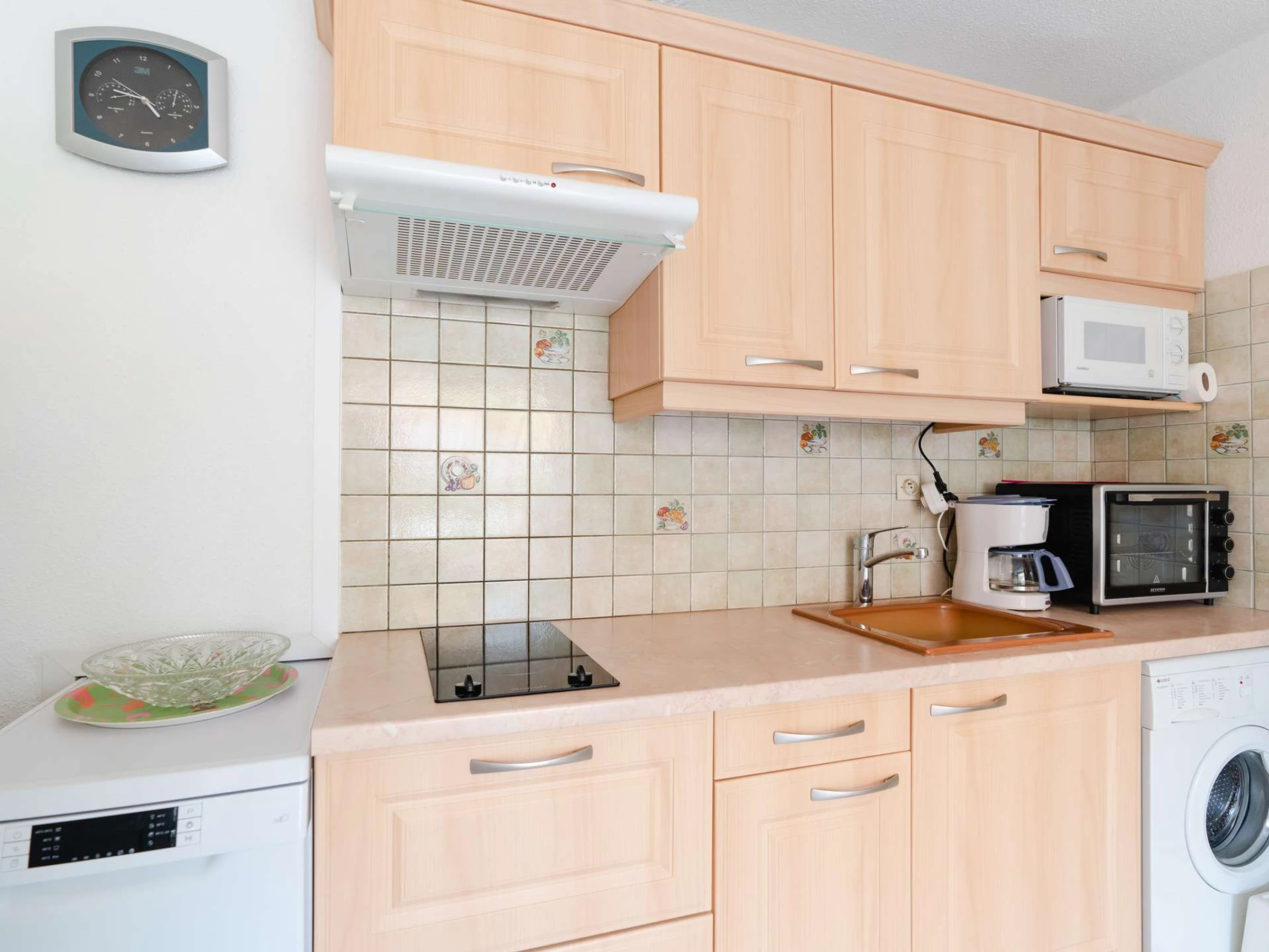 Living room with sofabed (140x190) and ceiling fan, only french TV, kitchen (2 ceran hot plates, microwave, fridge with freezer, washing machine, 1 bedroom with 1 double bed (140x190), shower-room, separated WC.