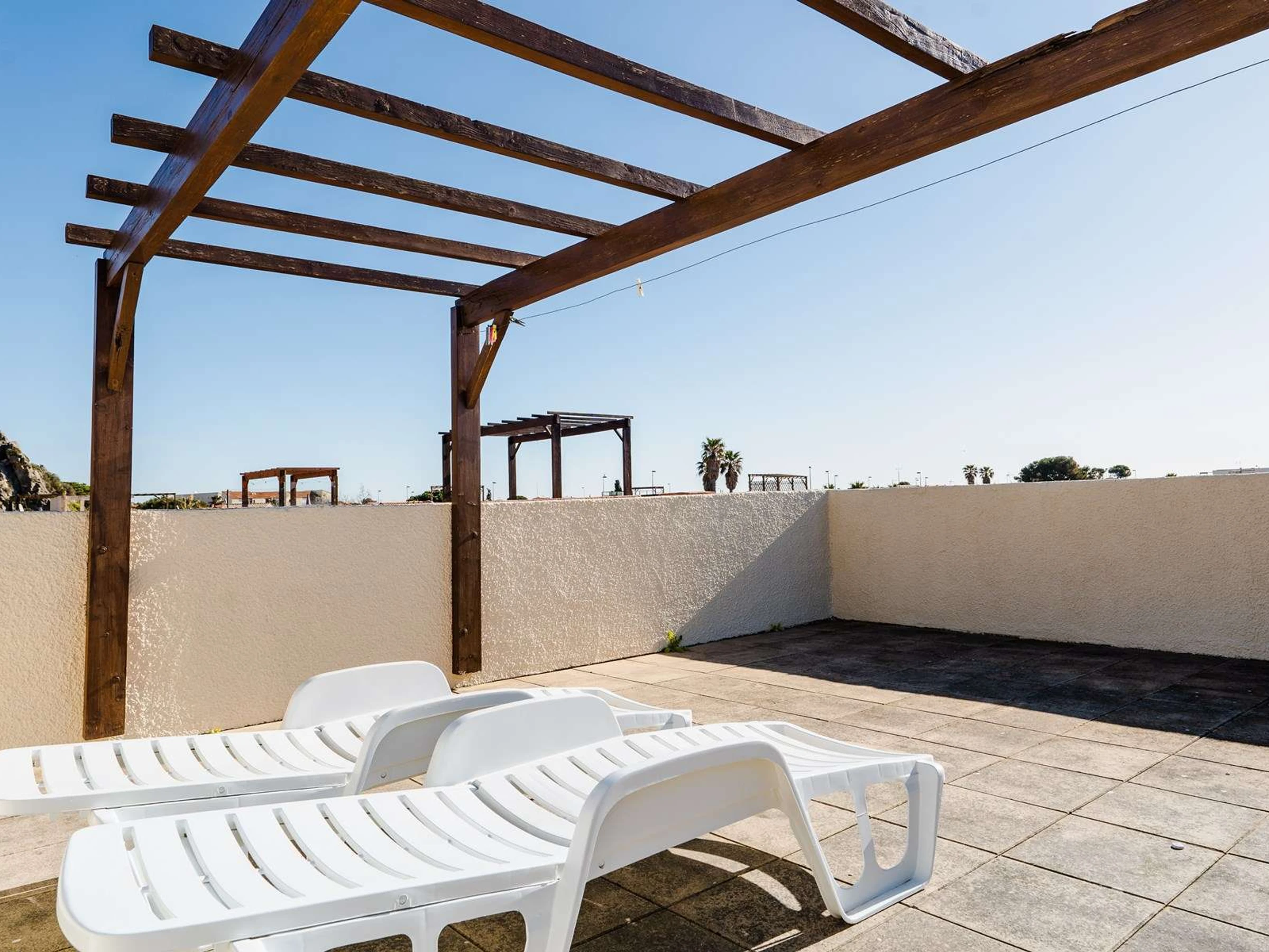3-room villa + sun terrace on the roof, terrace with garden furniture and deck chairs, barbecue. Allocated space parking in the residence. 4 sleeps maxi. Pets not allowed.