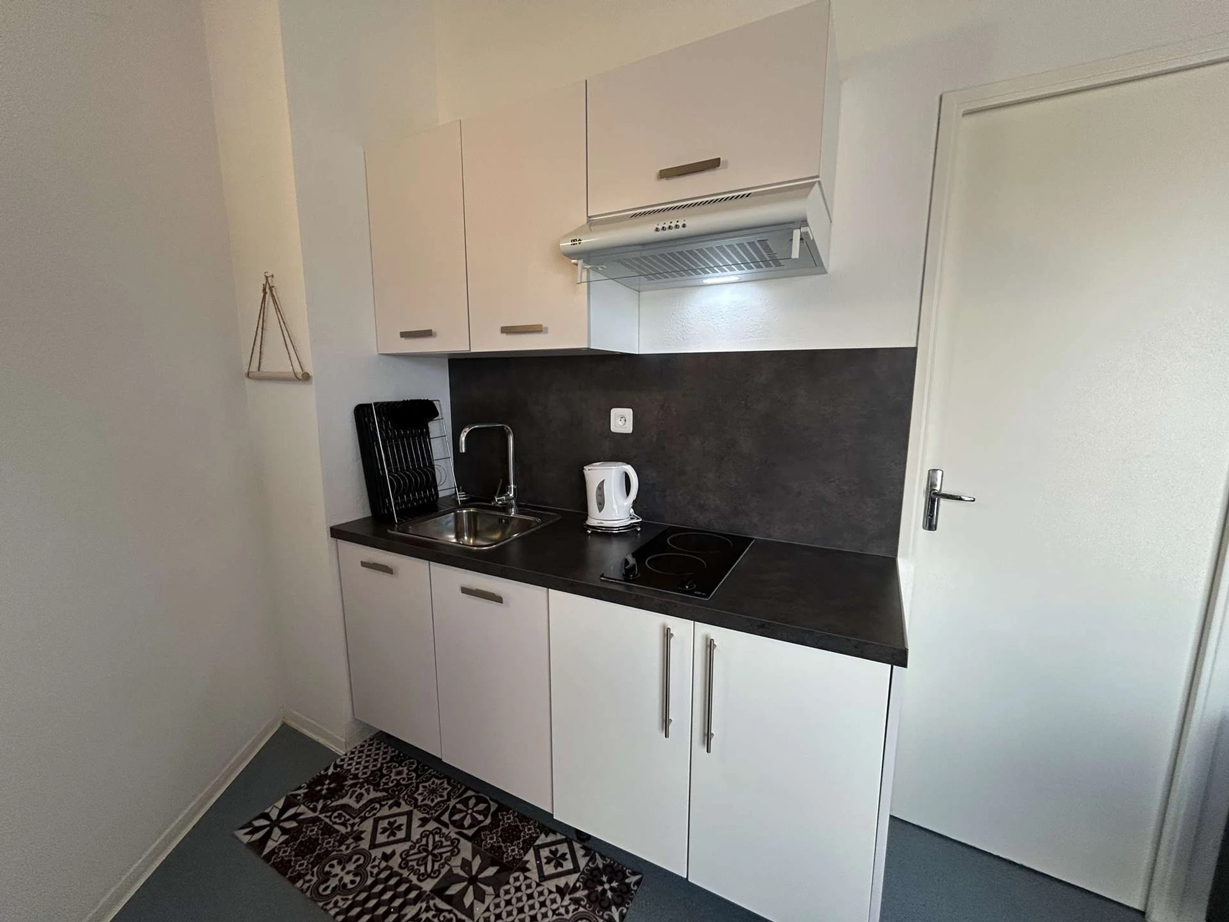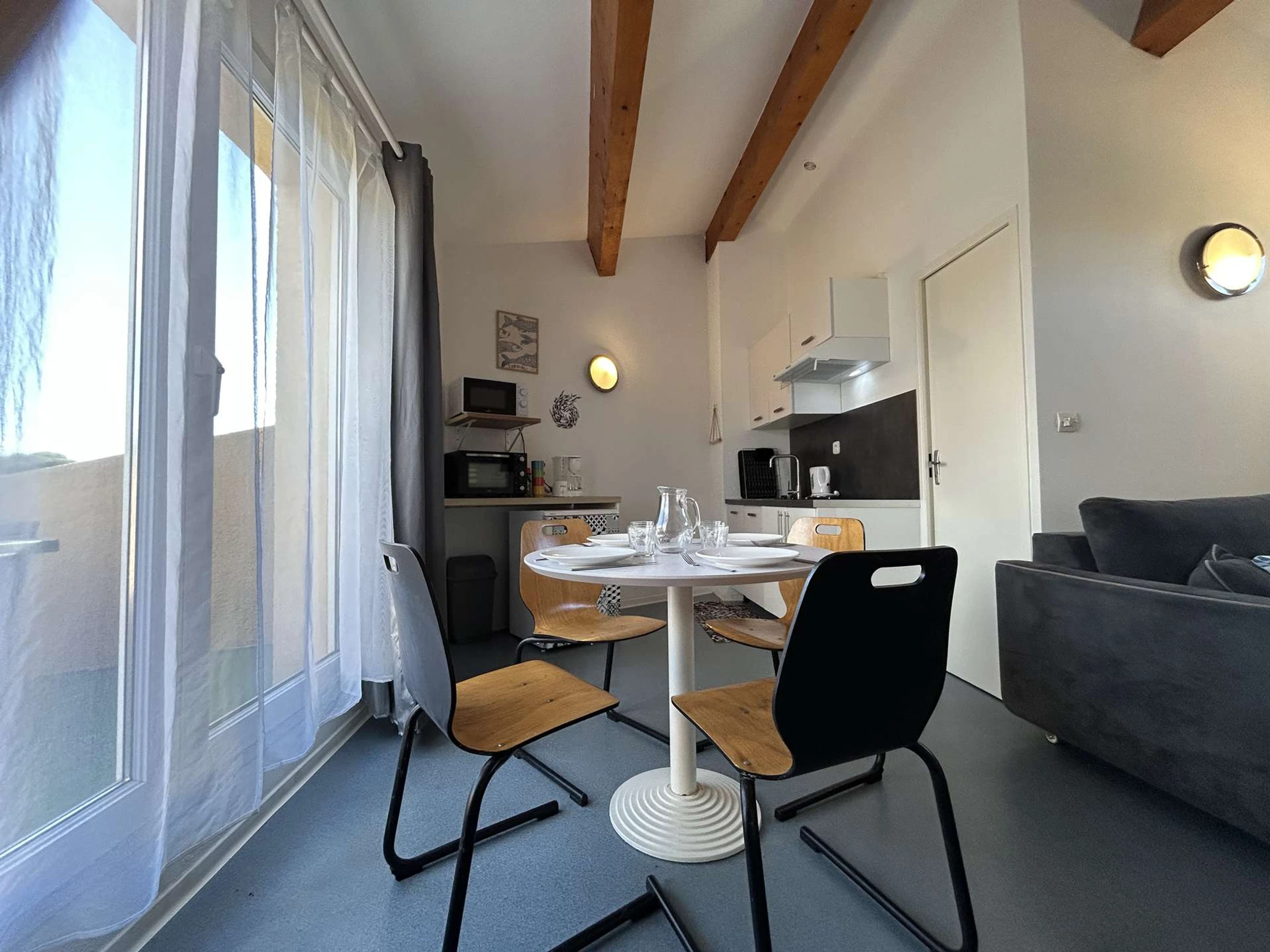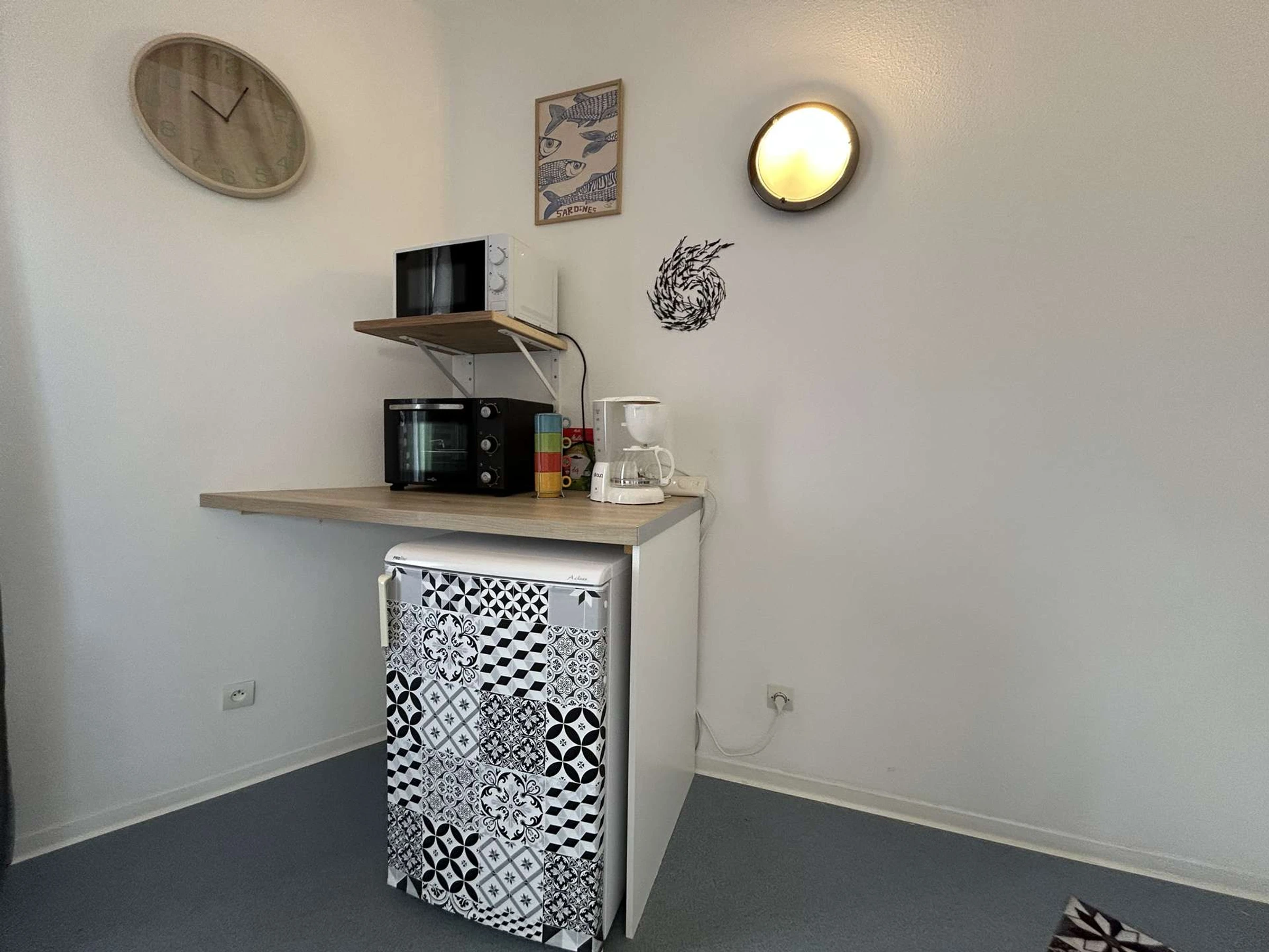 Ce logement de vacances à la mer est composé d'un séjour avec un canapé convertible et télévision (sous réserve d'une bonne réception), d'un coin cuisine, d'une salle d'eau avec WC et d'un balcon.