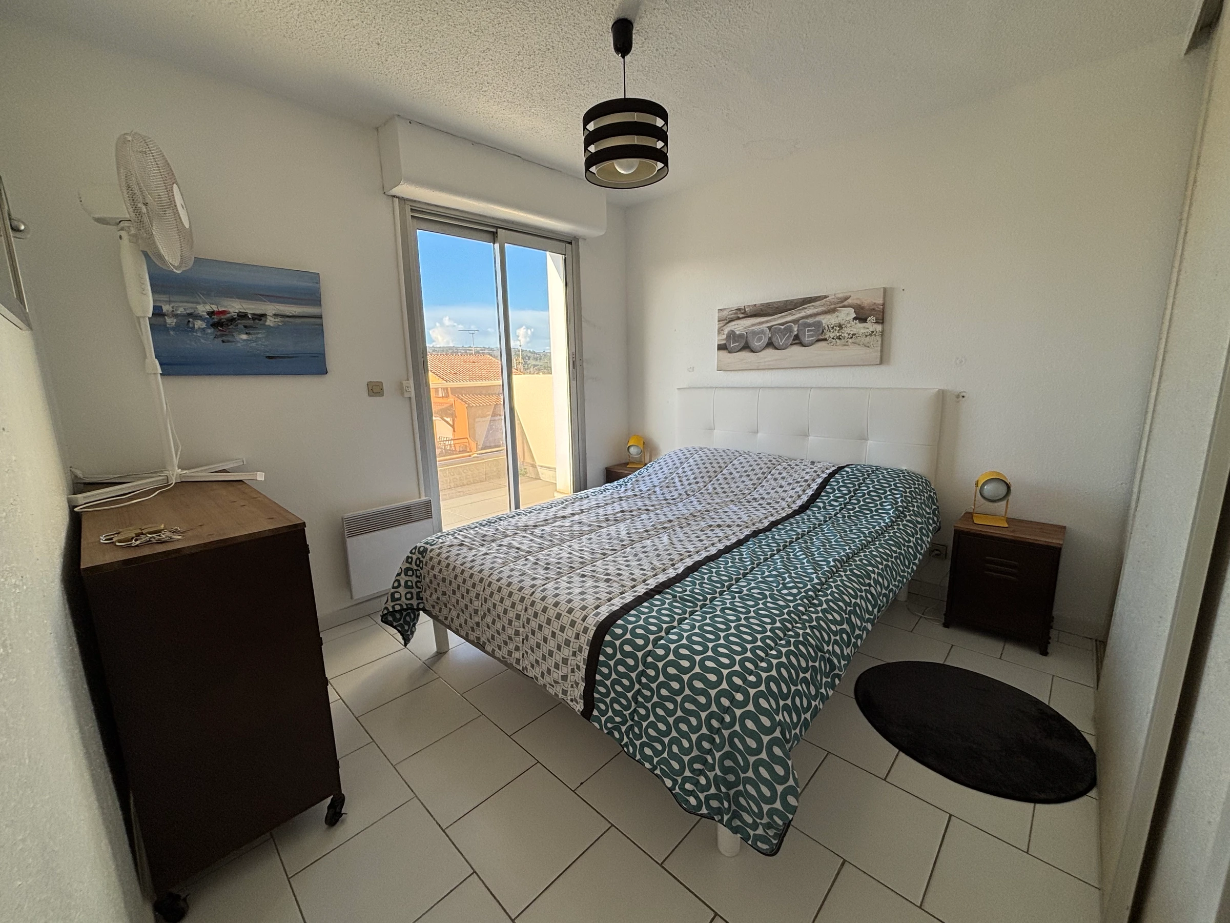 3 bedrooms with storage cupboards: 2 double beds + 1 queen-size bed.