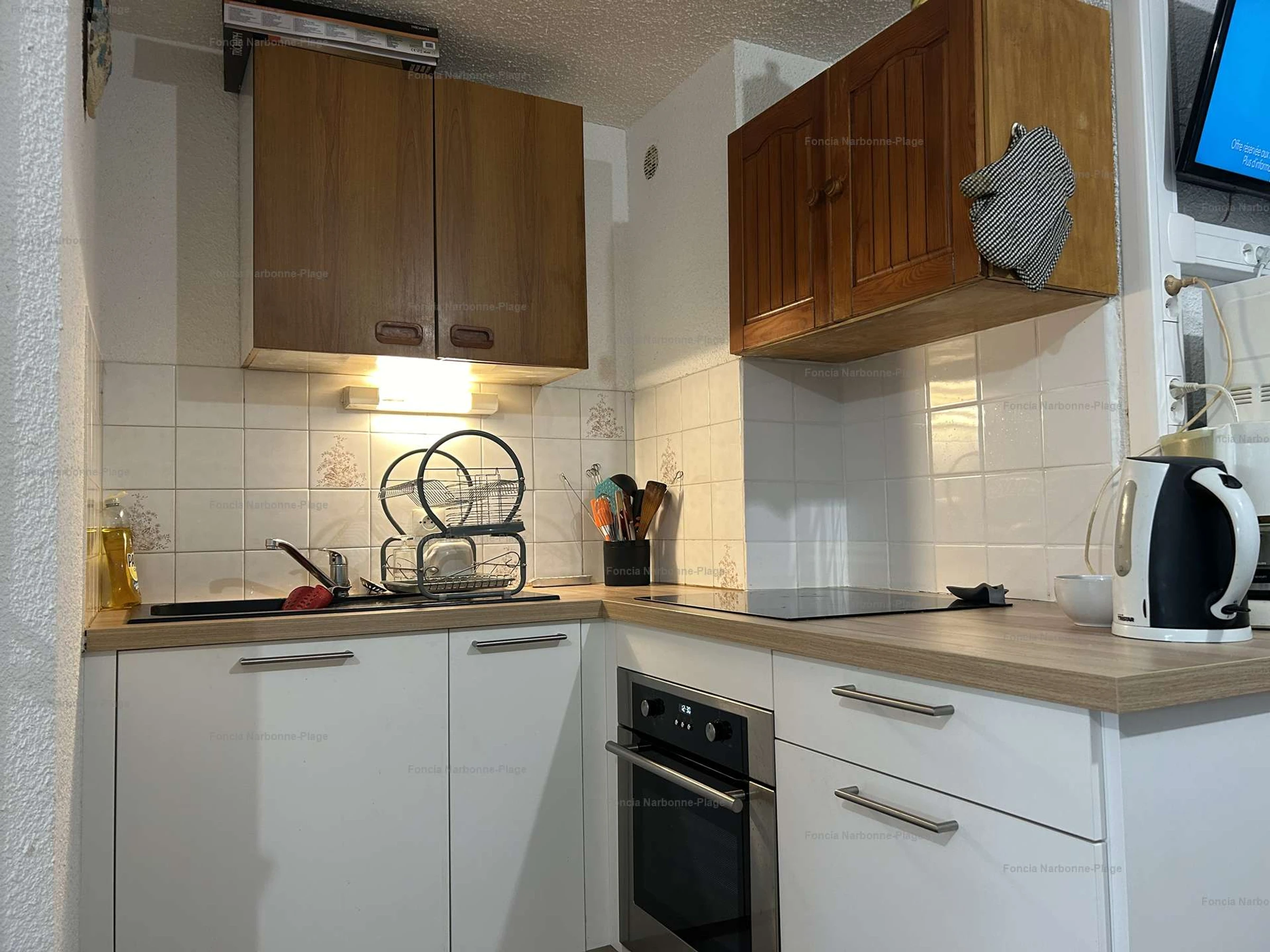 This seaside rental features a terrace, a living room with a double sofa bed and television (subject to good reception), a fully equipped kitchenette, a bedroom with a double bed, and a bathroom with toilet.