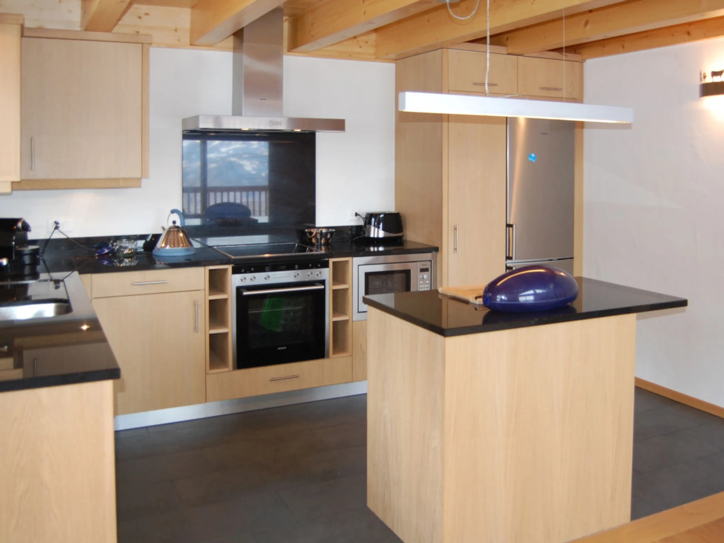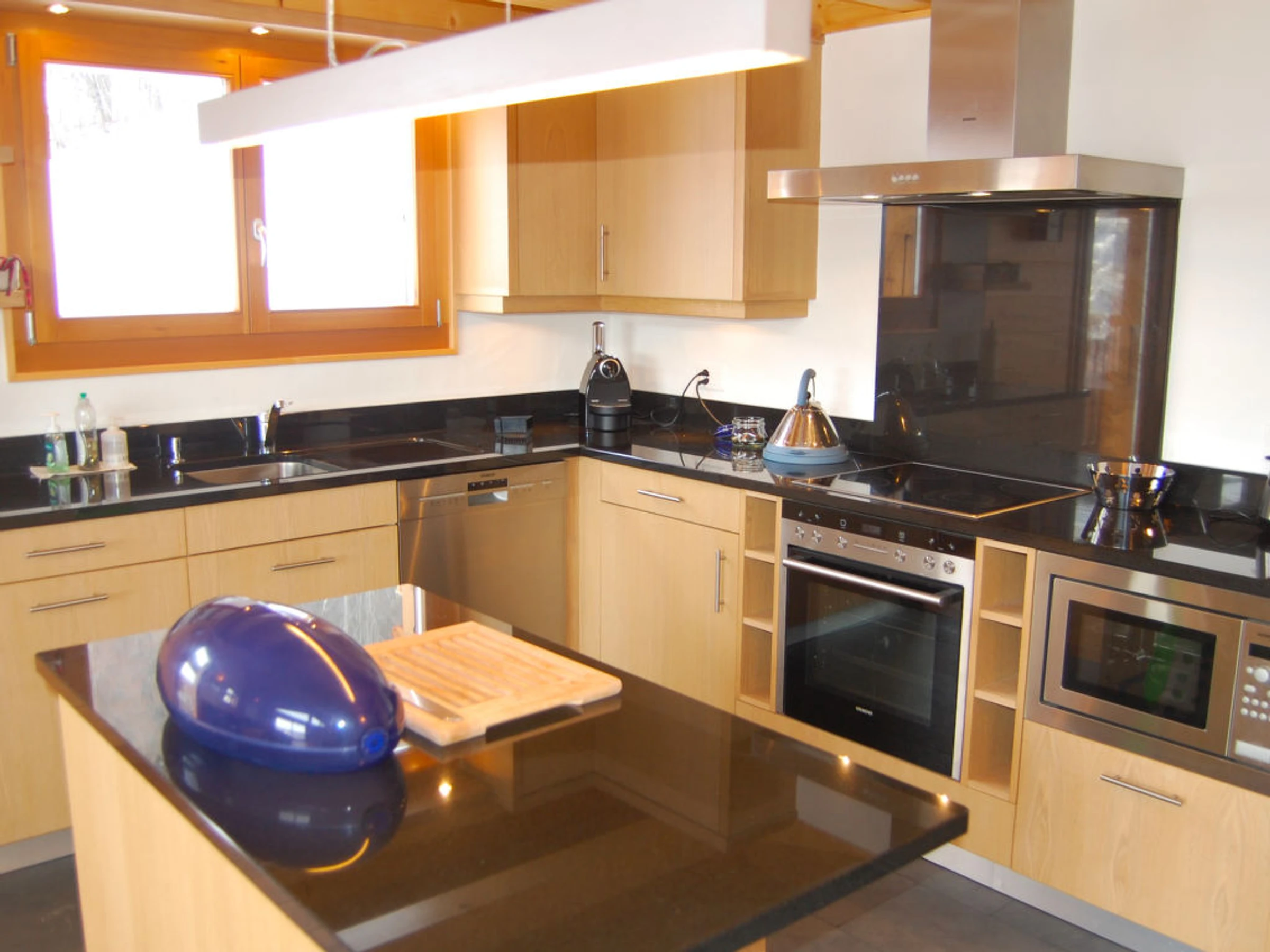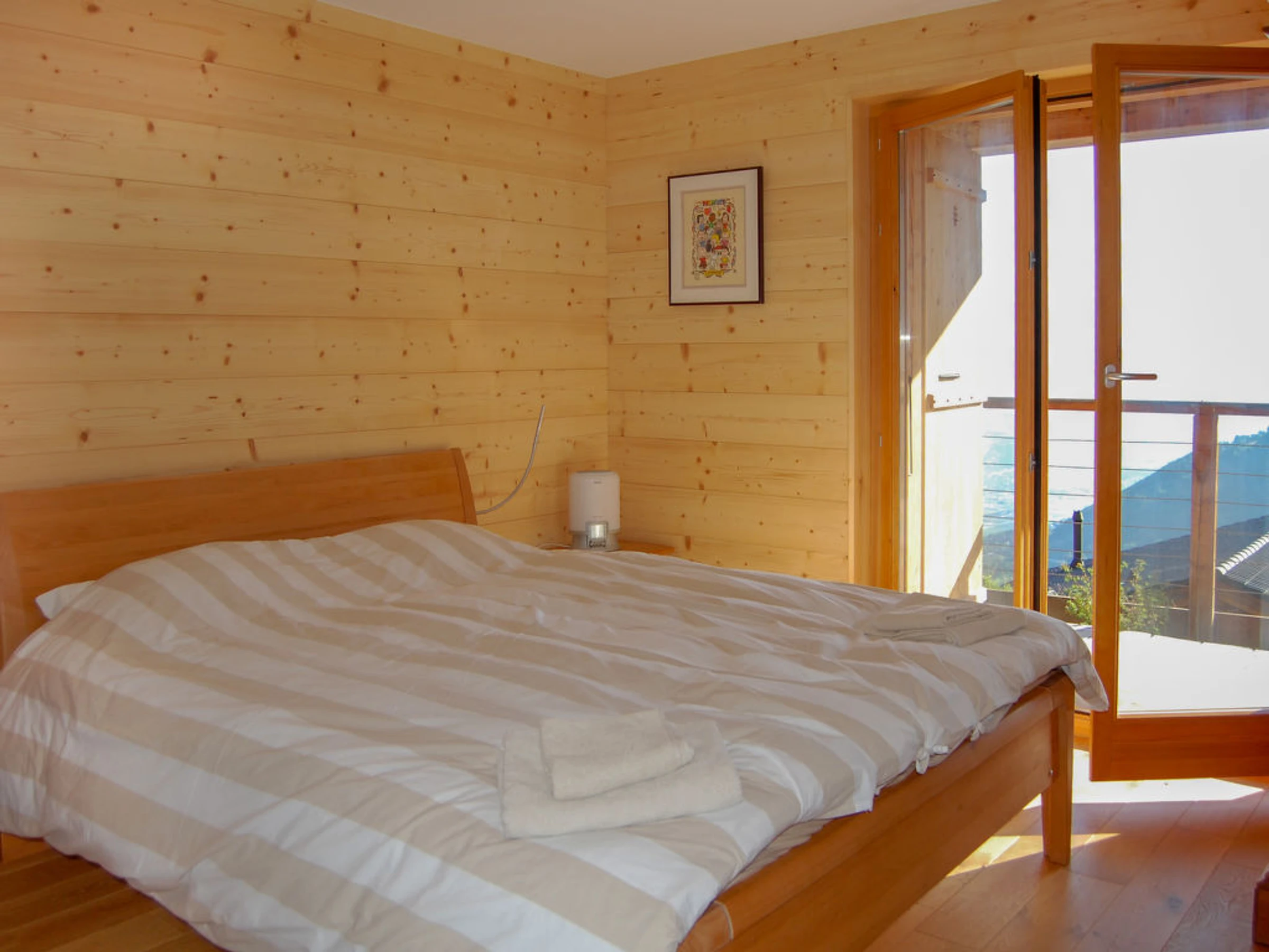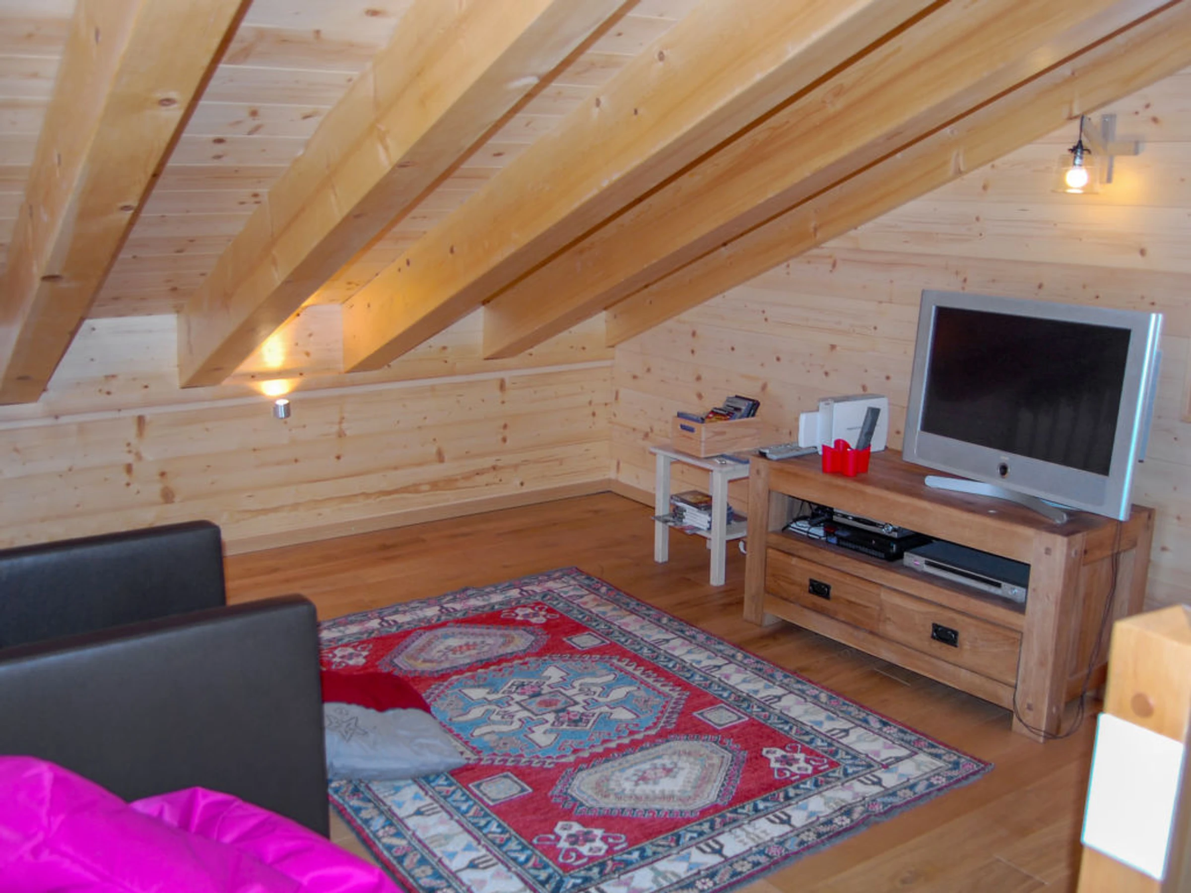 "Chocolat Chaud", 4-room chalet 180 m2 on 3 levels. Beautiful and modern furnishings: living/dining room with open-hearth fireplace and cable TV. Open kitchen (oven, dishwasher, 4 ceramic glass hob hotplates, microwave, freezer, electric coffee machine, Capsules for coffee machine (Nespresso) extra, fondue Set (chinoise, cheese)). Sep. WC. On the lower ground floor: 1 room with 1 french bed (160 cm, length 200 cm). 2 rooms, each room with 1 x 2 bunk beds (90 cm, length 200 cm). Bath/shower/WC, double hand-basin. Upper floor: gallery with cable TV and DVD. Balcony, north facing position terrace, east facing position, garden, west facing position and south facing position. Terrace furniture, barbecue, deck chairs (2). Beautiful view of the valley. Facilities: washing machine, children's high chair, baby cot. Internet (WiFi, free). IPod docking station. Reserved parking (2 cars). Please note: suitable for families. Non-smoking house. Piano. Included: Wireless internet access (WIFI), ERV assurance annulation gratuite Available on site with supplement: Highchair 4.39EUR per day, Cot (up to 2 years) 4.39EUR per day, Baby Buggy 4.39EUR per day Mandatory extra services on site: Local tax children (6-15) 1.25EUR per person/day, Local tax children (6-15) 1.75EUR per person/day, Local tax 3.5EUR per person/day, Local tax babies (0-2) (per person/day), Final cleaning 42.0EUR per person, Local tax 2.5EUR per person/day, Local tax children (3-5) (per person/day), Laundry (initial supply of bed linen and towels) 29.0EUR per person