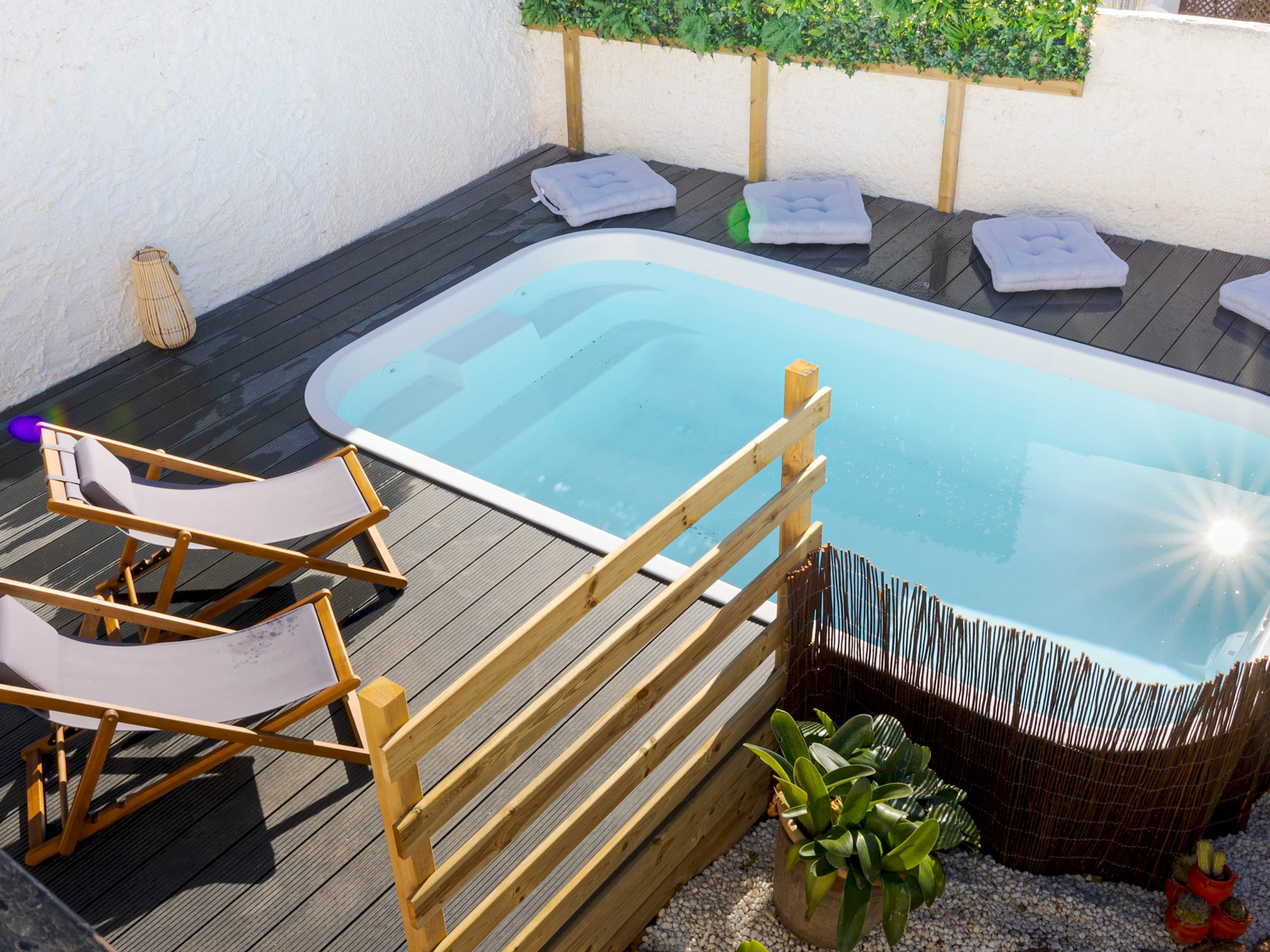 This independent room has direct access from the garden to the pool and terrace, offering added privacy. It includes a double bed, a full en-suite bathroom, a cozy lounge area, a fridge, and a kettle — ideal for guests who appreciate their own space.