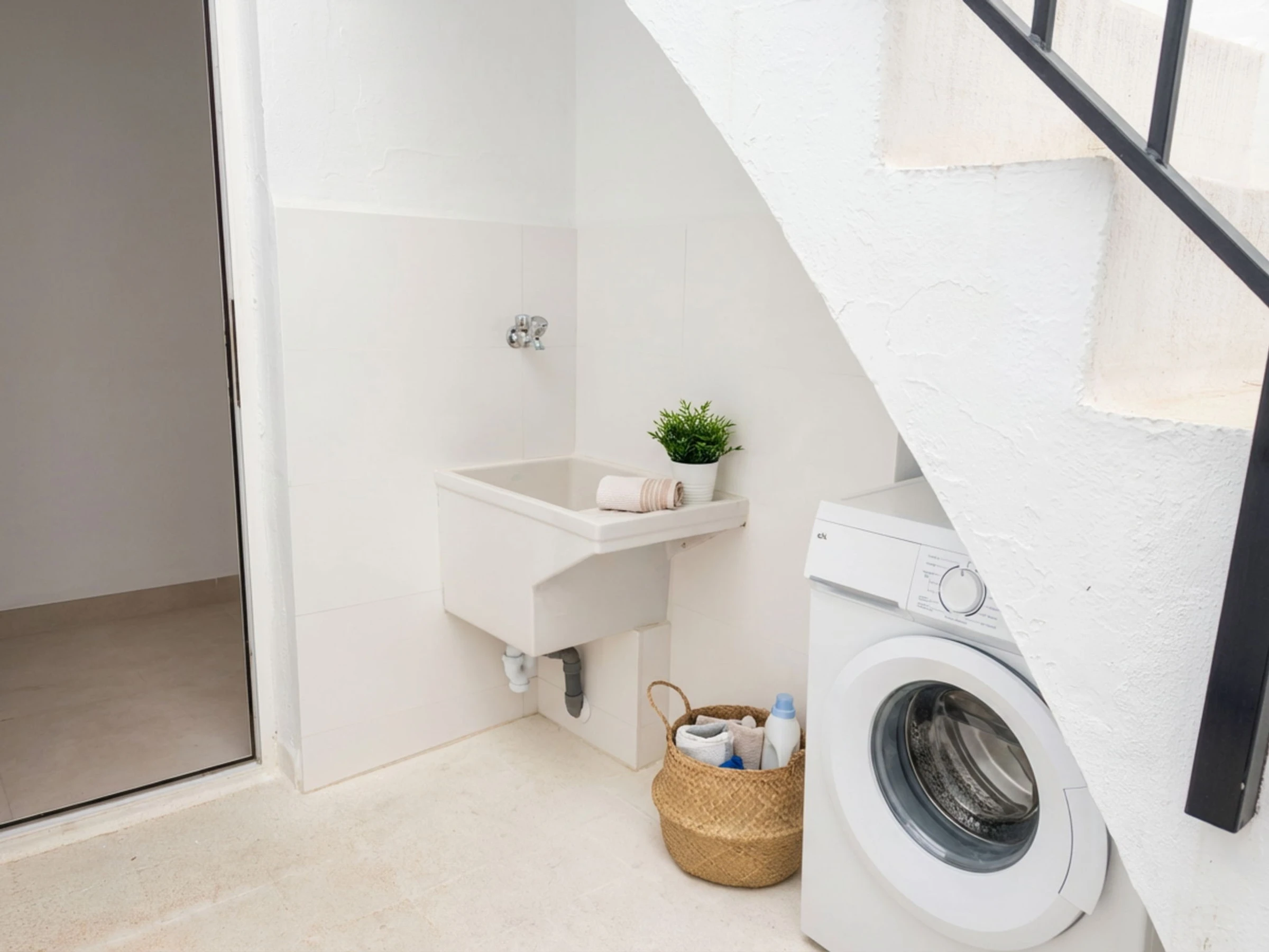 The highlight of this house is its upper level, accessed via an internal staircase. After passing through an independent laundry area with a washing machine, you reach the solarium terrace for exclusive use. Equipped with sun loungers, a table, and chairs, it is the perfect corner to relax after a day at the beach. From here, you can enjoy the sun all day long and dine outdoors with total privacy, contemplating the typical rooftops of the town with a small glimpse of the Mediterranean blue on the horizon.Why Choose Casa Chica for Your Holidays