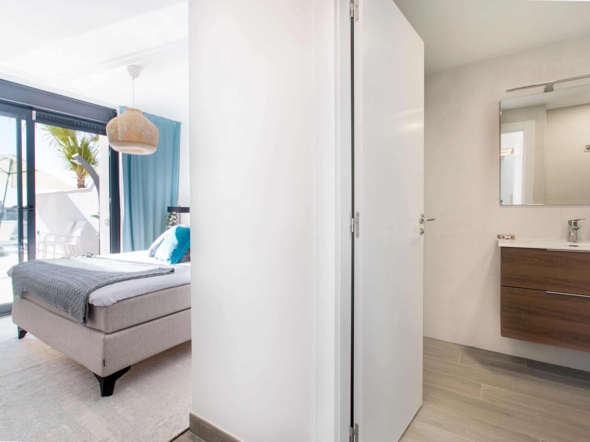 "Royal Palm", 5-room terraced house 180 m2 on 3 levels, south facing position. Spacious and bright, comfortable and luxurious furnishings: living/dining room with separate WC, digital TV, air conditioning and forced-air heating. Exit to the terrace, to the swimming pool. Open kitchen (oven, dishwasher, 4 ceramic glass hob hotplates, toaster, kettle, microwave, freezer, electric coffee machine). Exit to the terrace. Sep. WC. On the lower ground floor: lounge with 2 sofabeds, air conditioning and forced-air heating. Shower/WC. Upper floor: 1 room with 1 french bed (160 cm, length 200 cm), shower/WC, air conditioning and forced-air heating. Exit to the terrace, to the swimming pool. 1 room with 1 french bed (160 cm, length 200 cm), air conditioning and forced-air heating. 1 room with 1 french bed (160 cm, length 200 cm), air conditioning and forced-air heating. Shower/WC. 2 large terraces. Terrace furniture, barbecue, deck chairs. Very beautiful view of the sea. Facilities: washing machine, iron, children's high chair, baby cot for up to 3 year olds, hair dryer. Internet (WiFi, free). [hidden] // Reg. Nr.: ESFCTU000029013001085445000000000000000085445016[hidden]4