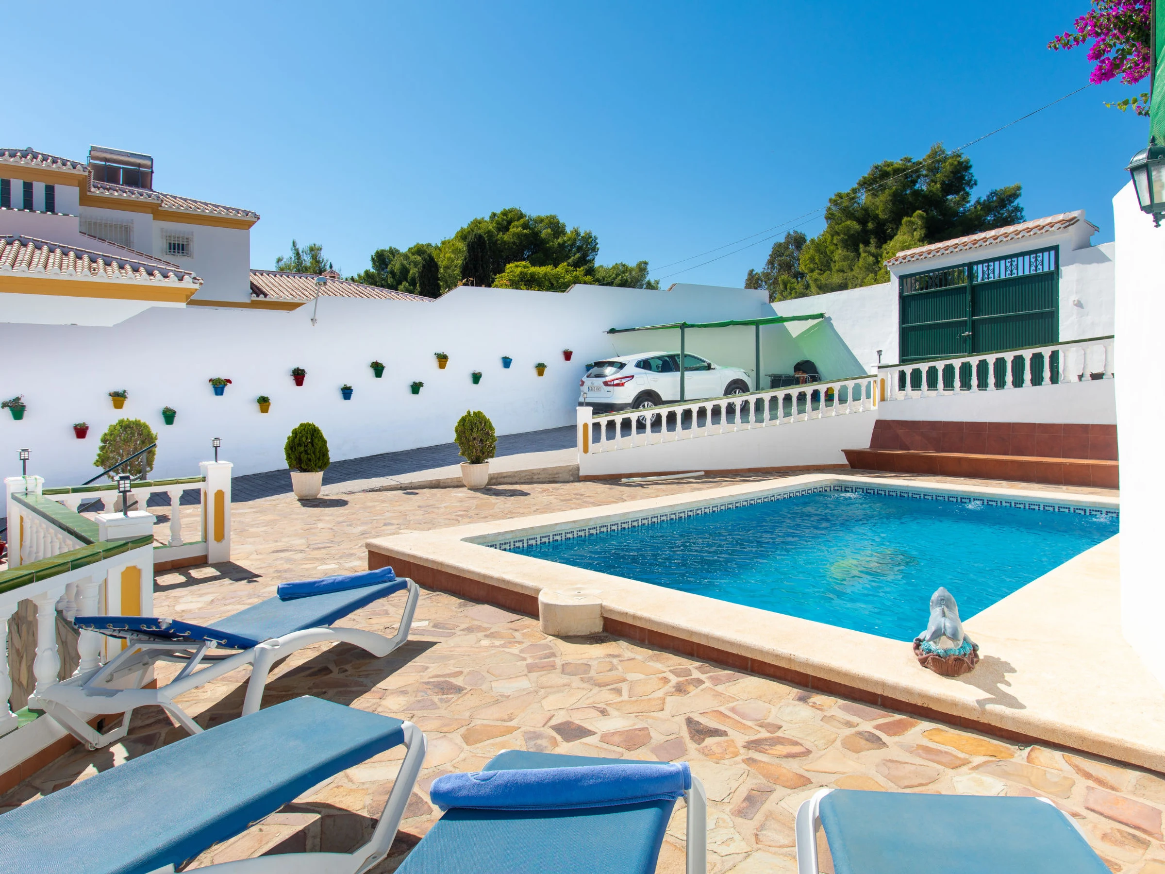 Nerja: Beautiful, cosy house "Castillo Alto". Outside the resort, 2.4 km from the centre of Nerja, 2.5 km from the sea, 2.5 km from the beach. Private: swimming pool angular (8 x 4 m, depth 100 - 175 cm, seasonal availability: [hidden] - [hidden] Shower/WC in the pool area, arbour, terrace, garden furniture. In the house: washing machine. Parking. Shop 1 km, grocery 1 km, supermarket 1 km, shopping centre 23 km, restaurant 1 km, bar 2 km, bakery 1 km, pub garden 2 km, bus stop 500 m, railway station "Malaga" 50 km, diving center 2.5 km. Sports harbour 23 km, surf school 23 km. Nearby attractions: Frigiliana, Malaga, Granada, La Herradura, Almuñecar, Maro. Well-known ski regions can easily be reached: Sierra Nevada. Hiking paths: Sierra Tejeda, Sierra Almijara, Las Alpujarras. Please note: car recommended. The owner does not accept any youth groups. Loading and unloading of baggage is possible at the holiday house.