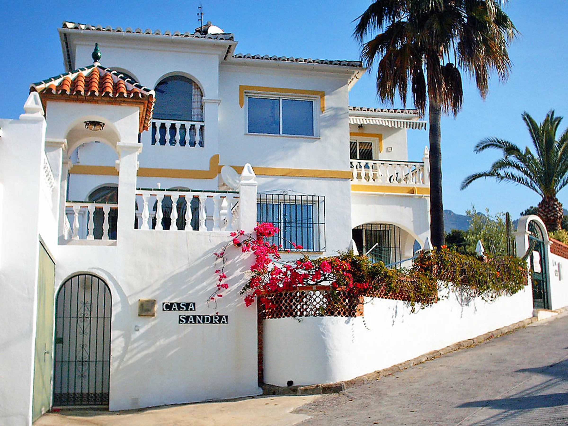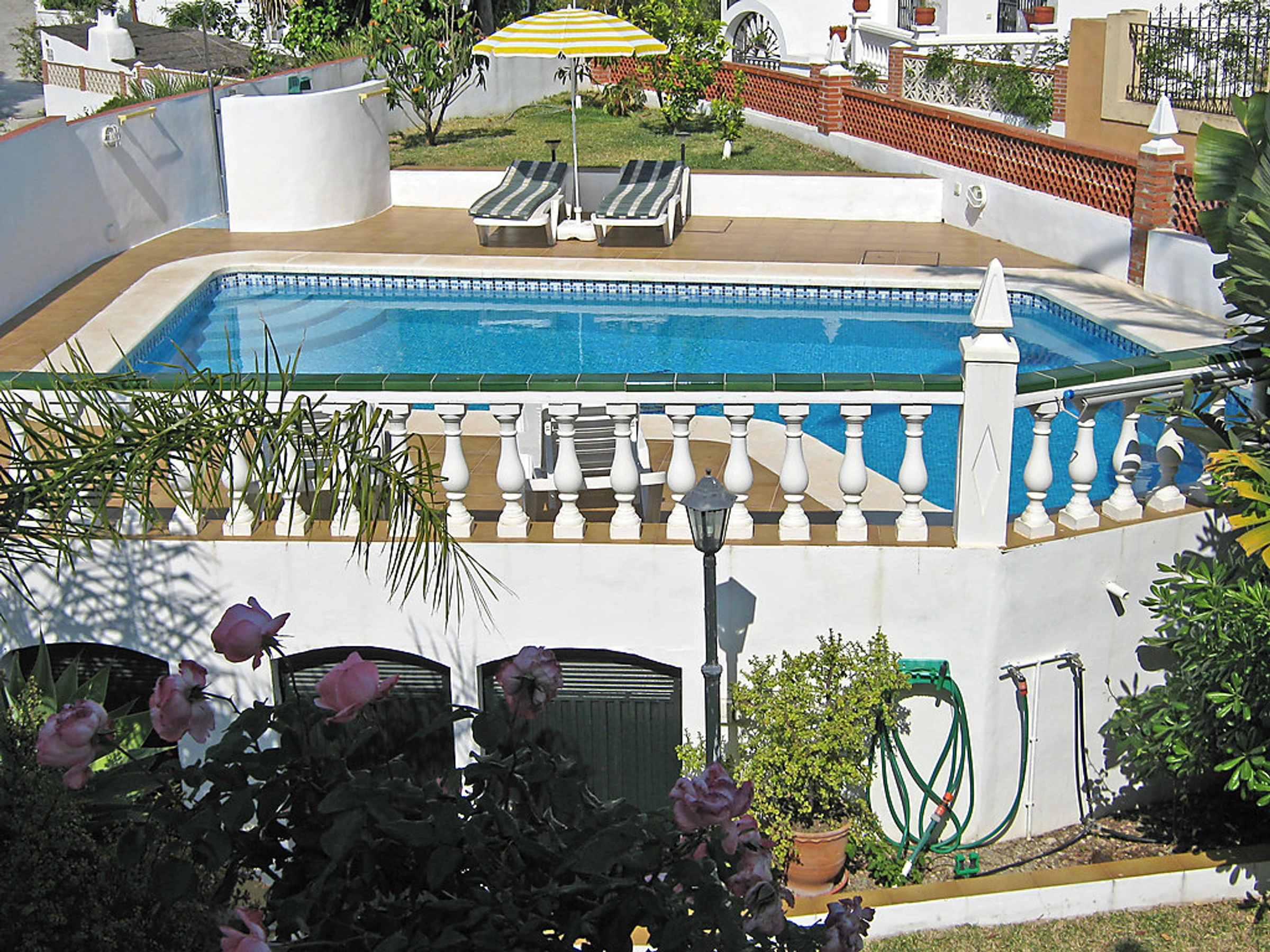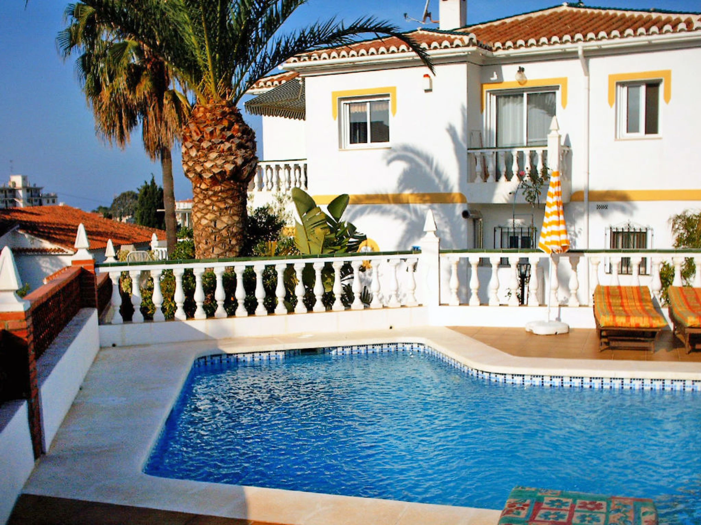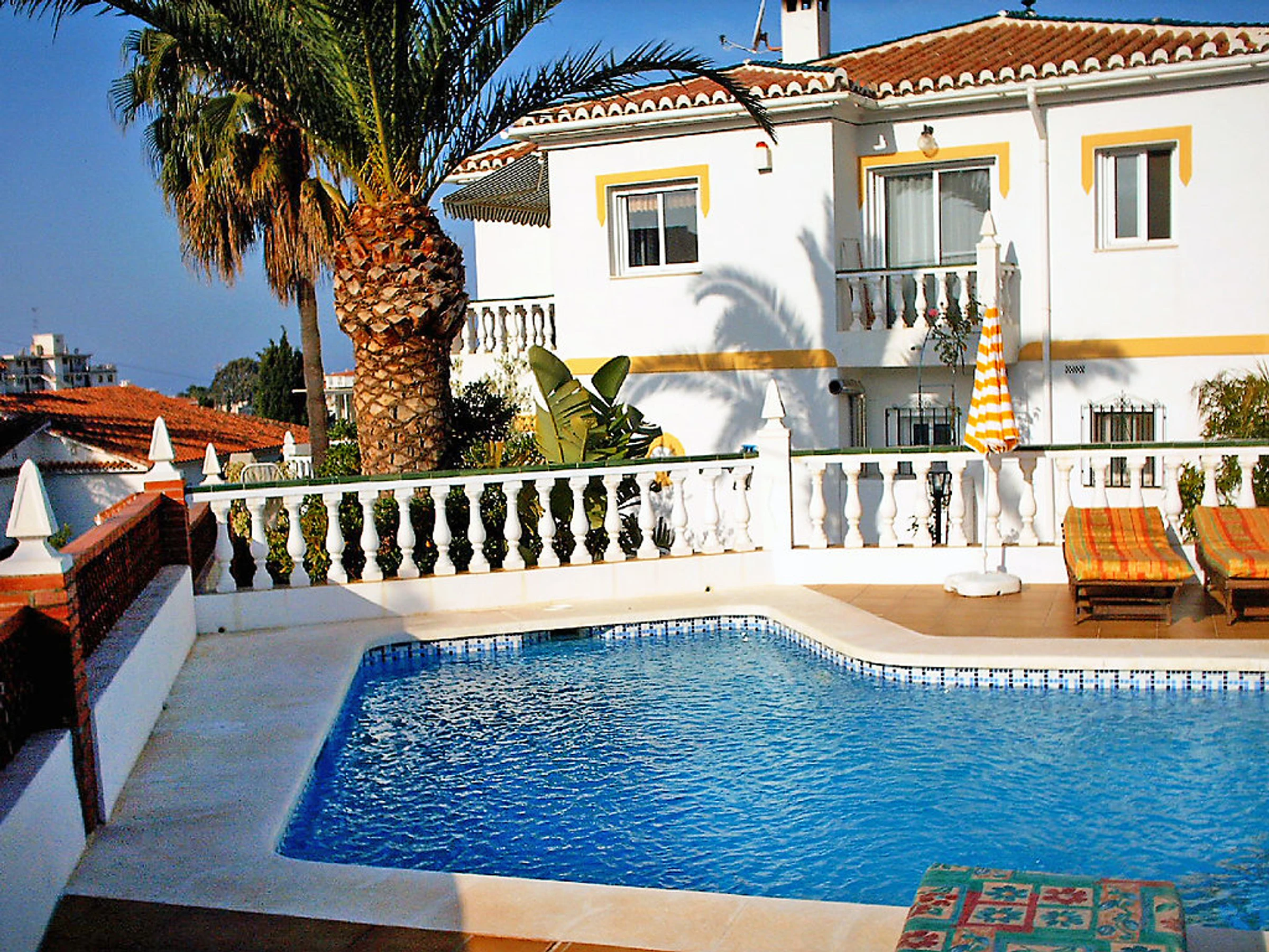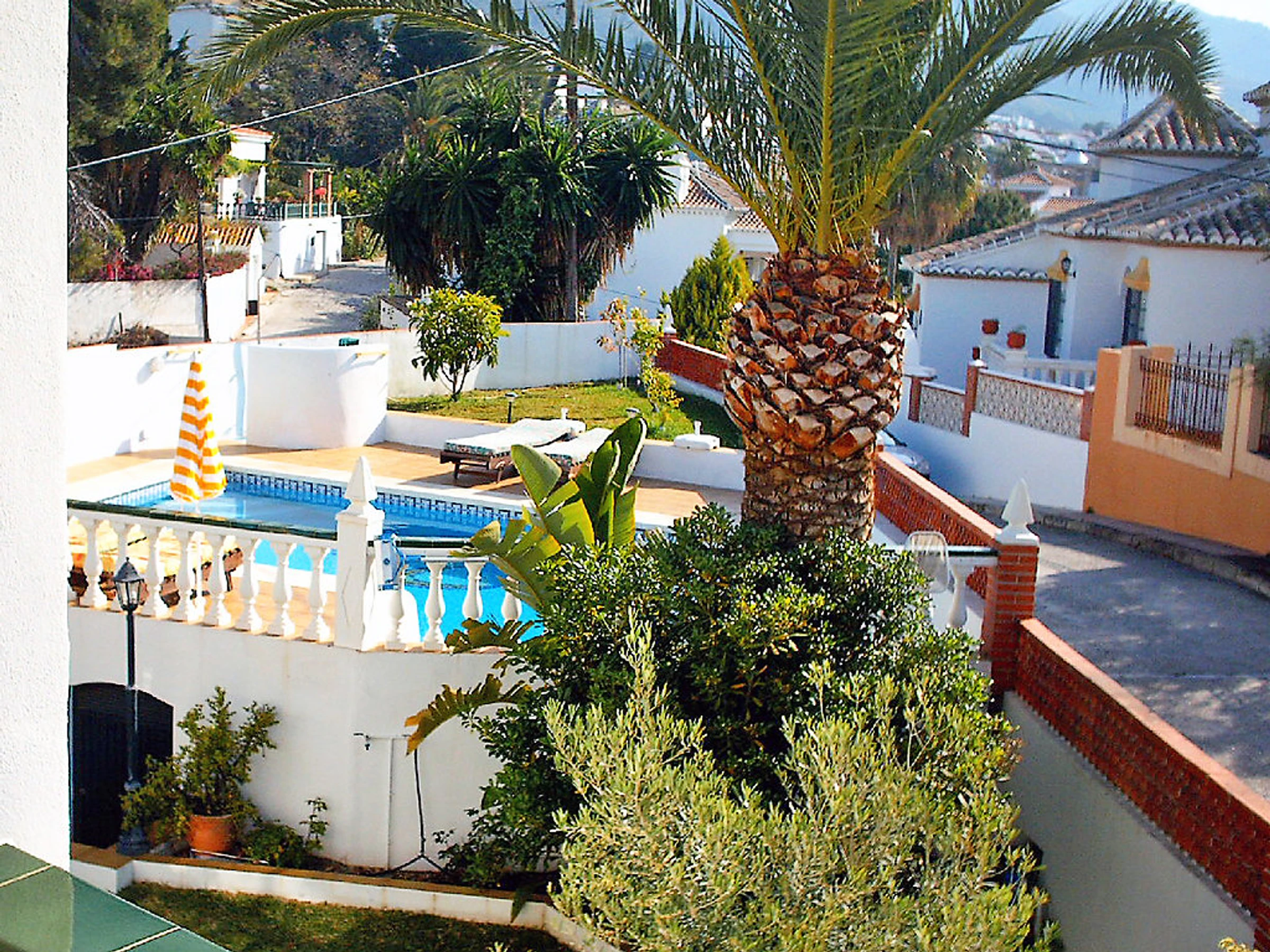 Small 3-family house "Sandra 01". In the district of Cerro Marino, 1 km from the centre of Nerja, 1 km from the sea. For shared use: property, garden 400 m2 with lawn, swimming pool (10 x 4 m,[hidden].). Outdoor shower, patio, arbour, garden furniture, barbecue. In the house: central heating system, washing machine (for shared use). Parking. Supermarket, restaurant 300 m, sandy beach 1 km. Object suitable for 2 adults + 1 child groups of teenagers on request only. Please note: the owner lives on the same property. There are more similar properties for rent in this same residence. The swimming pool is in an L shape. The flat above is occasionally occupied. No pets allowed.