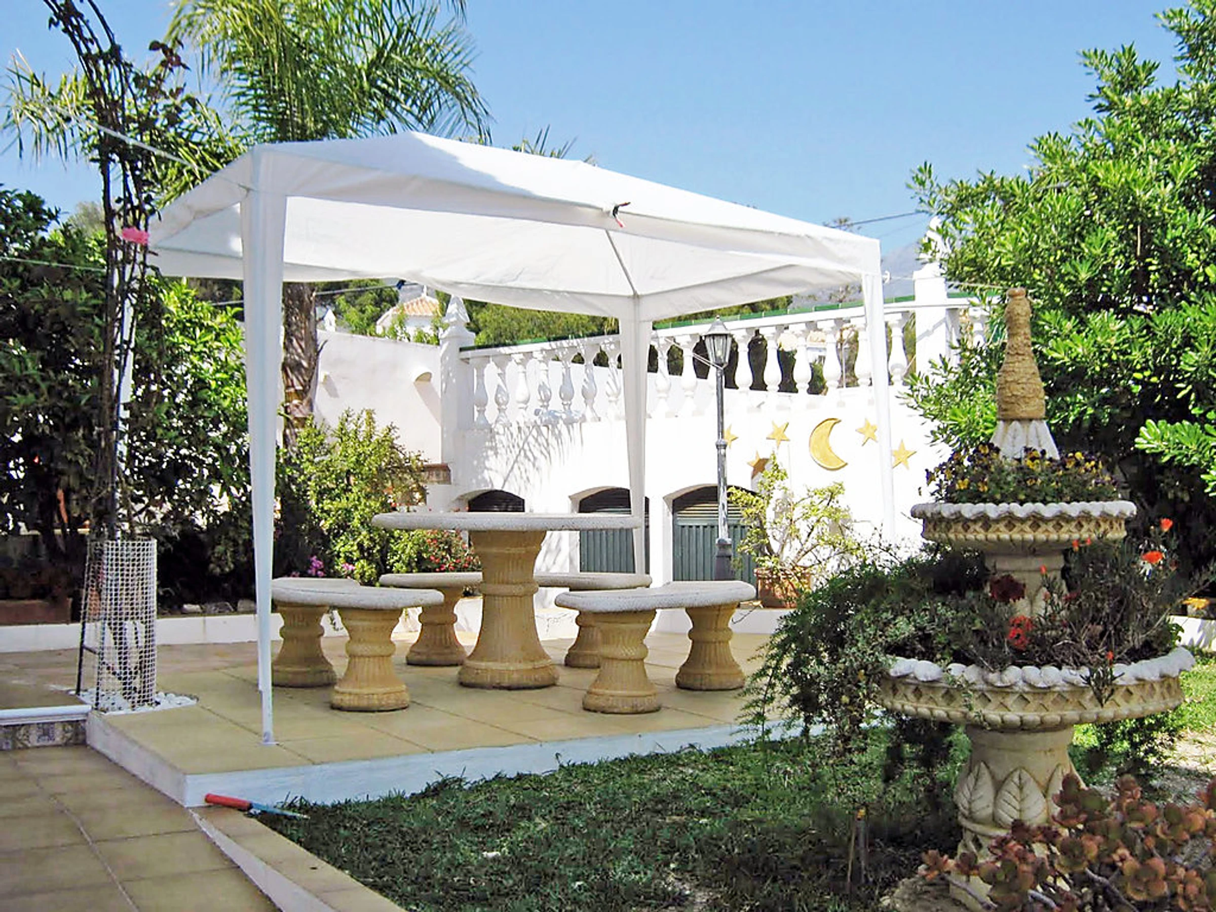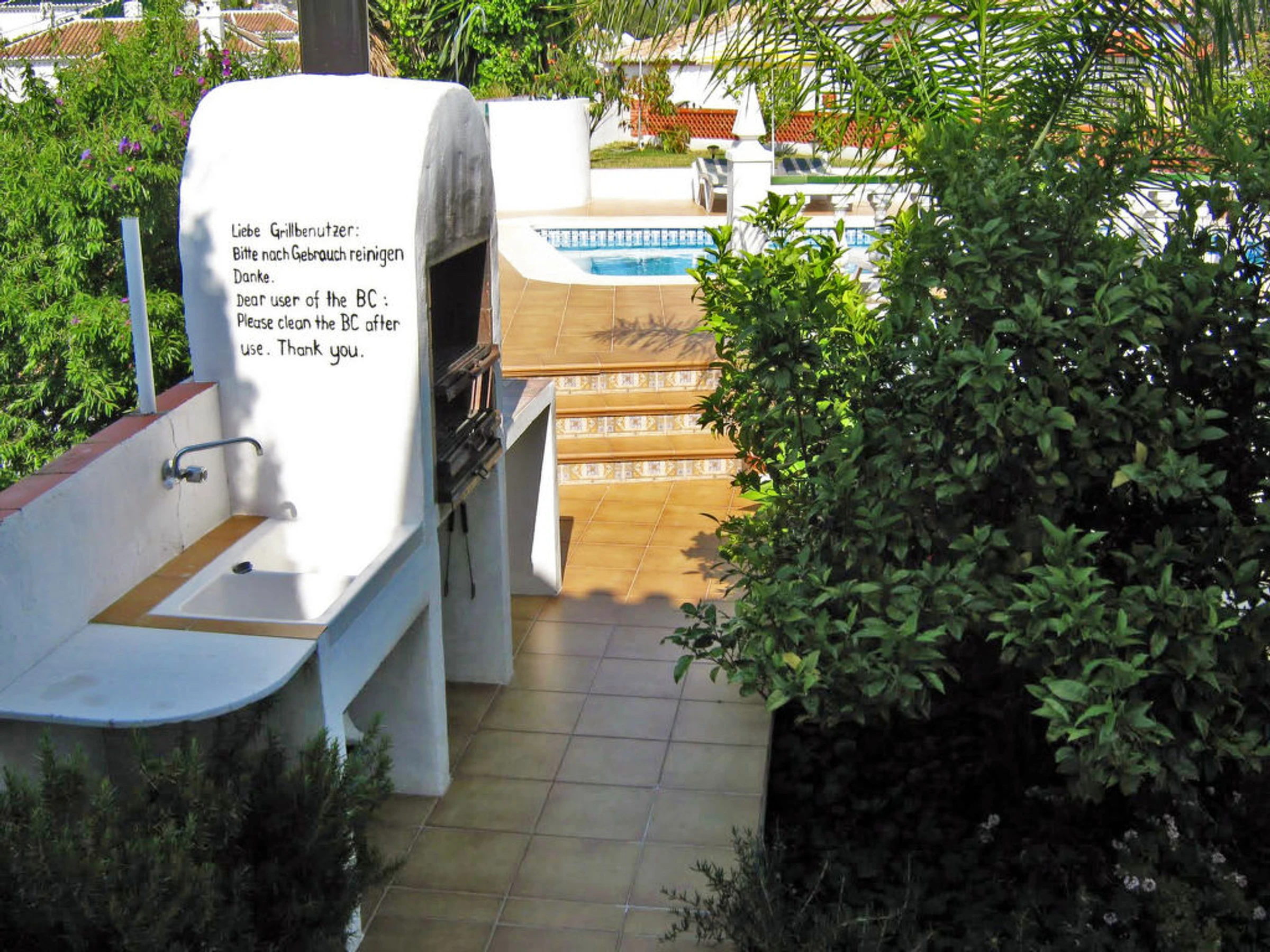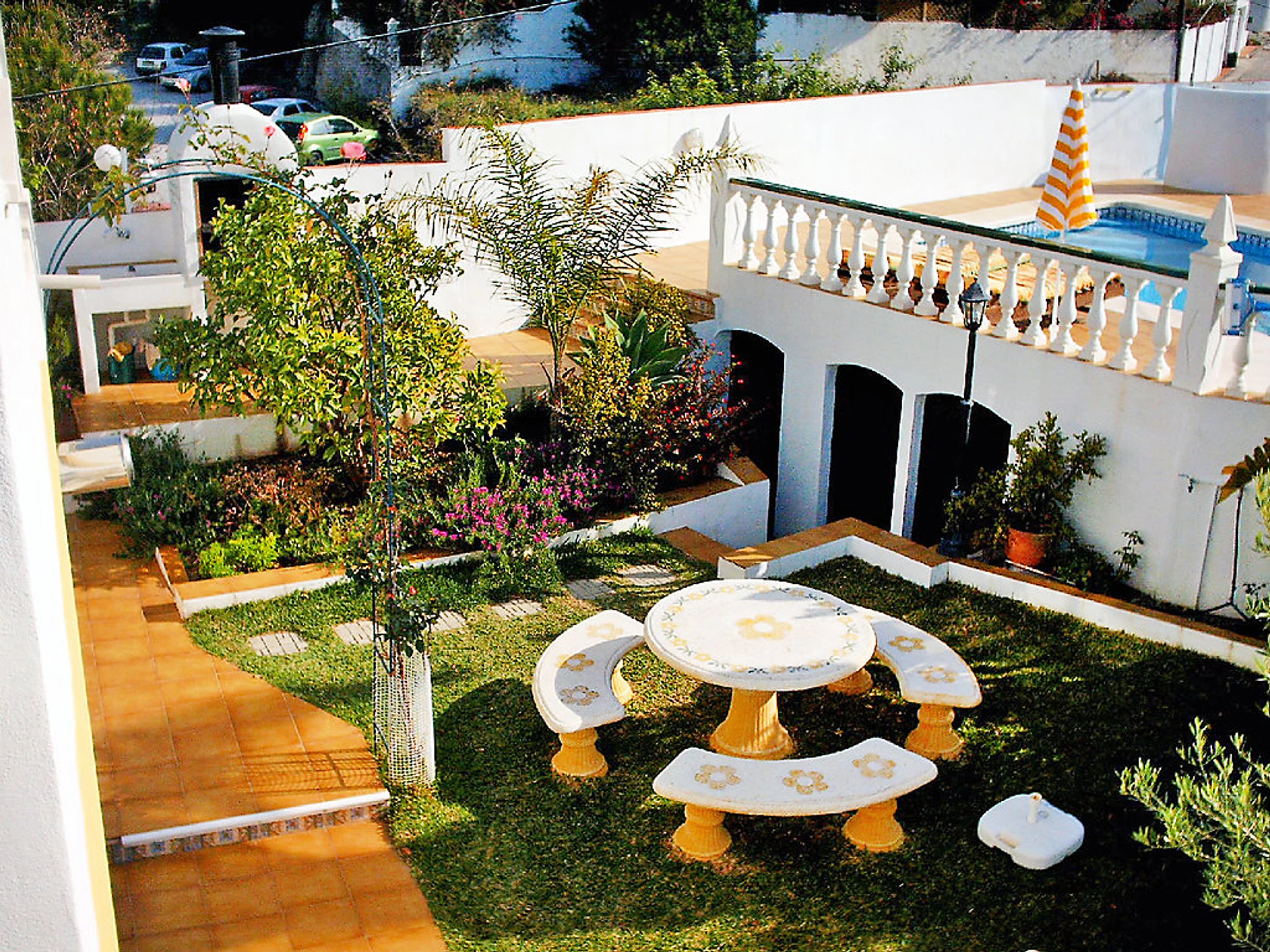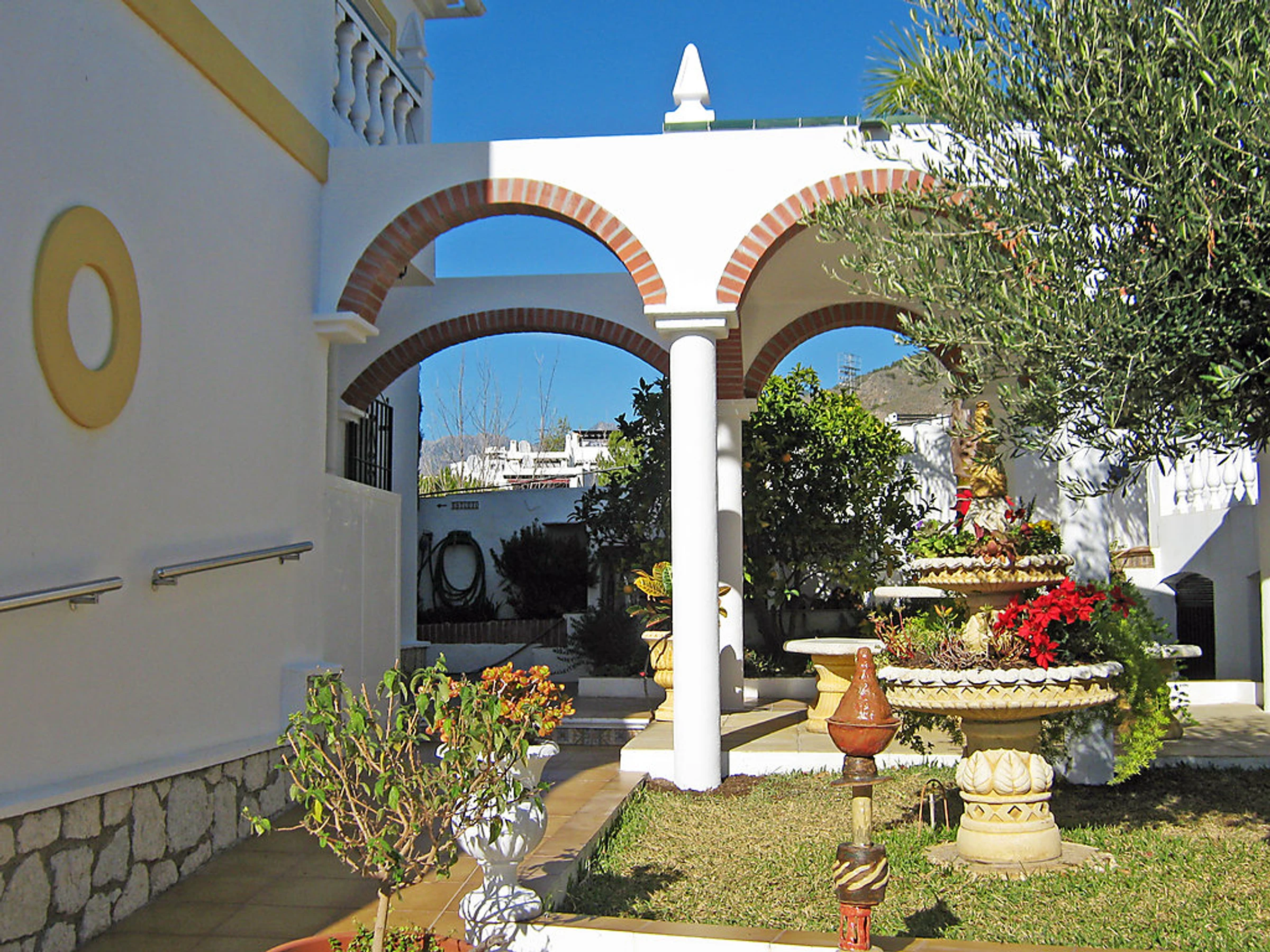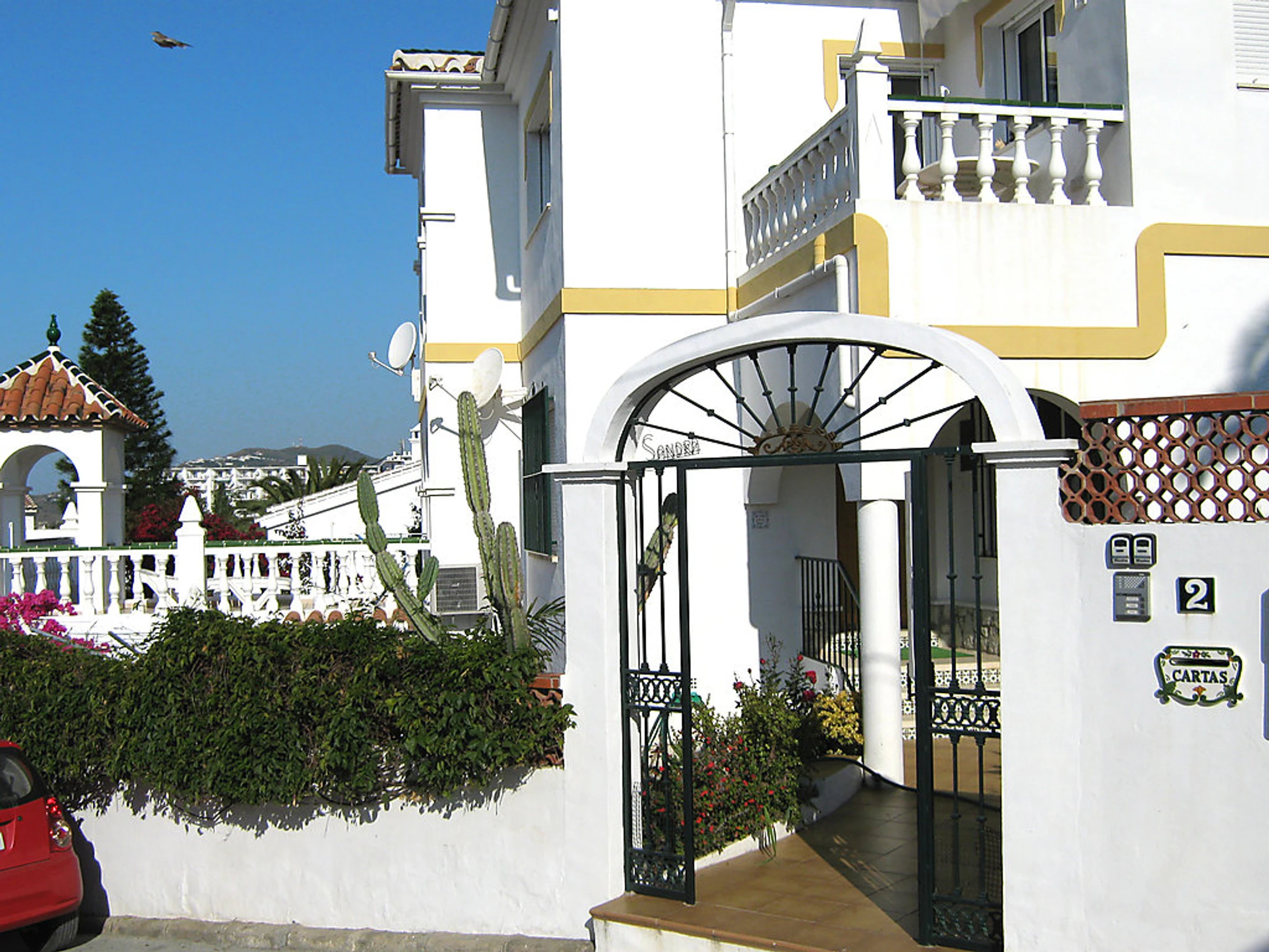 Small 3-family house "Sandra 01". In the district of Cerro Marino, 1 km from the centre of Nerja, 1 km from the sea. For shared use: property, garden 400 m2 with lawn, swimming pool (10 x 4 m,[hidden].). Outdoor shower, patio, arbour, garden furniture, barbecue. In the house: central heating system, washing machine (for shared use). Parking. Supermarket, restaurant 300 m, sandy beach 1 km. Object suitable for 2 adults + 1 child groups of teenagers on request only. Please note: the owner lives on the same property. There are more similar properties for rent in this same residence. The swimming pool is in an L shape. The flat above is occasionally occupied. No pets allowed.