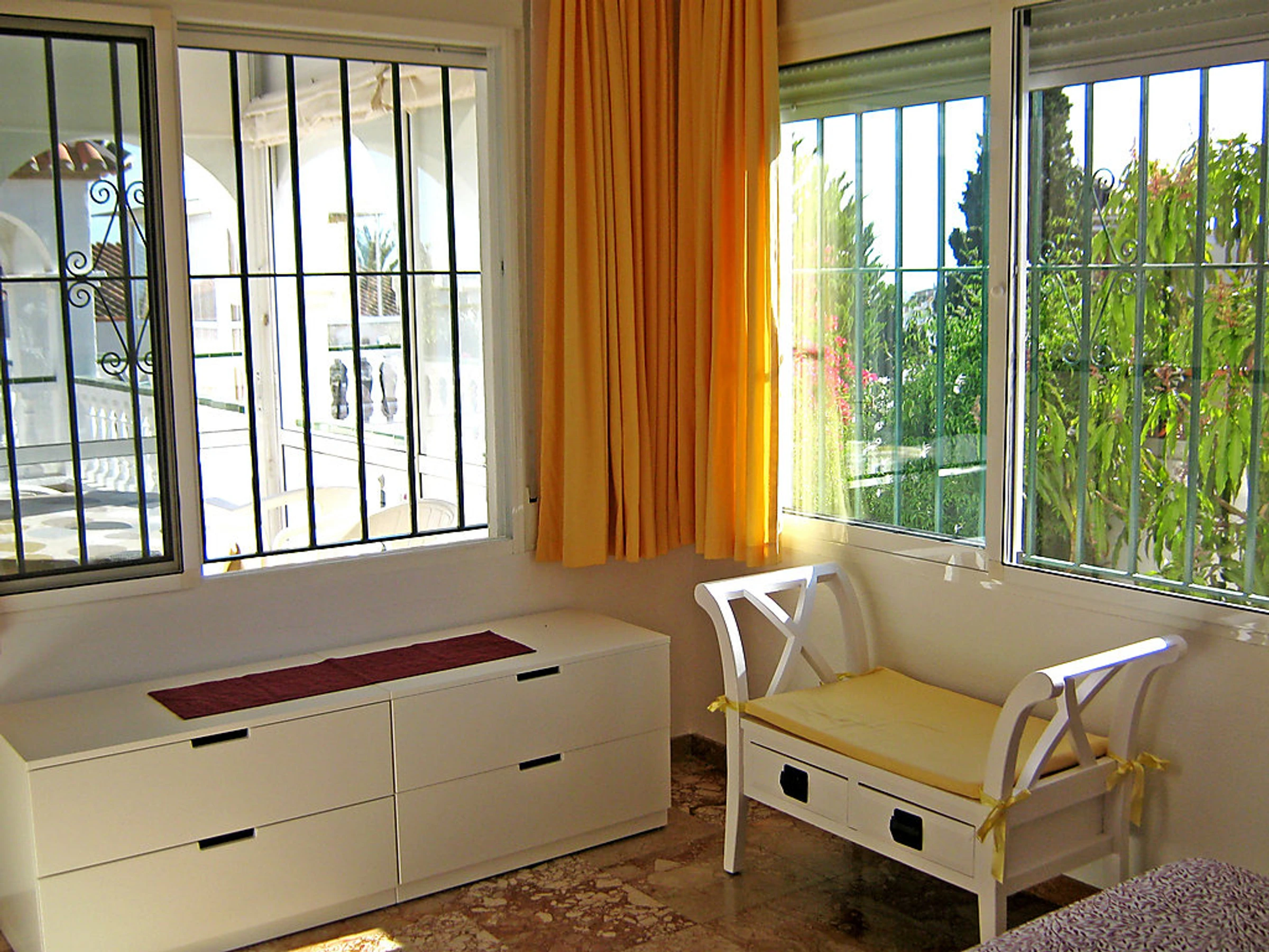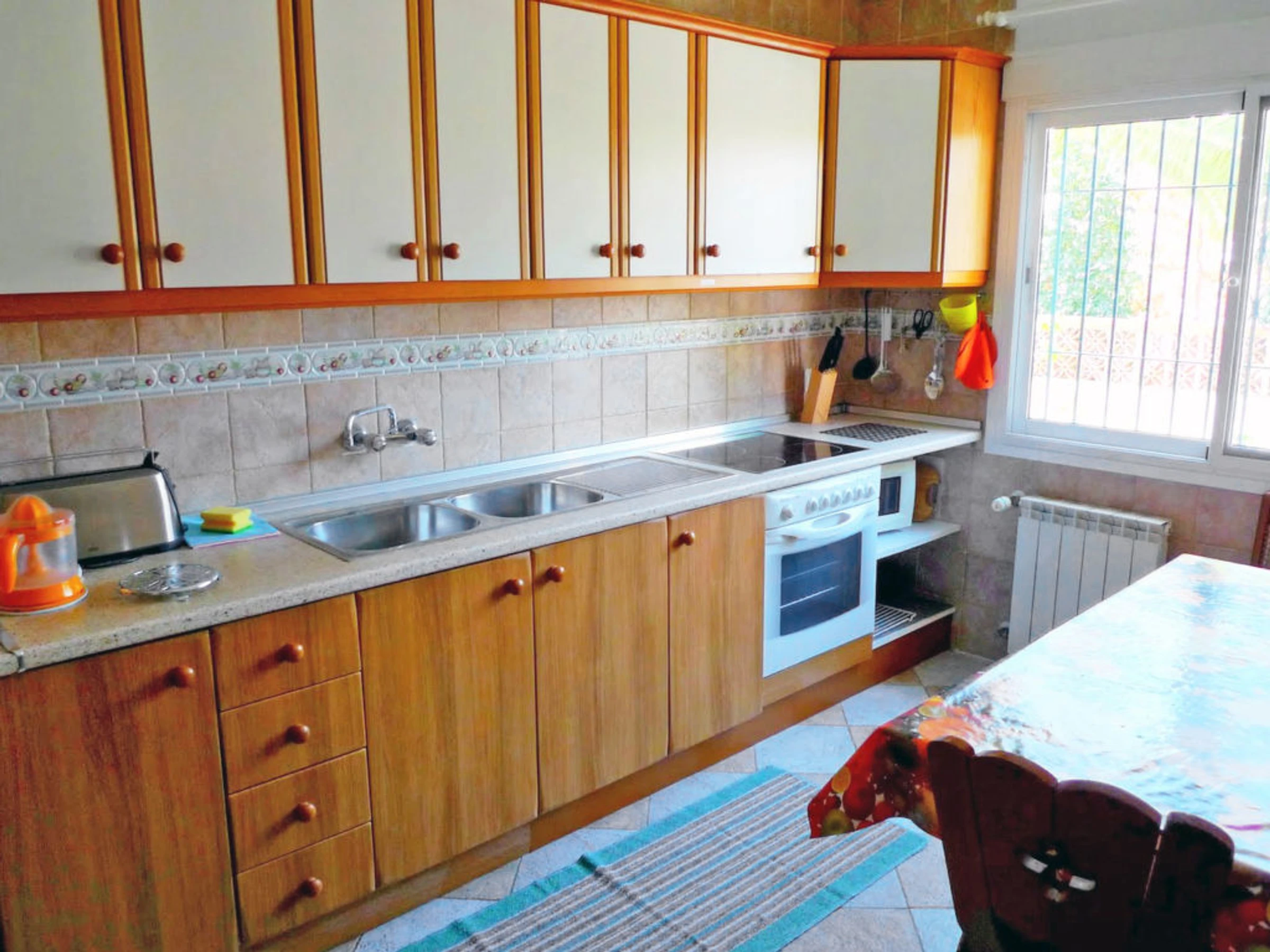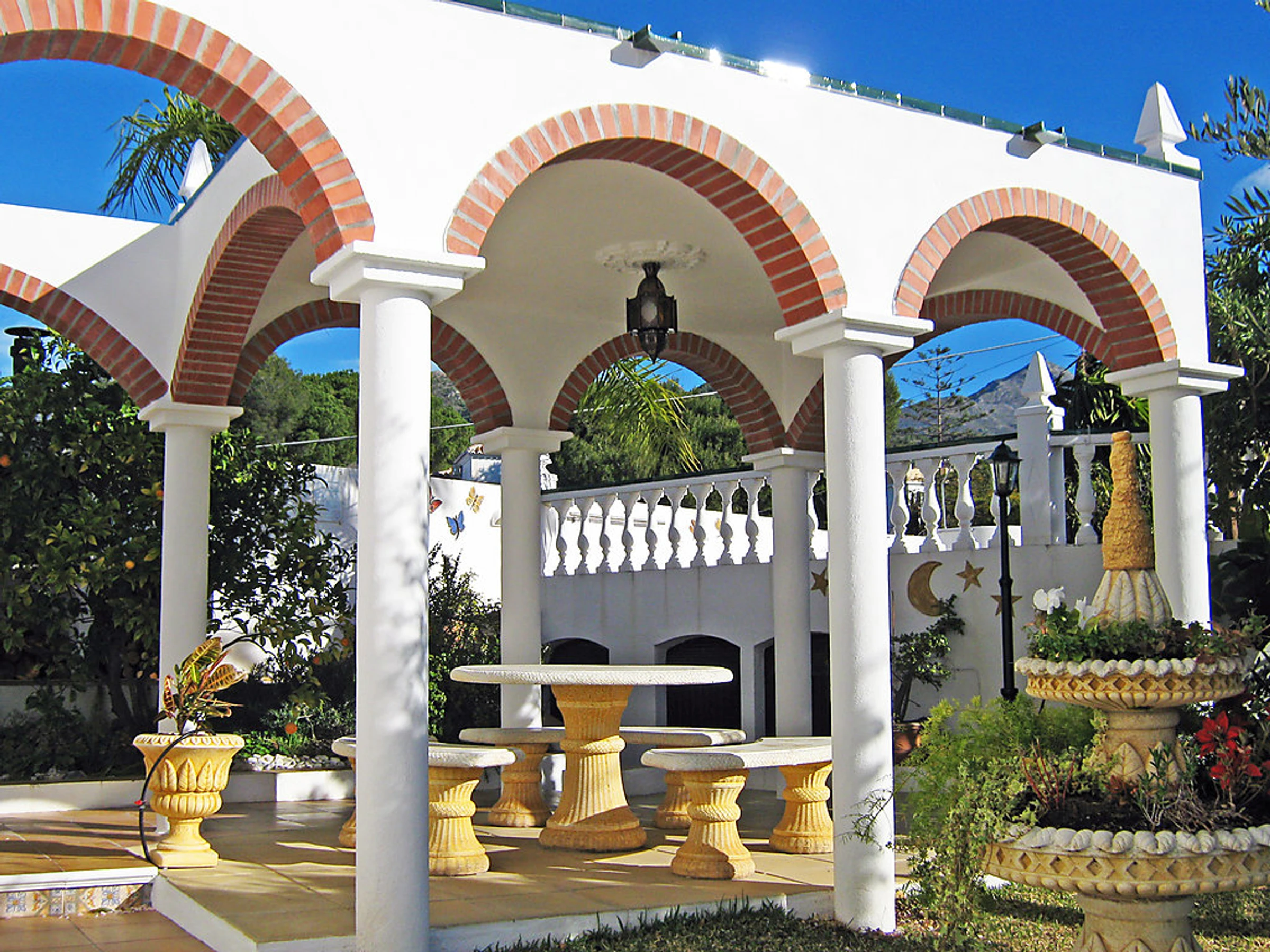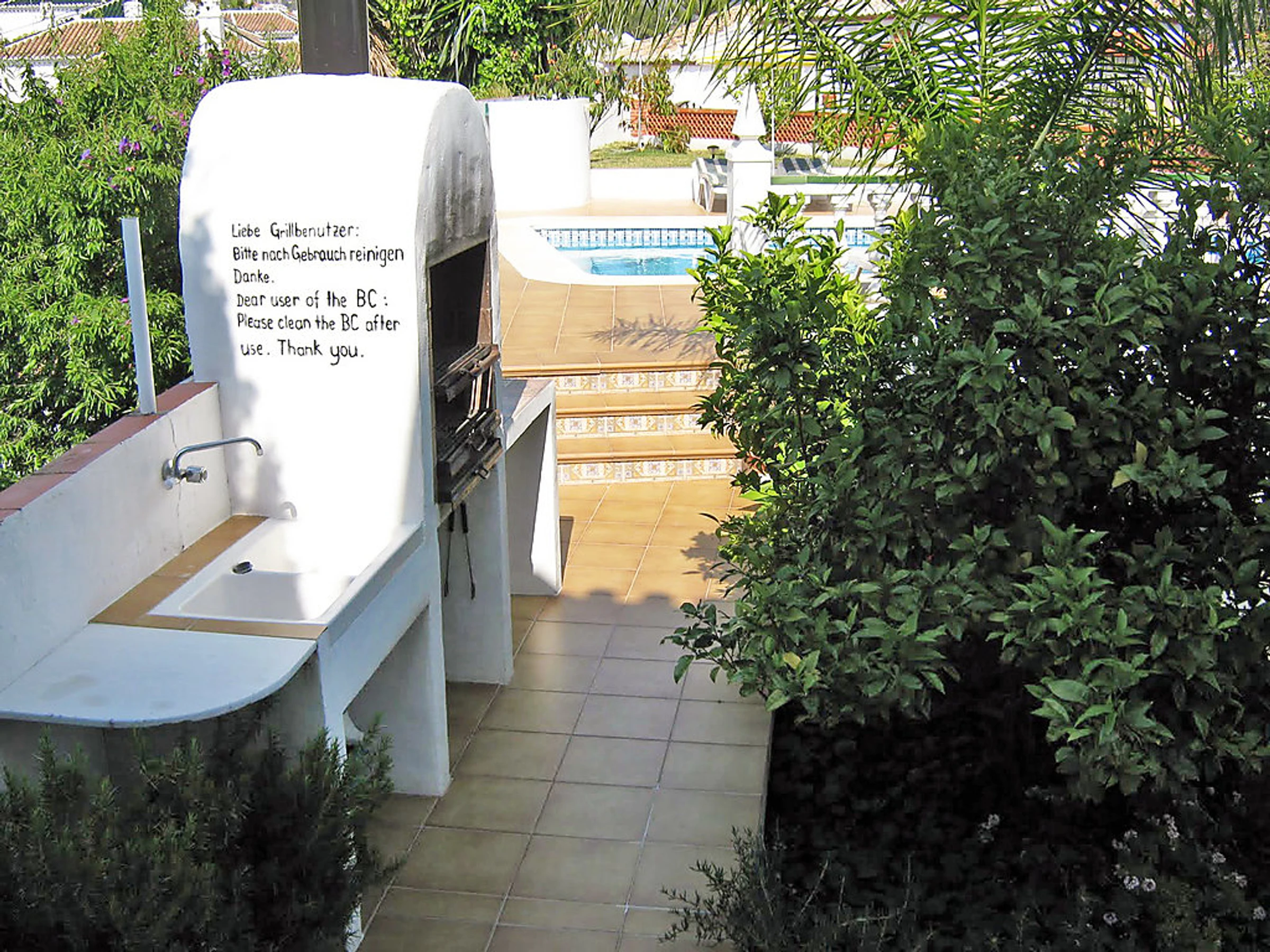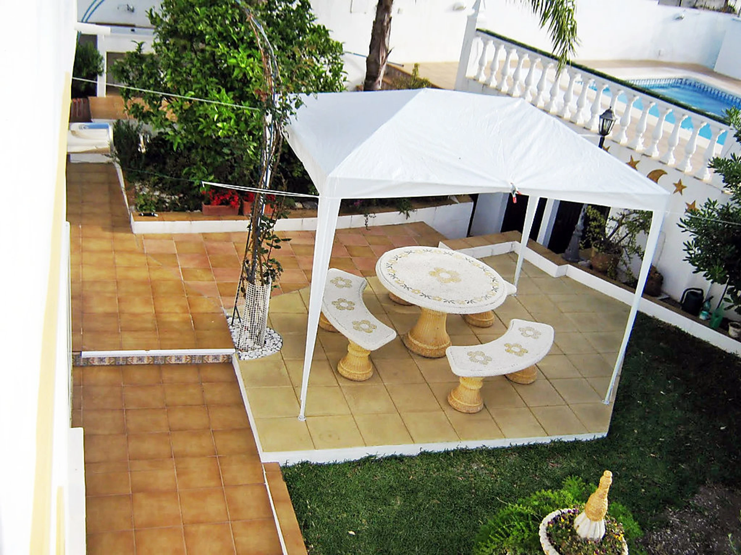 Small 3-family house "Sandra 01". In the district of Cerro Marino, 1 km from the centre of Nerja, 1 km from the sea. For shared use: property, garden 400 m2 with lawn, swimming pool (10 x 4 m,[hidden].). Outdoor shower, patio, arbour, garden furniture, barbecue. In the house: central heating system, washing machine (for shared use). Parking. Supermarket, restaurant 300 m, sandy beach 1 km. Object suitable for 2 adults + 1 child groups of teenagers on request only. Please note: the owner lives on the same property. There are more similar properties for rent in this same residence. The swimming pool is in an L shape. The flat above is occasionally occupied. No pets allowed.