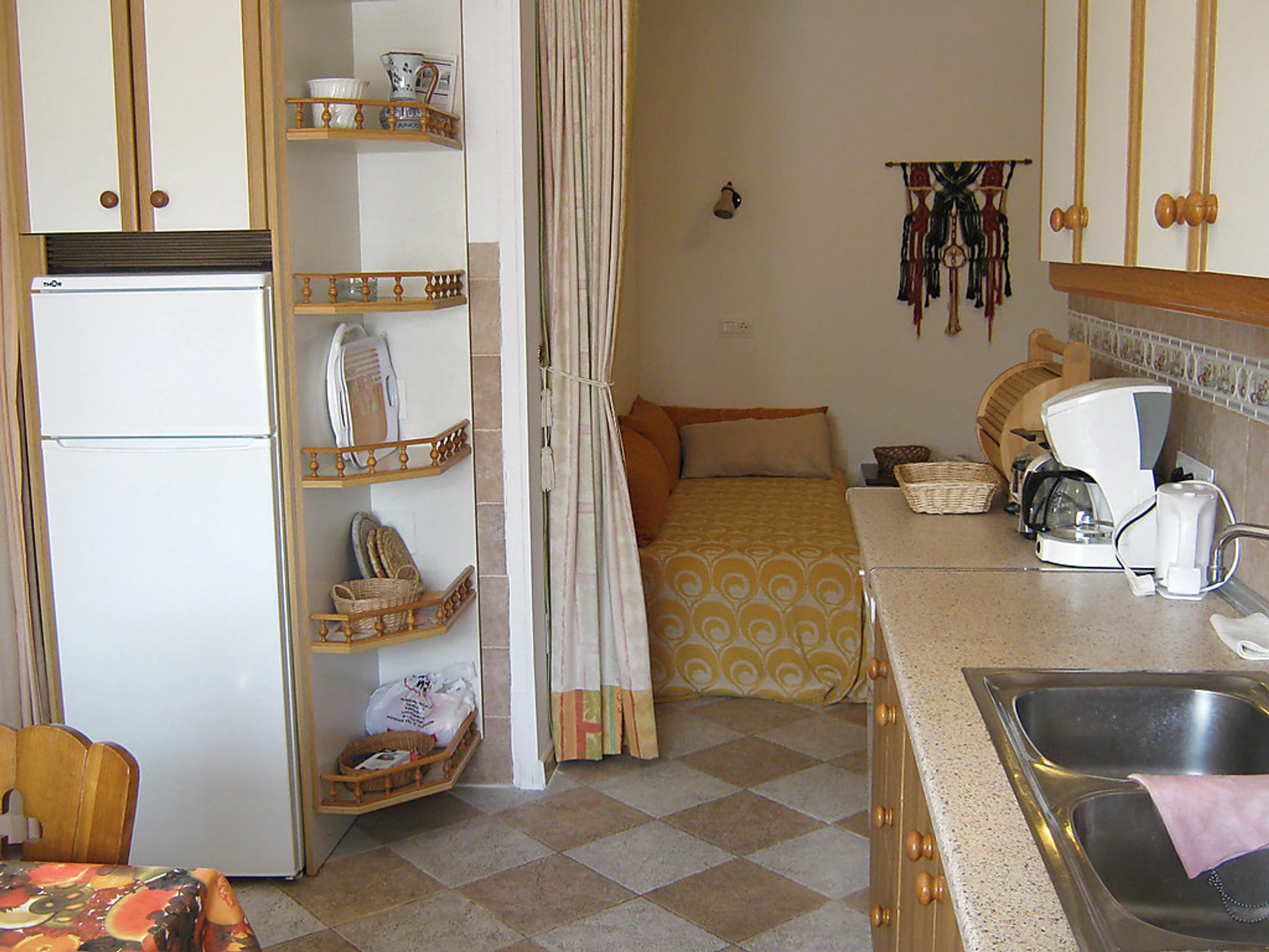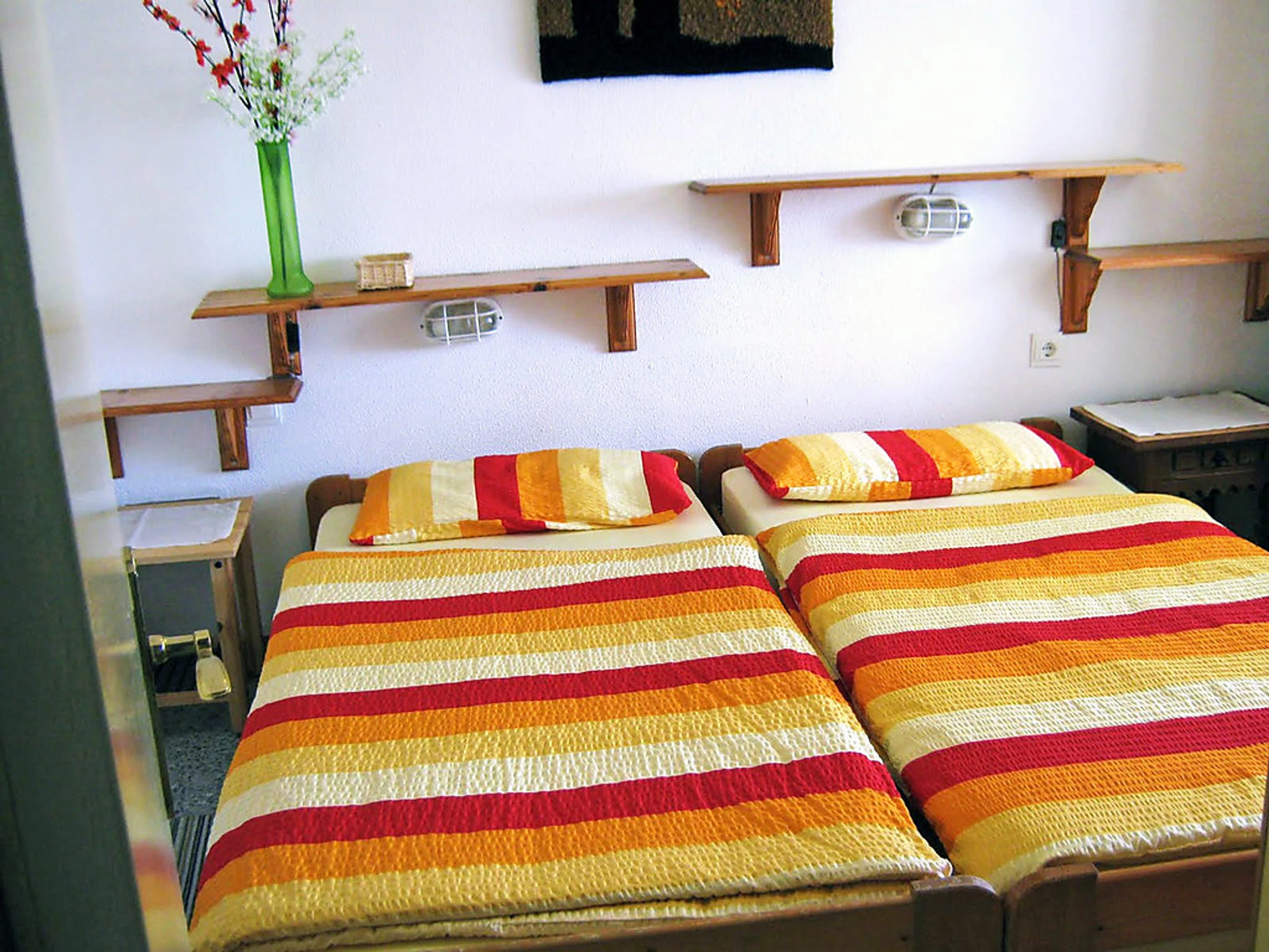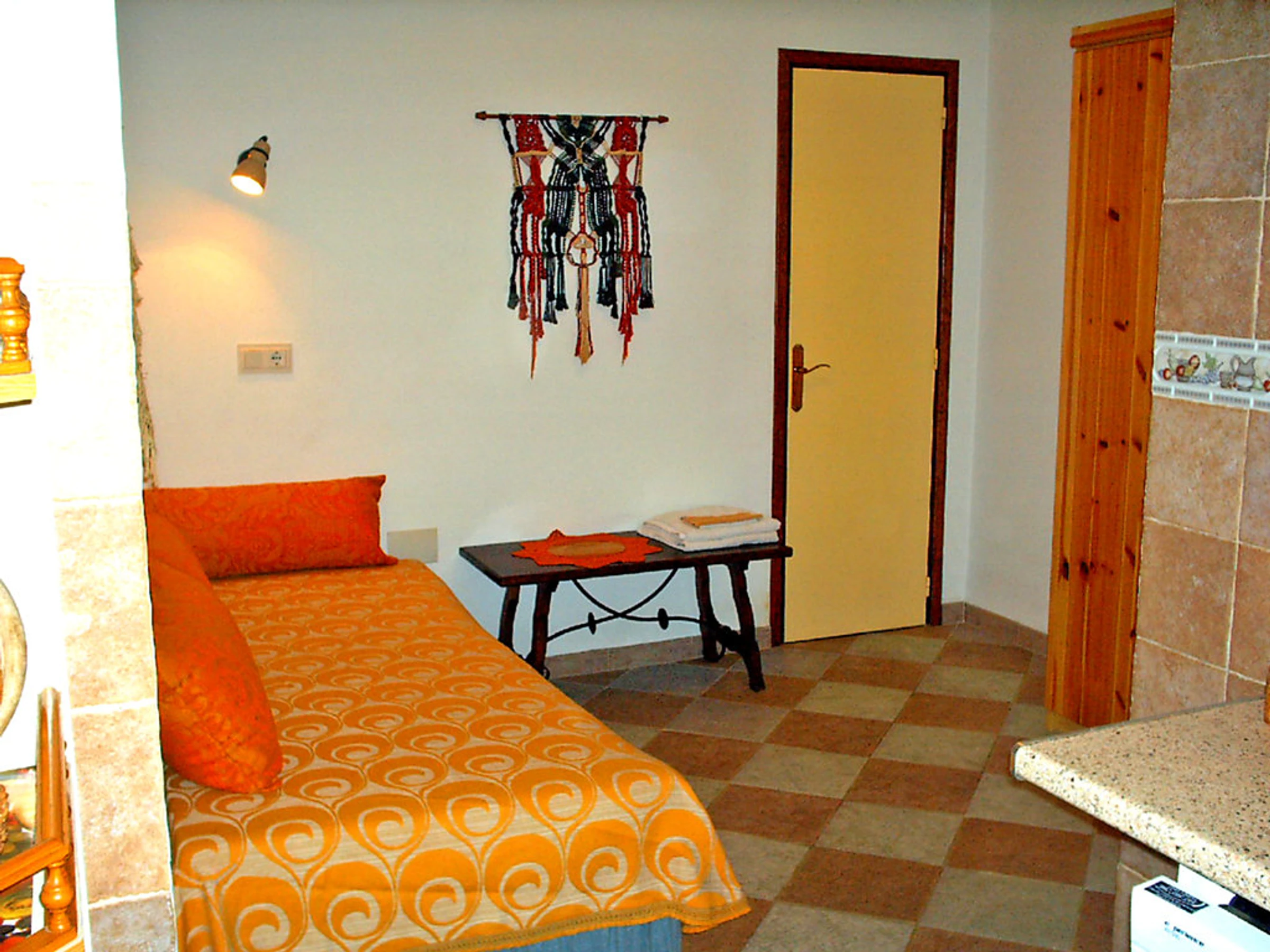 4-room apartment 80 m2. Comfortable furnishings: living room with open-hearth fireplace, satellite TV and hi-fi system. Exit to the terrace, south facing position. 1 room with 1 bed. 1 room with 1 french bed. 1 room with 1 french bed. Kitchen (oven, dishwasher, microwave, freezer) with dining table. 2 showers/WC. Terrace partly roofed. Terrace furniture, deck chairs. Facilities: safe. Internet (WiFi, free). Garage. TV with Astra satellite and local channels. ADSL internet connection (cable). The kitchen has a ceramic hob.