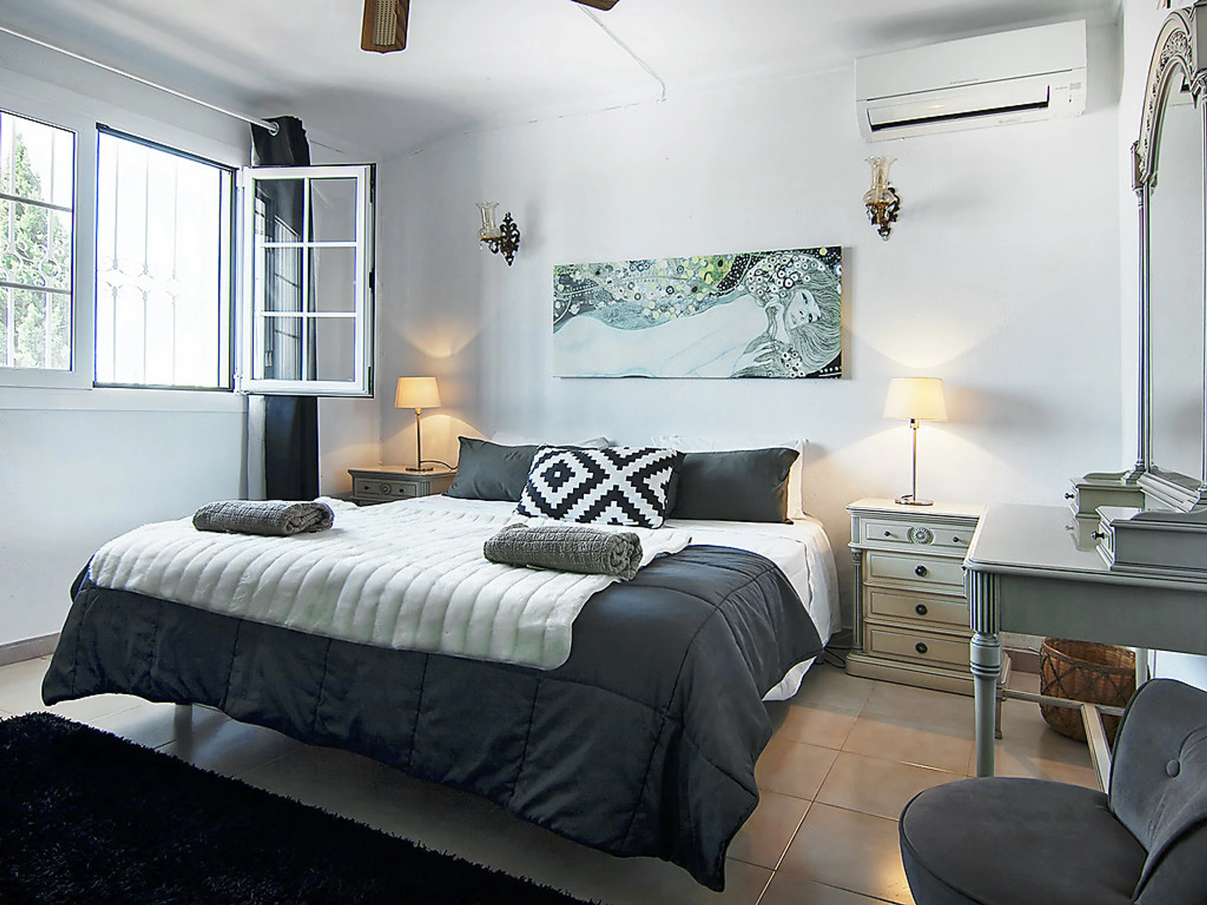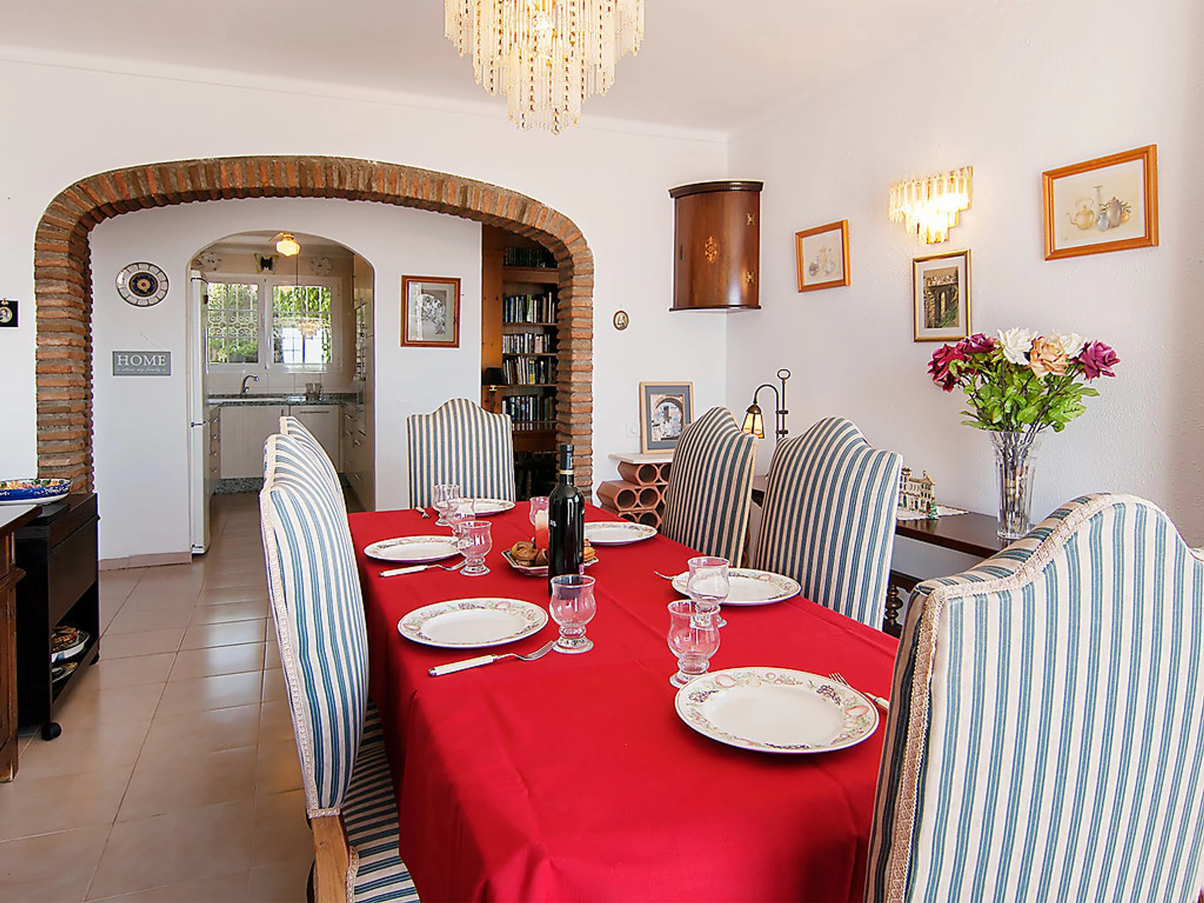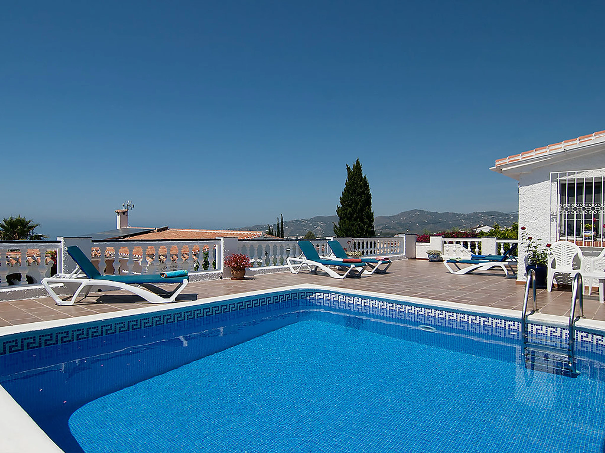 Capistrano 2 km from Nerja: Large, beautiful, comfortable villa "Villa Jacaranda", surrounded by trees. In the resort, 2 km from the centre, in a quiet position residential area (villas), 2 km from the sea, 2 km from the beach, in a cul-de-sac, south facing position. Private: beautiful, well-kept garden, swimming pool (3 x 6 m, depth 1 - depth 2 cm, 01.01.-31.12.). Terrace (180 m2), garden furniture, barbecue. In the house: air conditioning, burglar alarm system, washing machine. Shop, grocery 250 m, supermarket 500 m, shopping centre 20 km, restaurant, bar, bakery, café 250 m, internet café 2 km, pedestrian zone 1 km, bicycle rental 500 m, pub garden 250 m, 25 minute walk to the centre, bus stop "autobús local" 800 m, railway station "Málaga" 50 km, ferry "Málaga" 50 km, sandy beach "Burriana" 2 km, park "Nerja" 2 km, diving center 2 km, outdoor swimming pool 1 km, indoor swimming pool 800 m. Sports harbour 20 km, marina 20 km, golf course (18 hole) 20 km, surf school 20 km, sailing school 20 km, tennis, riding stable, cycle lane 500 m, slopes 70 km, ski school 70 km. Nearby attractions: Cuevas de Nerja 3 km, Museo Nerja 2 km, Senderismo 500 m, Piraguismo 2 km, Mercadillos 800 m, Centro cultural 800 m. Well-known ski regions can easily be reached: Sierra Nevada 70 km. Well-known lakes can easily be reached: Pantano la Viñuela 20 km. Hiking paths: Montañas Almijara 1 km. Please note: car recommended. Suitable for families, suitable for seniors baby equipment on request. Groups of teenagers on request only. Loading and unloading of baggage is possible at the holiday house.