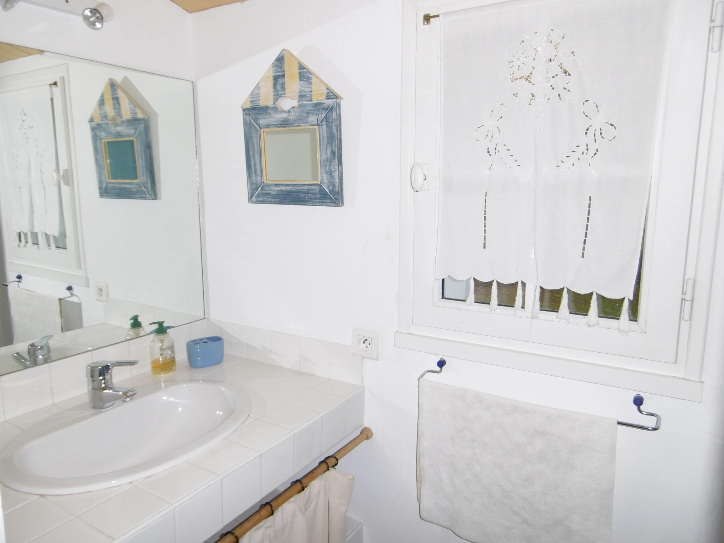 Beautiful, comfortable single-story villa in the country style, nestled in the forest with direct and private access to the sea through the forest and dunes - Sleeps 6 - Approximately 97 m² (97 sq ft) comprising a living room with a fireplace, a kitchenette, a bedroom with a double bed (140 cm) and a private bathroom, toilet, a bedroom with a double bed (140 cm) with a shower, sink, and toilet, and a bedroom with two single beds (80 cm) and a private bathroom. Television, dishwasher, oven, freezer, washing machine, and dryer are provided. Large terrace with garden furniture and 3 deckchairs. Portable barbecue. Wooden shed for bicycle storage. Parking on partially enclosed property.