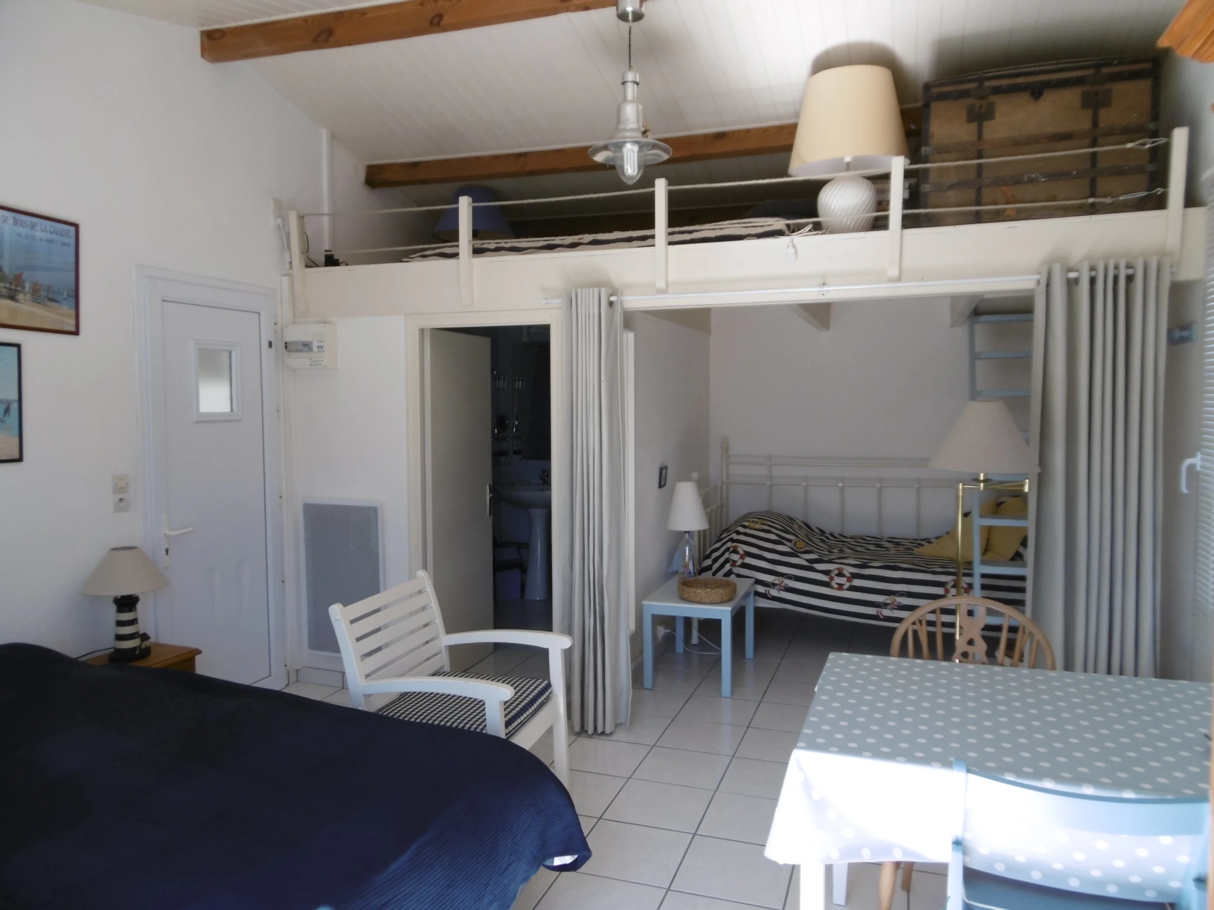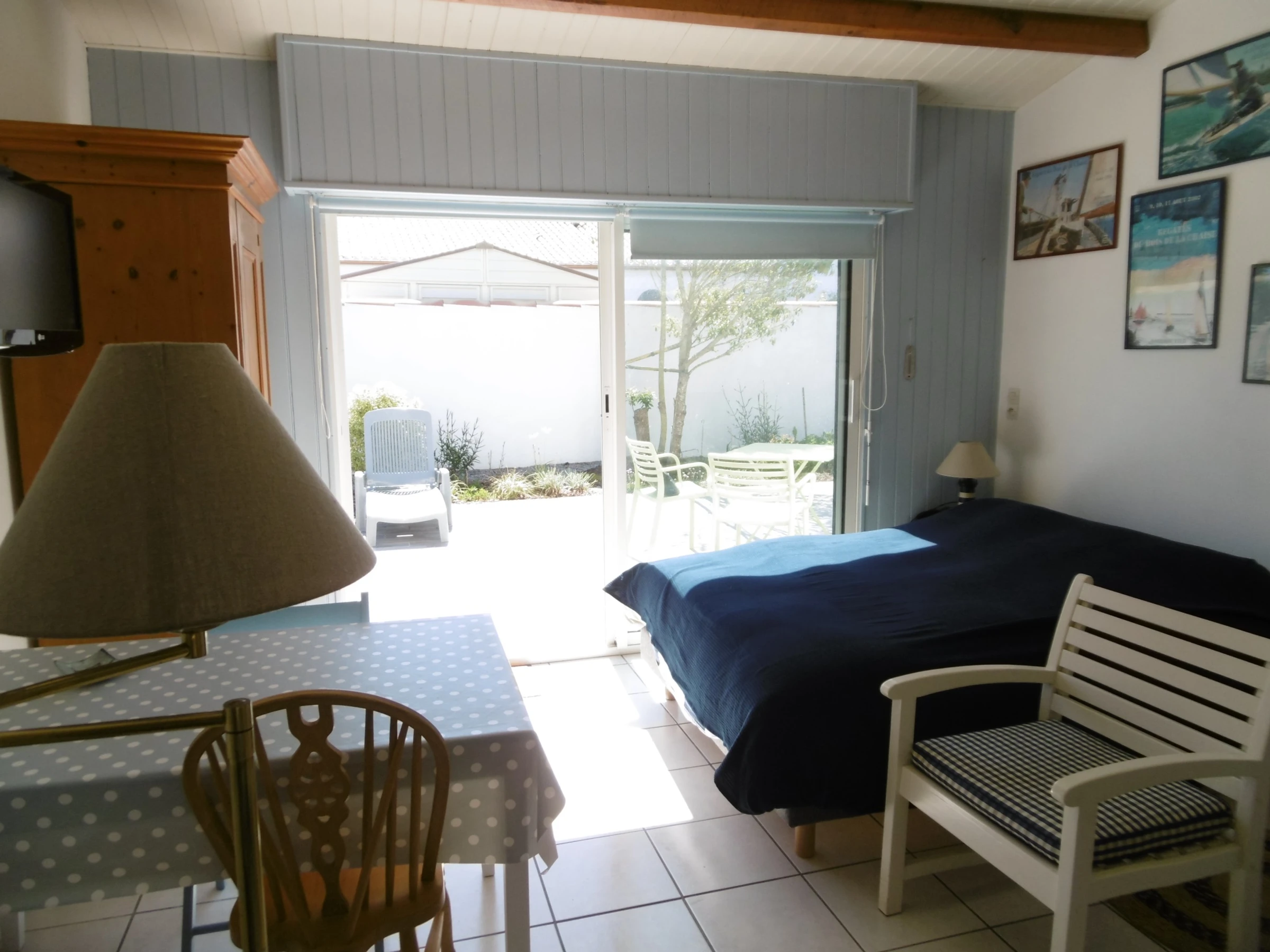 Detached country cottage at the back of a property - Very quiet area - One Star - Approximately 32 m² - Free Wi-Fi - Comfortable - Quiet area - Sleeps 3. Comprising a living room with a 140 cm bed and a 90 cm bed, a separate fitted kitchenette, a shower room with toilet - Multifunctional microwave, refrigerator with freezer compartment, combination oven & small flat-screen TV - Beautiful south-facing terrace with garden furniture complete with parasol & deckchairs + charcoal barbecue - Studio at the back of the property and very independent with shared parking and access - Pets not allowed - Cleaning available: €54. Optional services not included, to be reserved 1 month prior to arrival and subject to availability: