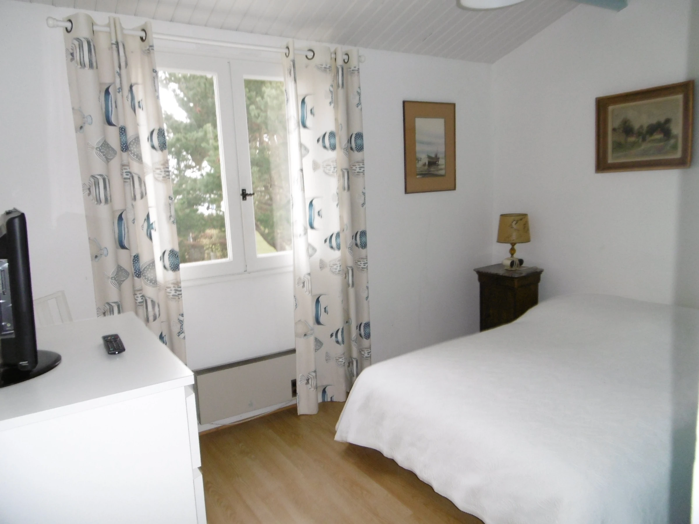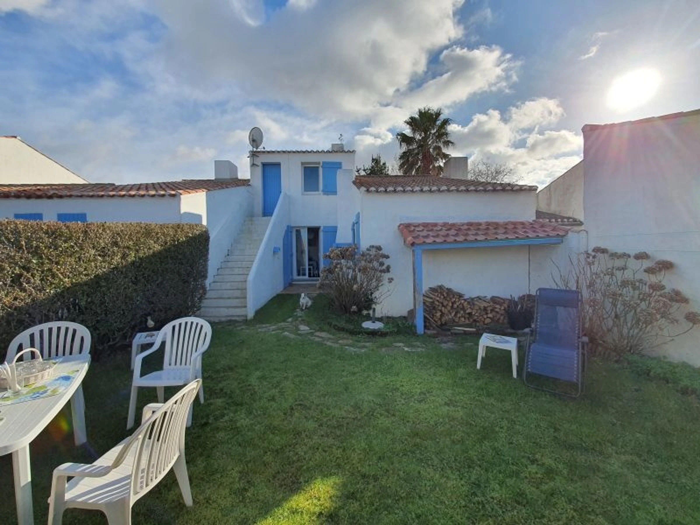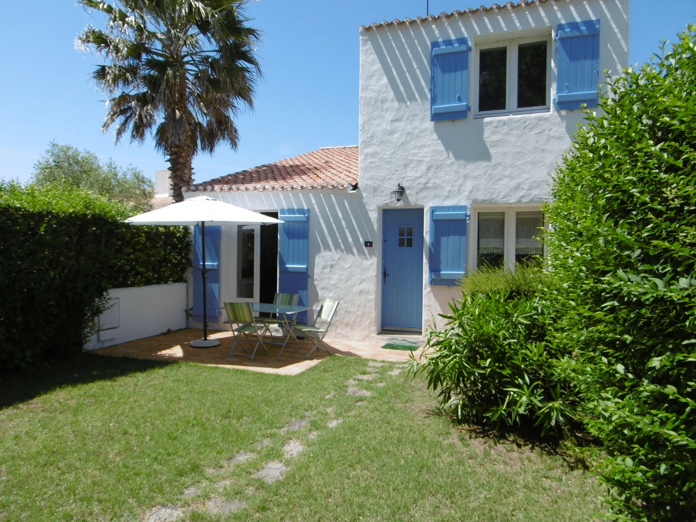 Upstairs: a bedroom with a 140 cm bed and a third bedroom with two 90 cm beds, a shower room with a toilet - 3 flat-screen TVs. Enclosed garden in front and back with a terrace in each garden - A fixed barbecue at the rear, 2 parasols, and 2 sun loungers. - Private parking space number 4 in the Residence - One pet allowed but no cats - Cleaning service available: €108.