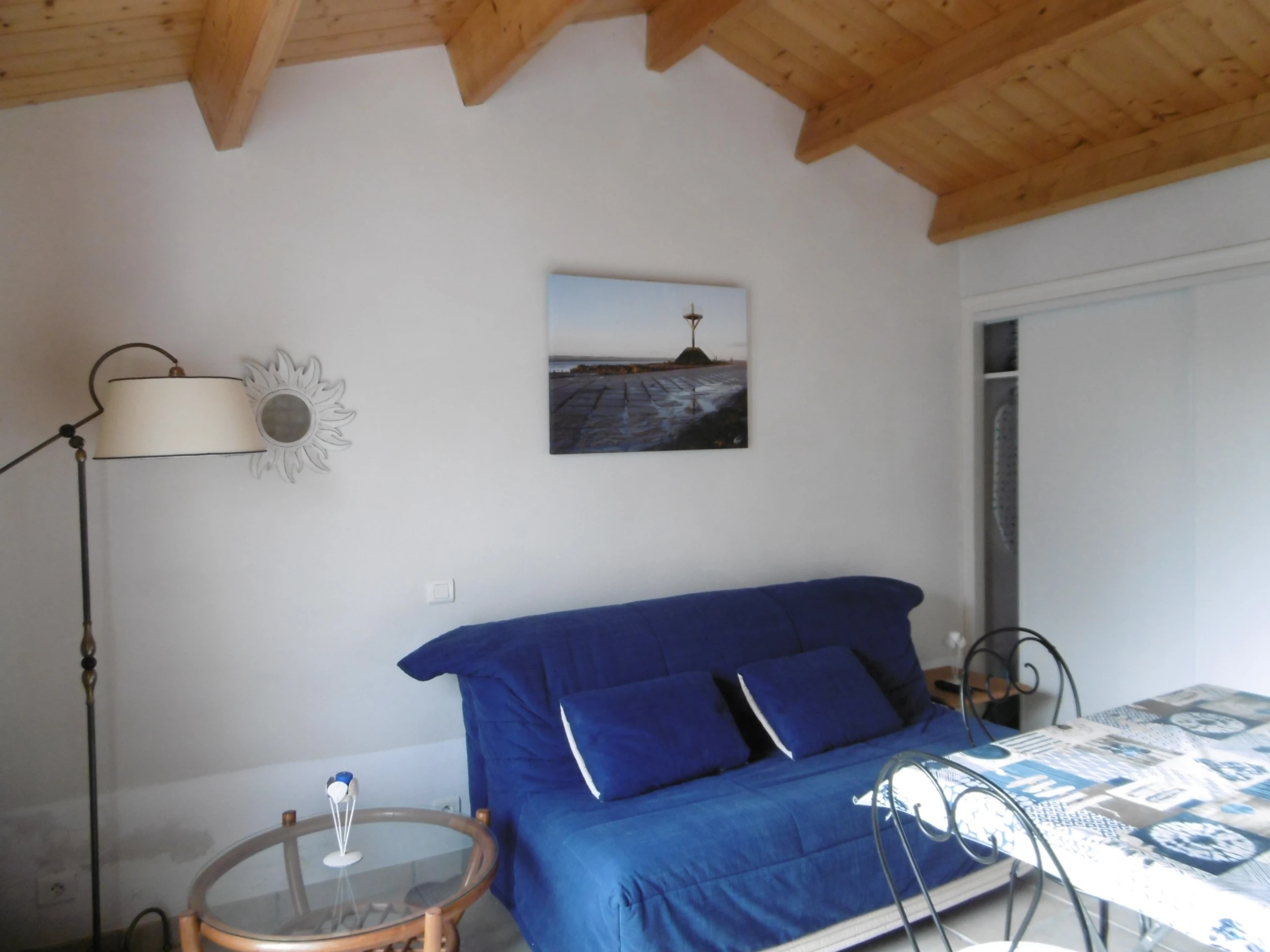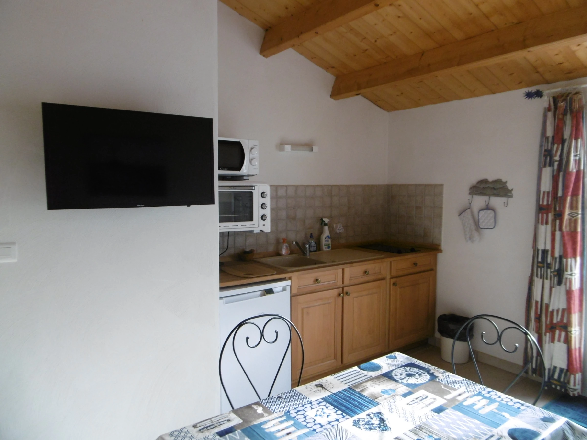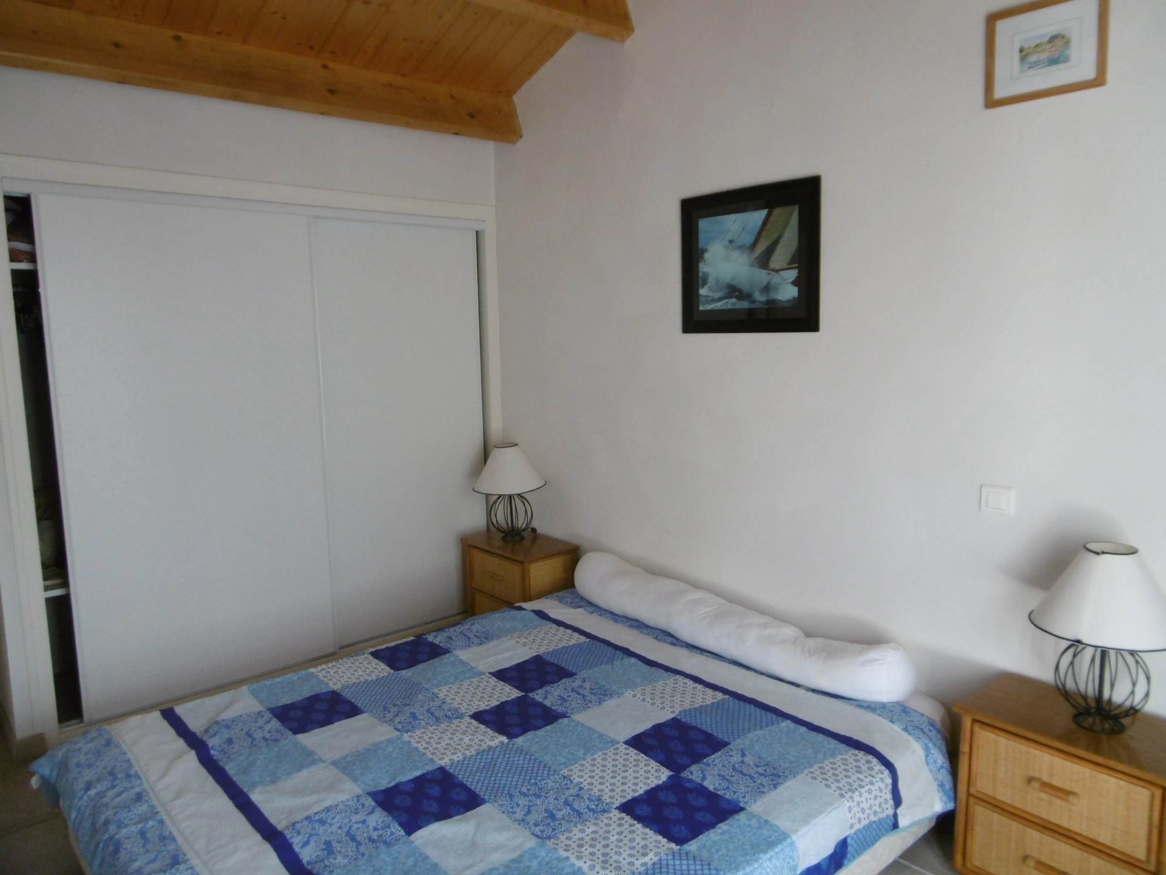 Single-story country cottage at the back of a property (when the cottage is rented, there is no one in the front property) - Quiet area - Approximately 33 m² - Sleeps 2 - Access to the beach via the path through the property - Living room with kitchenette - One bedroom with a 160 x 200 cm bed and large closet - Shower room - Separate toilet - Microwave, oven, ceramic hob, flat-screen TV mounted on the wall in the living room - Large enclosed garden with terrace & garden furniture, parasol, charcoal barbecue, and two deck chairs - Private parking on the property or in the residence - Pets not allowed - Cleaning service available: €55.