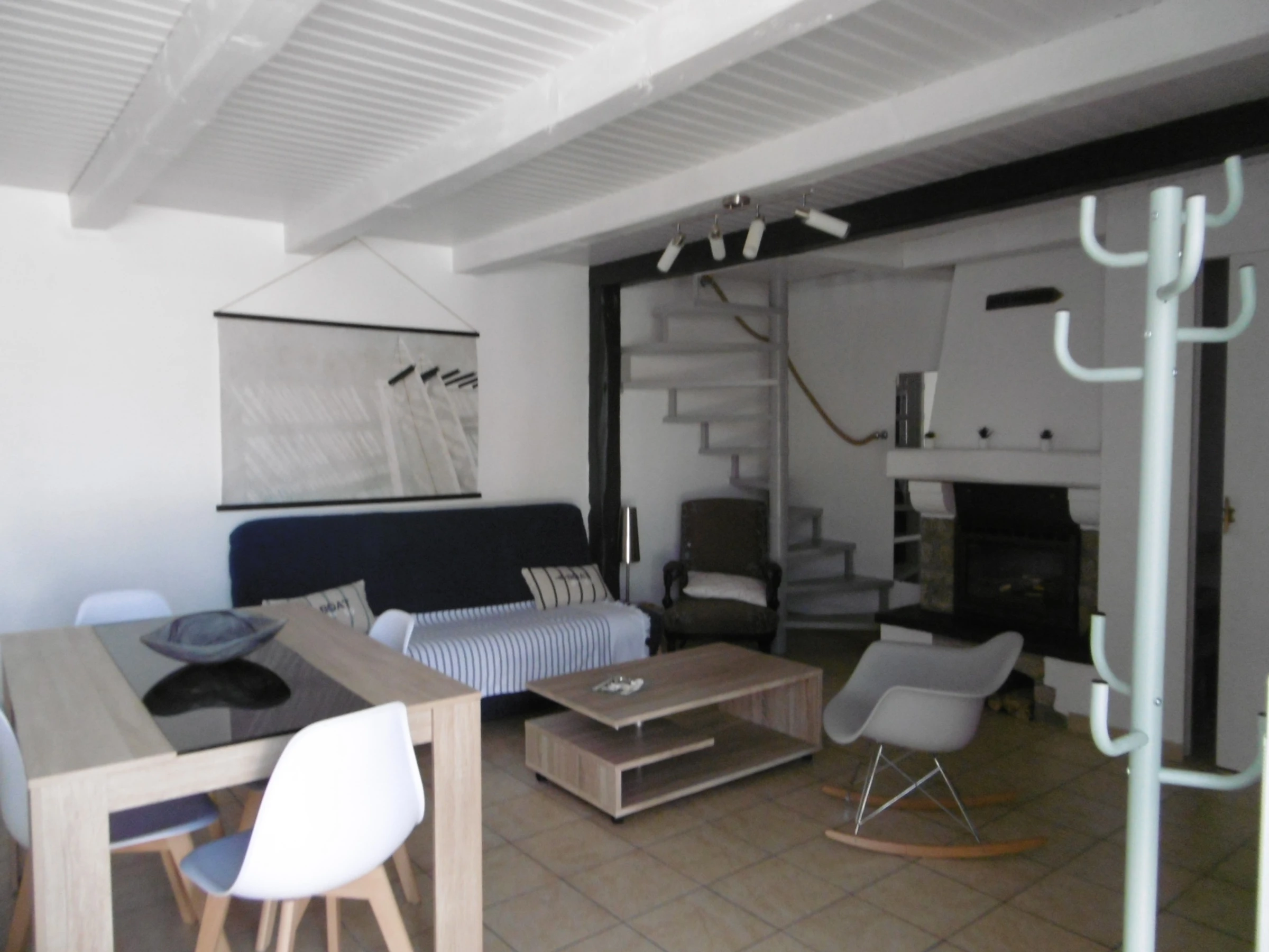 Two-story semi-detached country house of approximately 48 m² with a large private terrace and pergola, all in a shared fenced courtyard - Sleeps 4 - comprising a living room with dining area and lounge area, fireplace with non-functional insert, separate fitted and equipped kitchen - shower room and separate toilet. Amenities: Washing machine, dishwasher, microwave, refrigerator with 3 freezer drawers, 4 ceramic hobs, flat-screen TV, free Wi-Fi, pergola with garden furniture, charcoal barbecue, 2 deckchairs, 3 tulip armchairs, bike rack. Upstairs: One bedroom with a 160 x 200 cm bed, a large closet, and a small balcony overlooking the courtyard. A very small children's bedroom adjoining the master bedroom with a 90 x 190 cm bed with a 90 cm trundle bed. Shared enclosed grounds with two other small houses. Street parking or a parking lot 200 m away. Pets not allowed. Cleaning fee available: €80.
