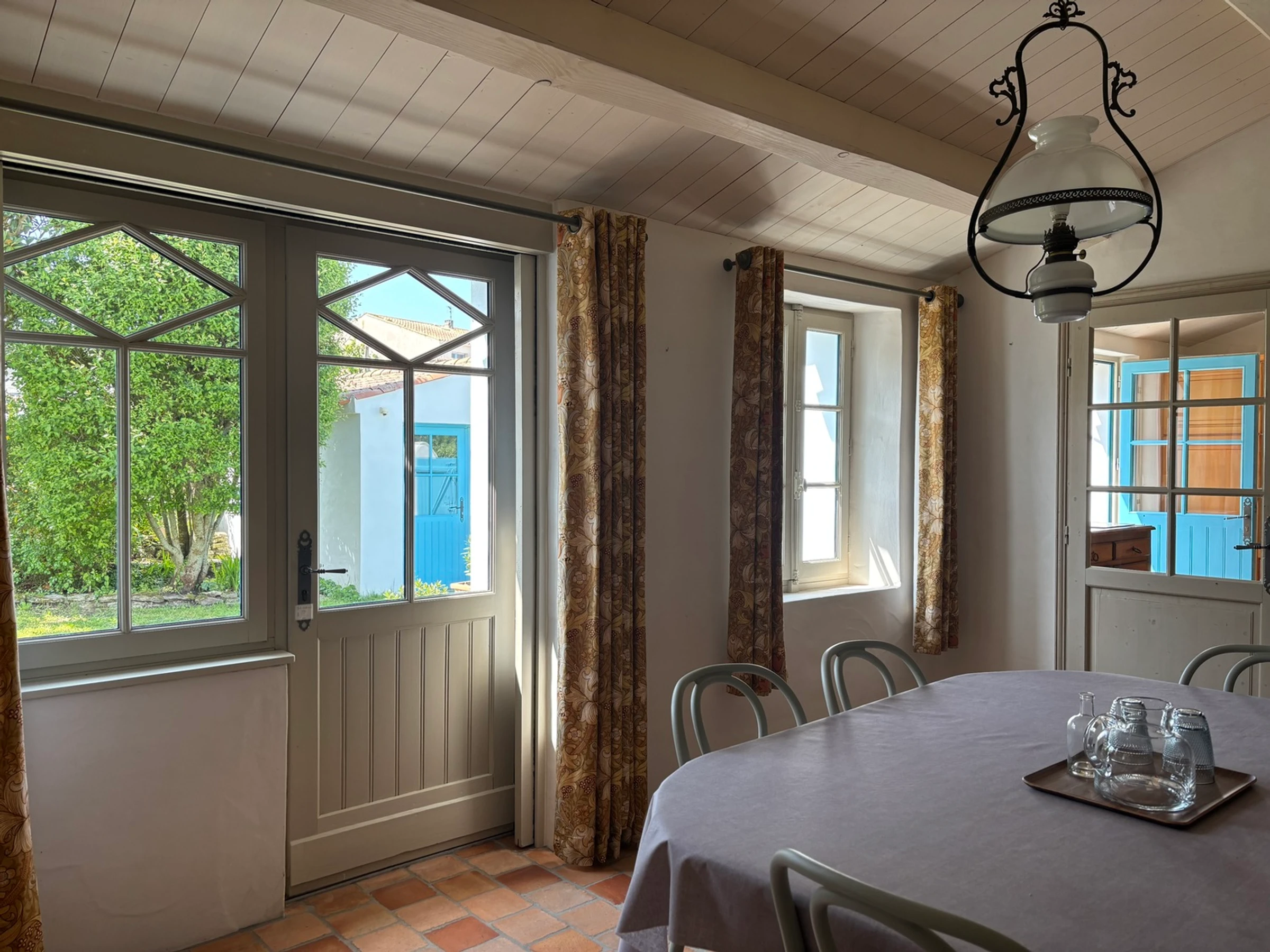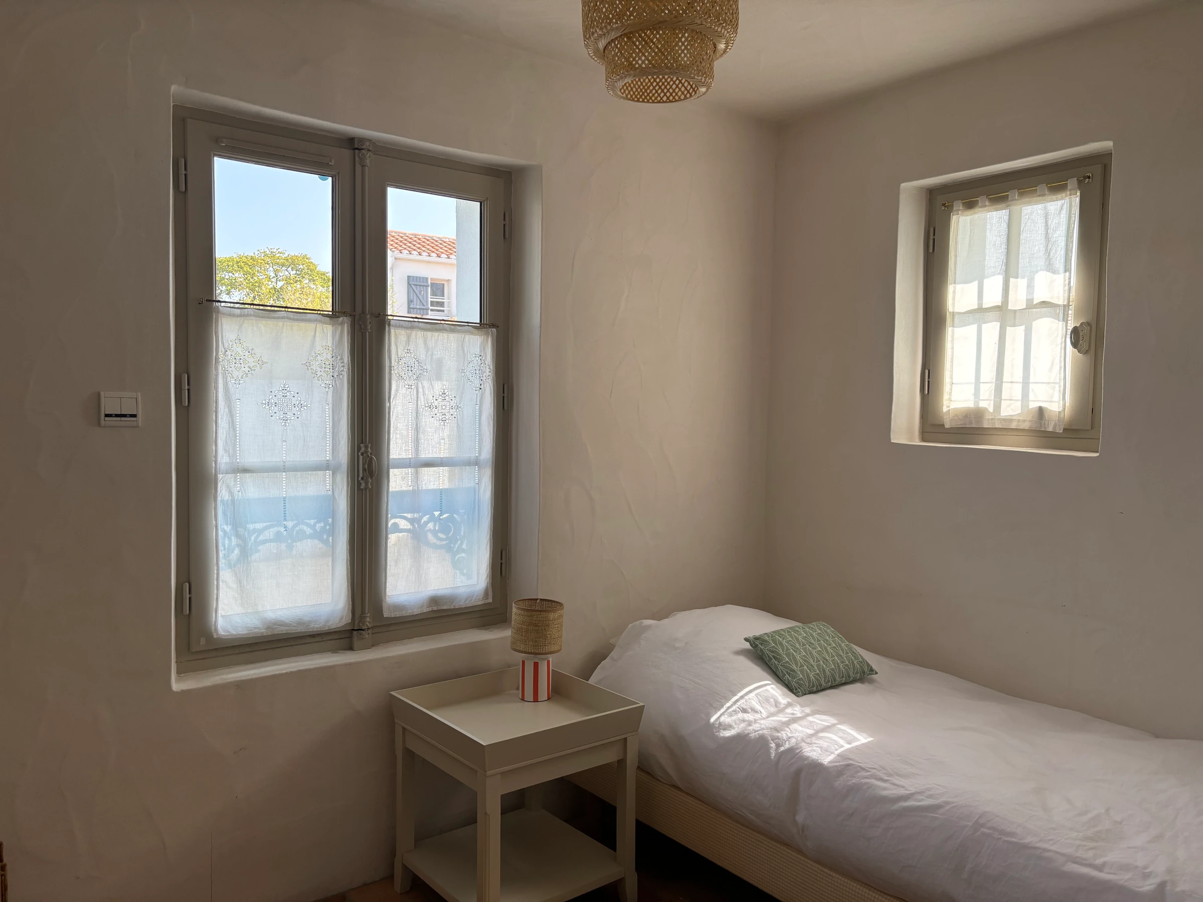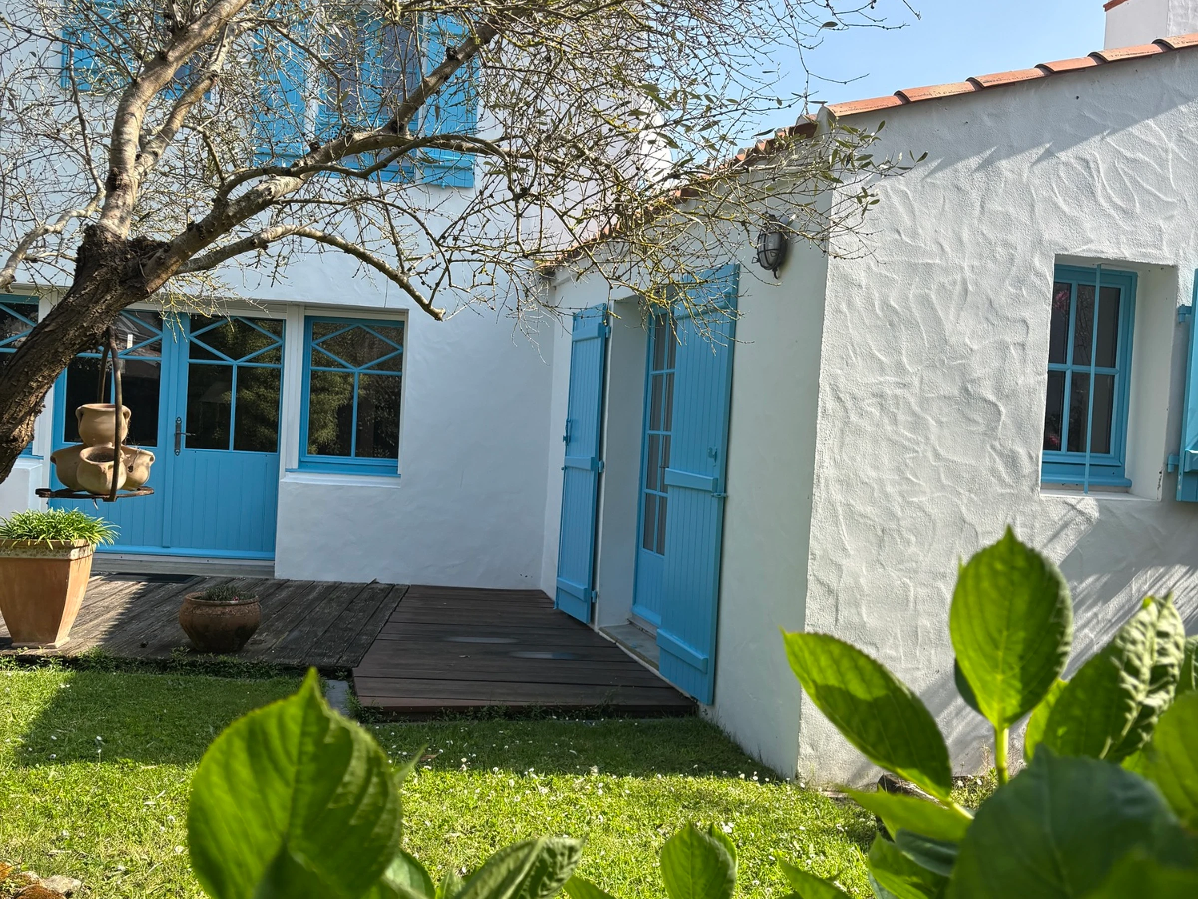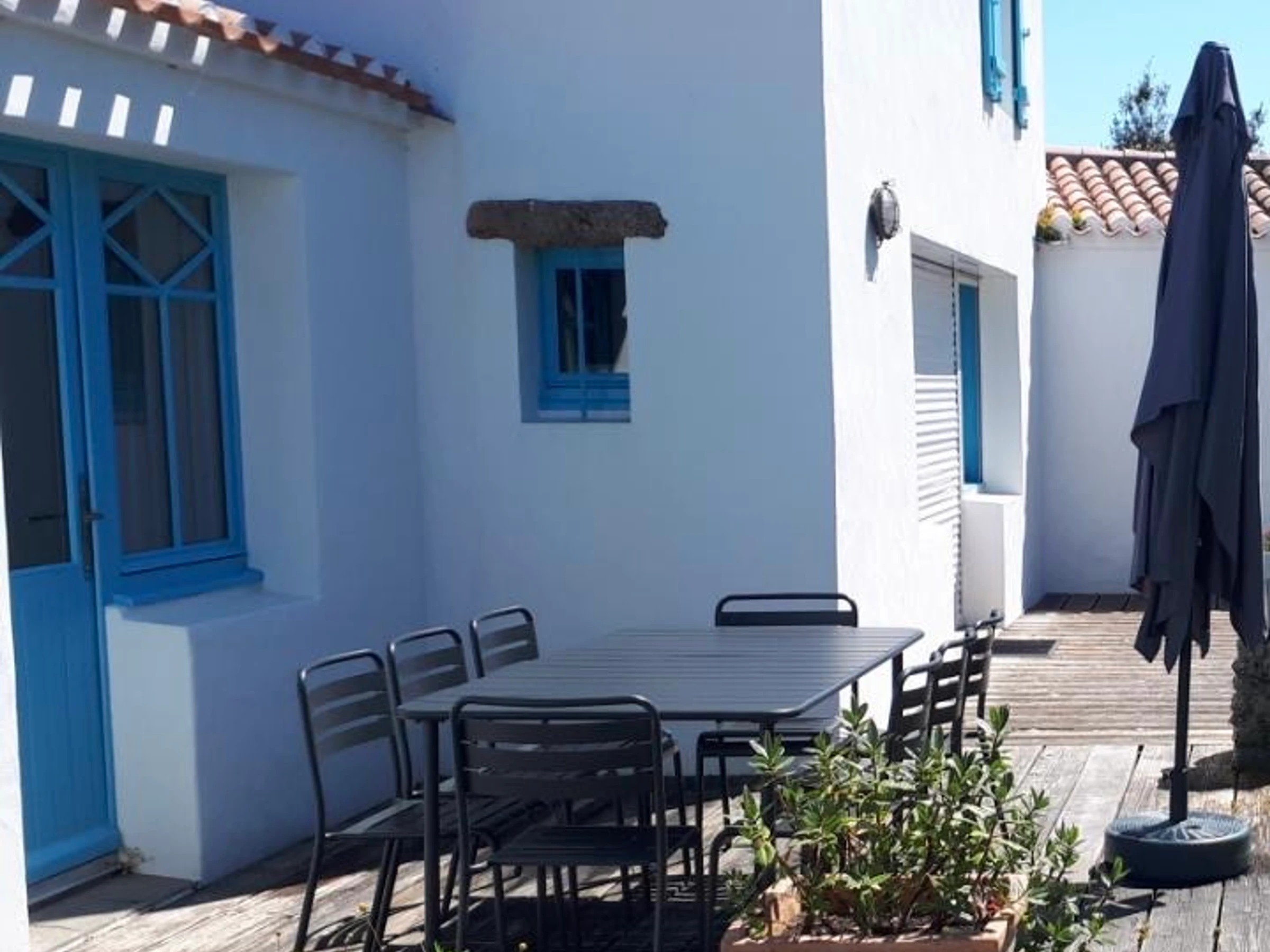 Charming, typical Noirmoutier house with all mod cons in a quiet location that can accommodate 7 people - approximately 120 m² - comprising on the ground floor: entrance hall, fitted and equipped kitchen with television, dining room, living room (fireplace not allowed) with television, bedroom with a 160x200 cm bed with en-suite shower room and toilet, and television, a small bedroom with a 90x190 cm bed, pantry, and separate toilet. Upstairs, a bedroom with a 160x200 cm modular bed or two 80x200 cm beds, a bedroom with two 90x200 cm beds, a bathroom with toilet, and bicycle storage. Ceramic hob, refrigerator/freezer, freezer, dishwasher, extractor hood, microwave, oven, washing machine, free Wi-Fi and international channels with SFR. Enclosed garden with terrace, garden furniture, 2 sun loungers, parasol, and barbecue. Small dogs allowed. One parking space available in the residence. 3-star house.
