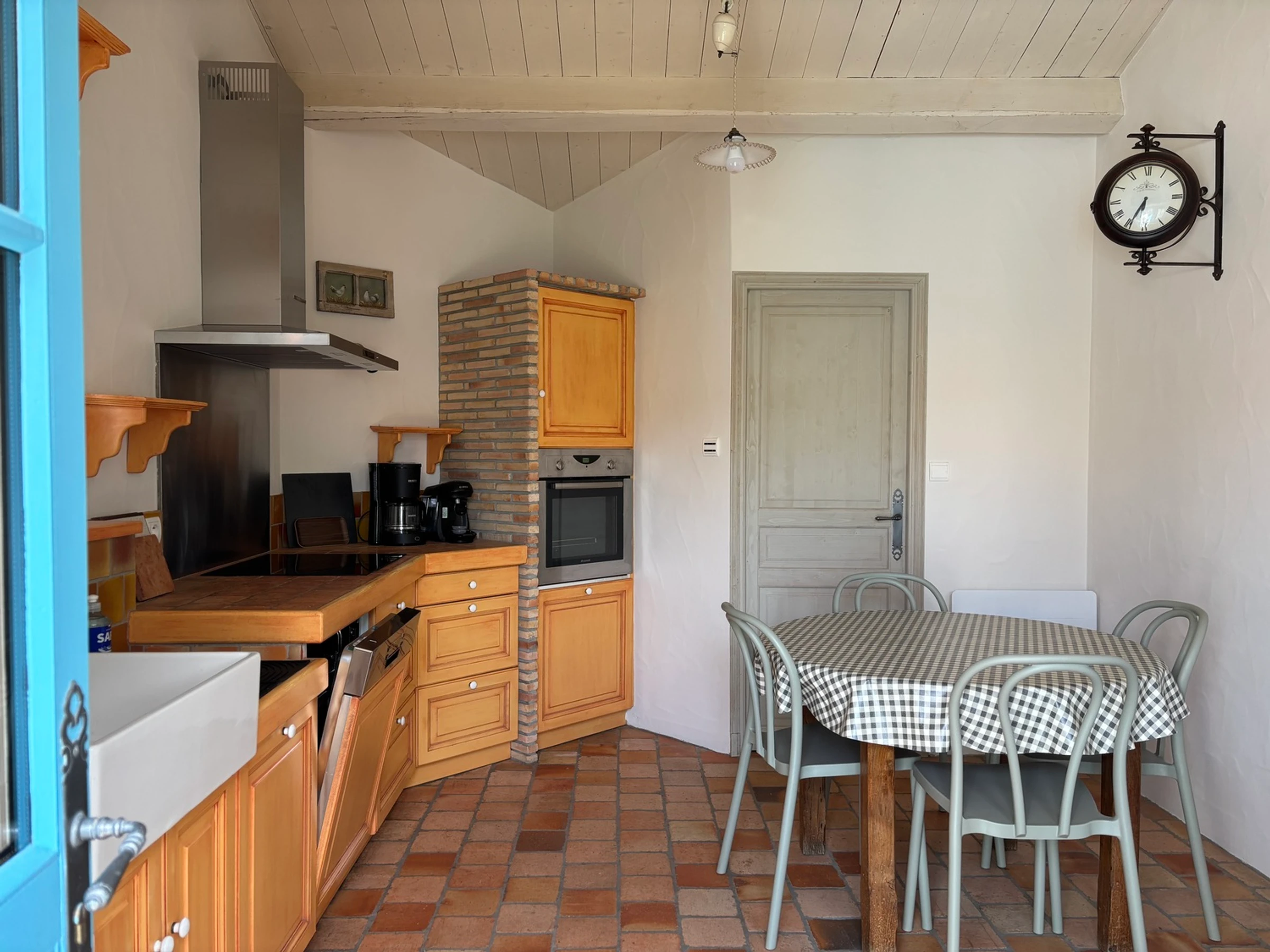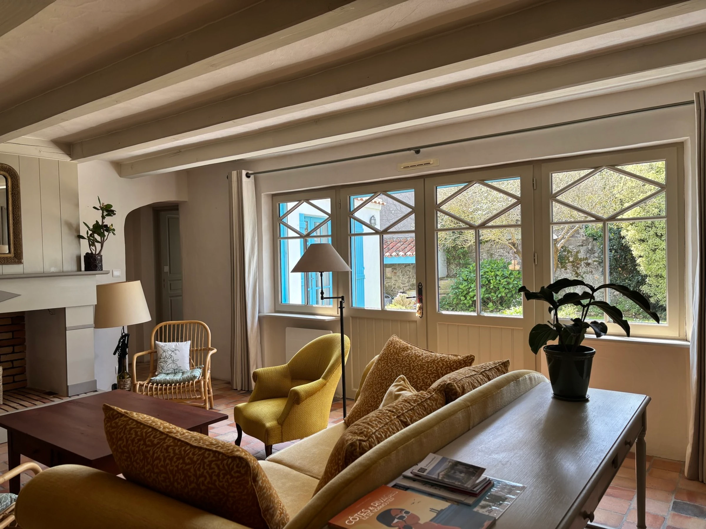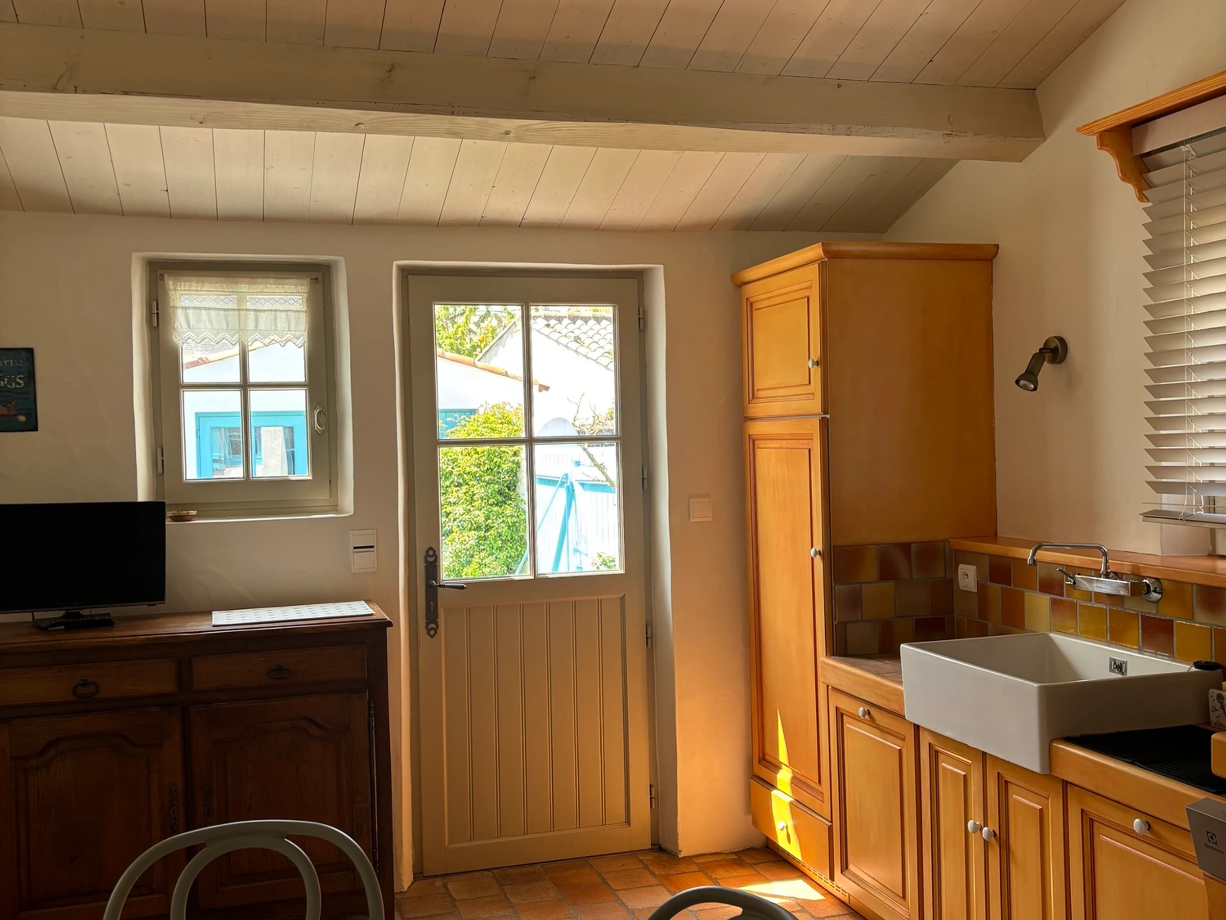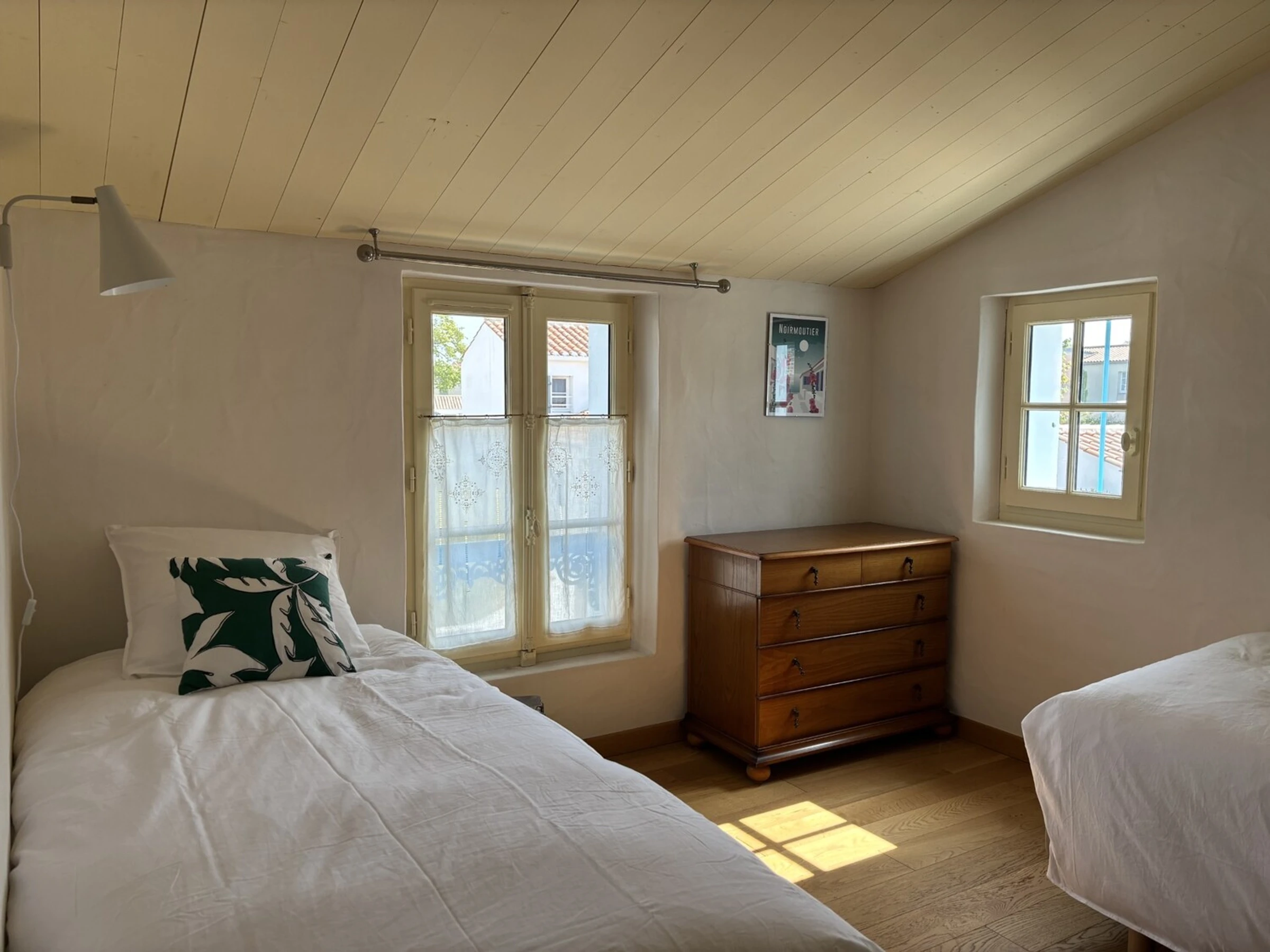 Charming, typical Noirmoutier house with all mod cons in a quiet location that can accommodate 7 people - approximately 120 m² - comprising on the ground floor: entrance hall, fitted and equipped kitchen with television, dining room, living room (fireplace not allowed) with television, bedroom with a 160x200 cm bed with en-suite shower room and toilet, and television, a small bedroom with a 90x190 cm bed, pantry, and separate toilet. Upstairs, a bedroom with a 160x200 cm modular bed or two 80x200 cm beds, a bedroom with two 90x200 cm beds, a bathroom with toilet, and bicycle storage. Ceramic hob, refrigerator/freezer, freezer, dishwasher, extractor hood, microwave, oven, washing machine, free Wi-Fi and international channels with SFR. Enclosed garden with terrace, garden furniture, 2 sun loungers, parasol, and barbecue. Small dogs allowed. One parking space available in the residence. 3-star house.