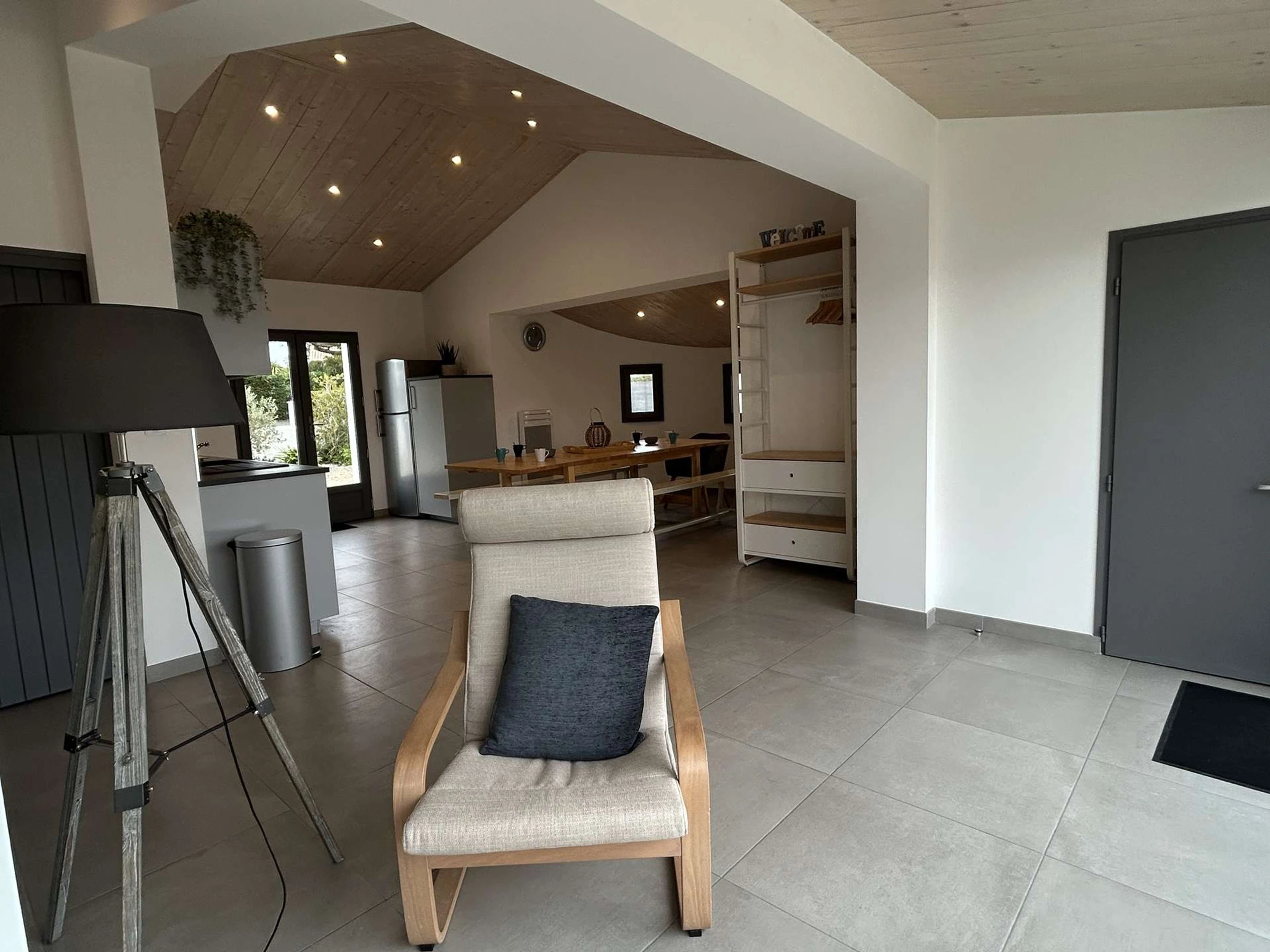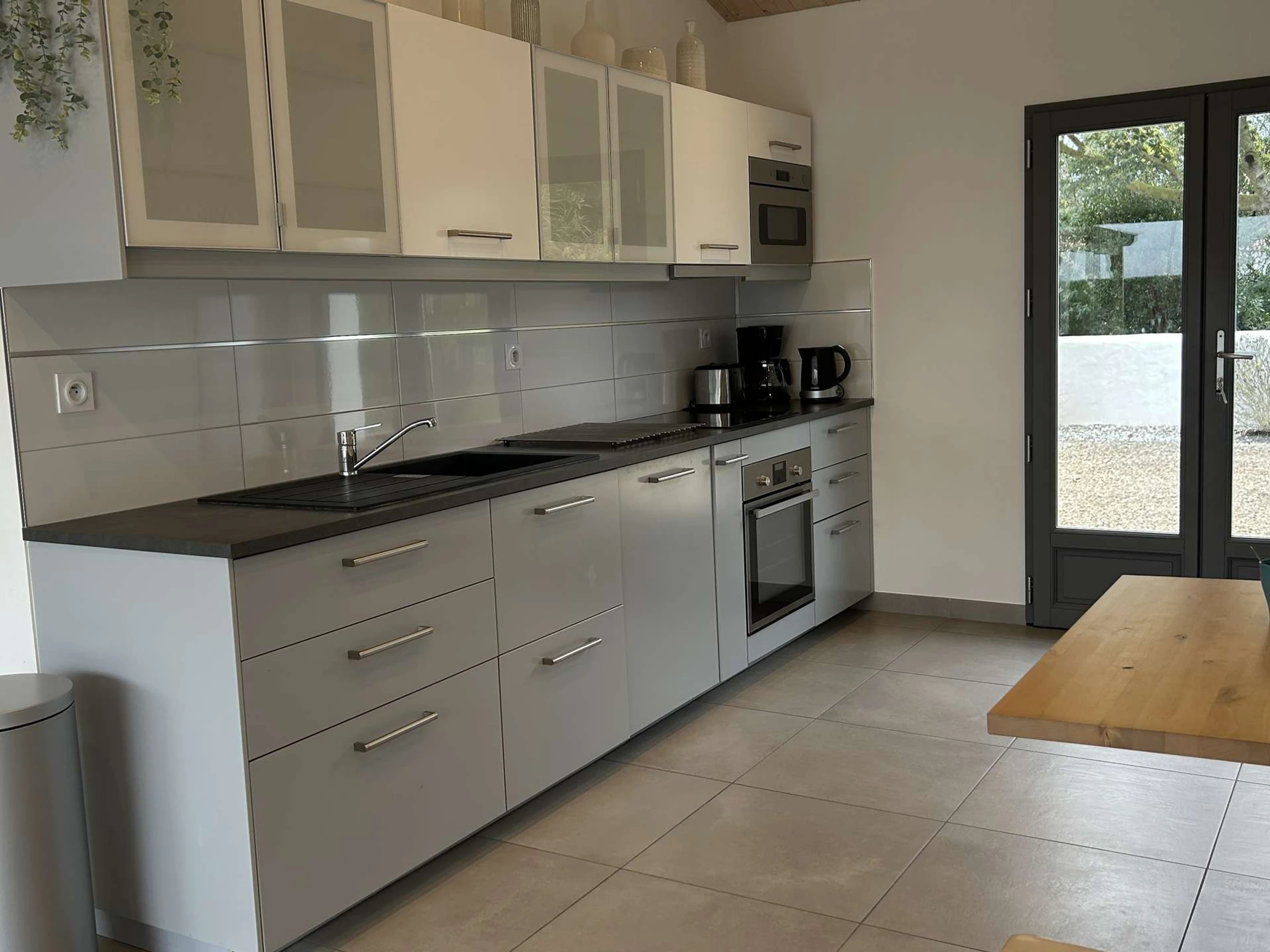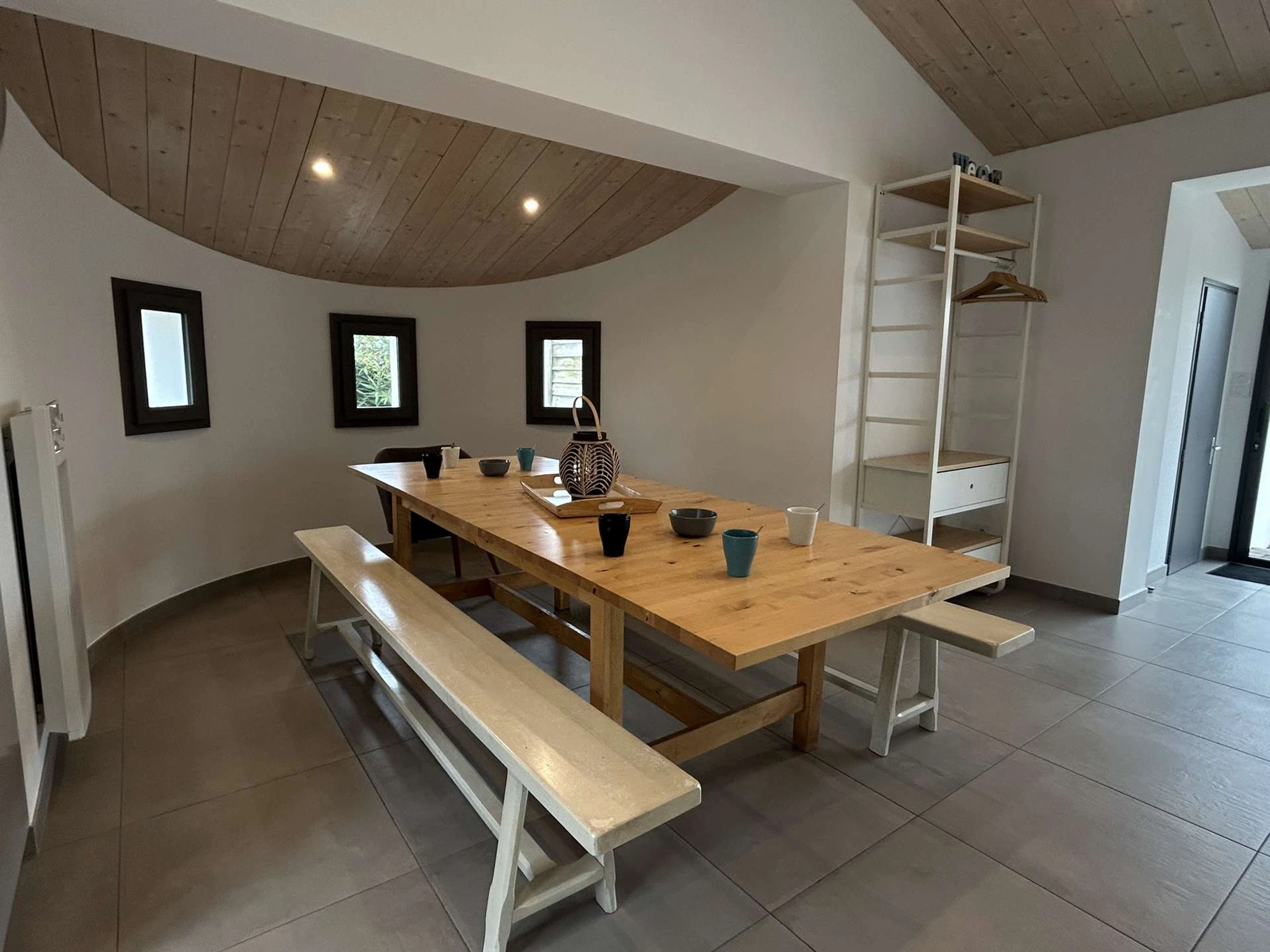 This property includes a single storey main house and an annex. The house consists of an equipped kitchen, a dining area, a lounge area with television and wifi access, a bedroom with a double bed (160), a sink and walk-in shower, a cabin bedroom with a double bed, a sink and a shower, a bedroom with two bunk beds, a sink and a shower. It has a separate toilet with a washing machine.