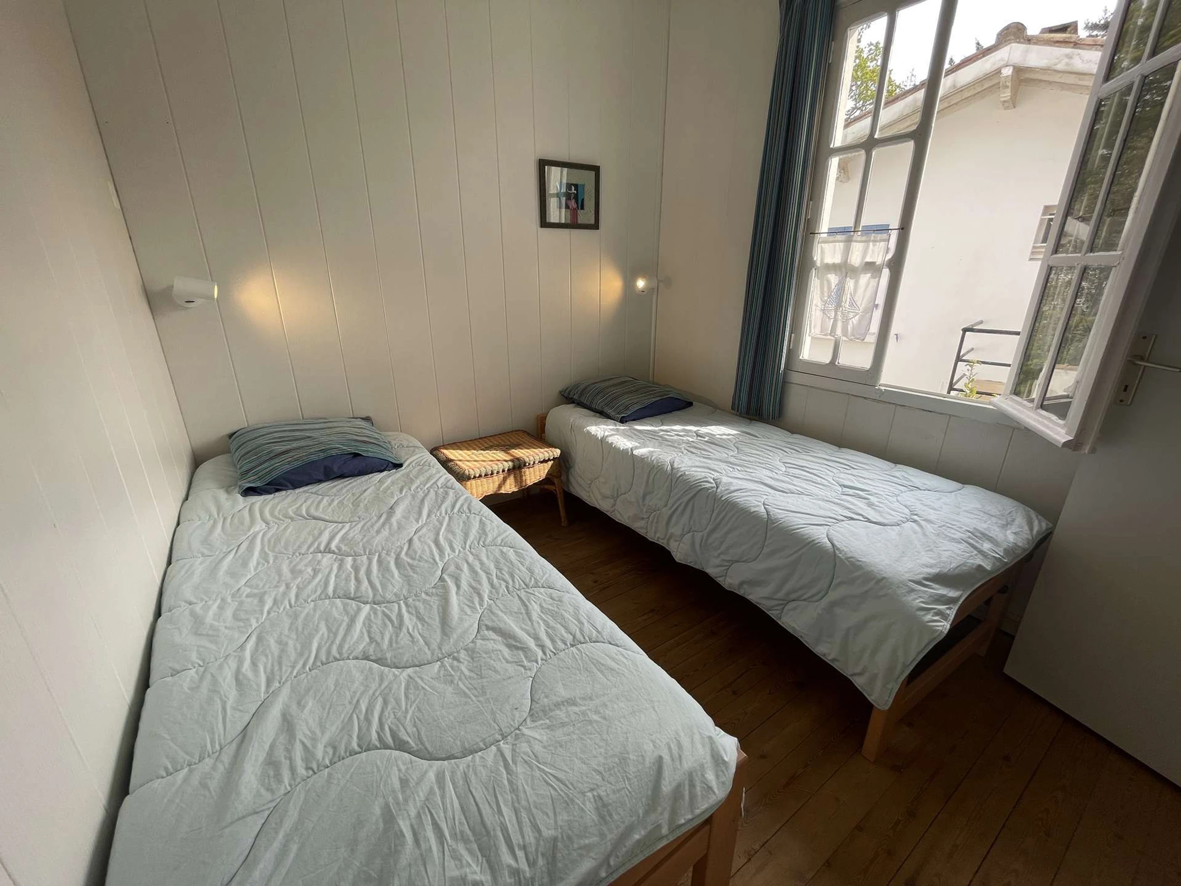 Duplex apartment located in a residence 600 m from the ladies' beach comprising on the ground floor a living room, an equipped kitchen, upstairs: 1 bedroom with two 90 cm beds (possibility of putting them together), in a row another bedroom with a 140 cm bed, another bedroom with a 90 cm high bed (not suitable for children under six years old) and finally a bathroom and WC.