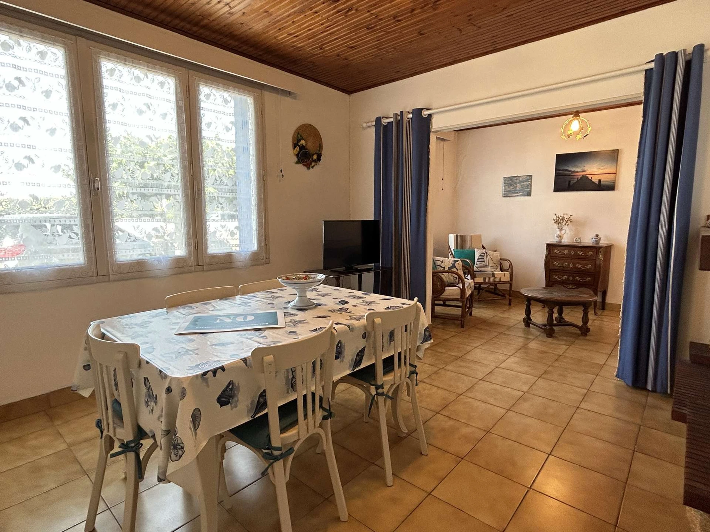 Single storey country house just 800 m from Luzeronde beach. This spacious house consists of a living room with television, a fitted kitchen with dining area, a veranda overlooking a south-facing courtyard, two bedrooms with two double beds, a bedroom with two single beds, a bathroom, a toilet, a pantry with washing machine.