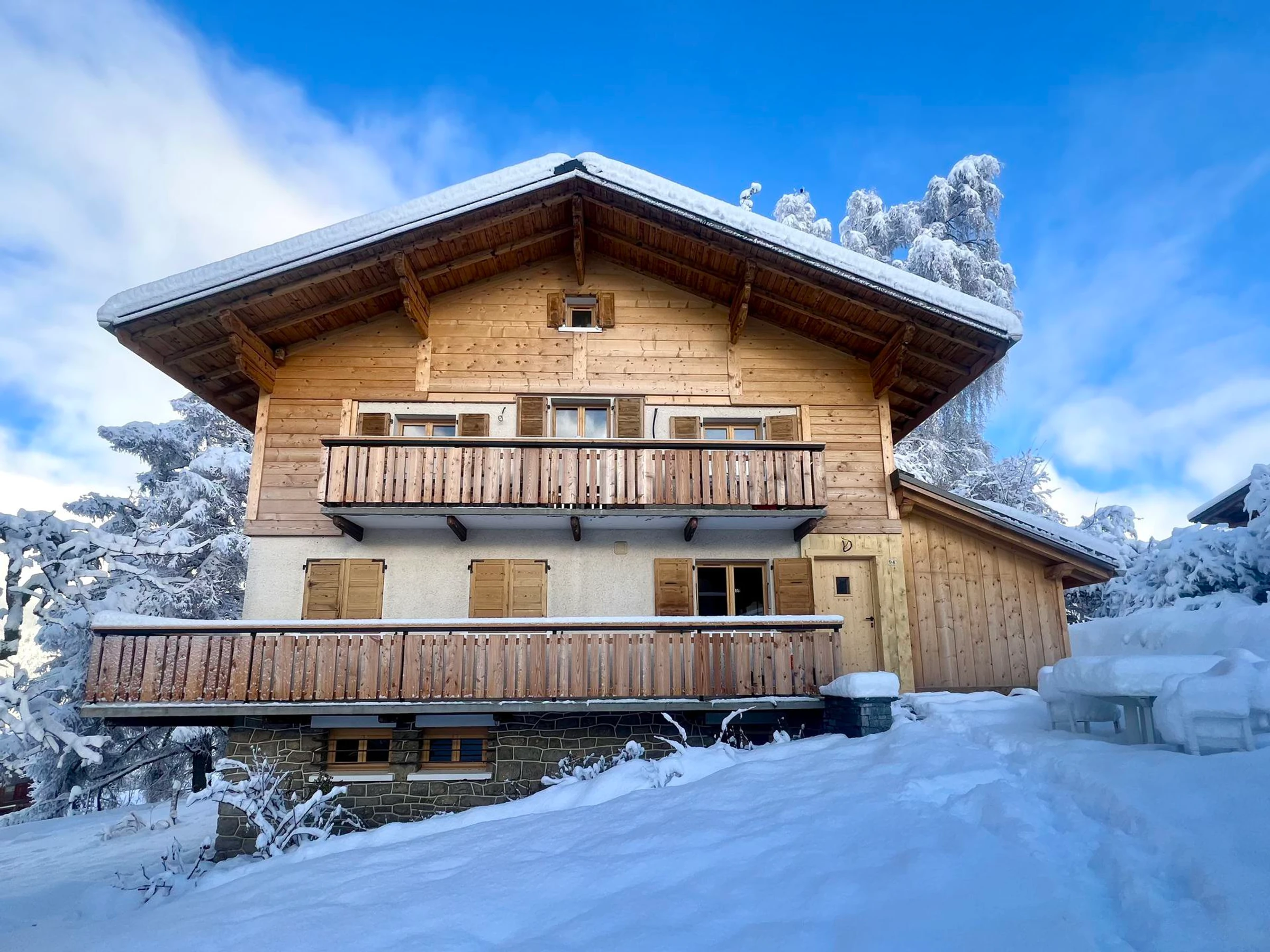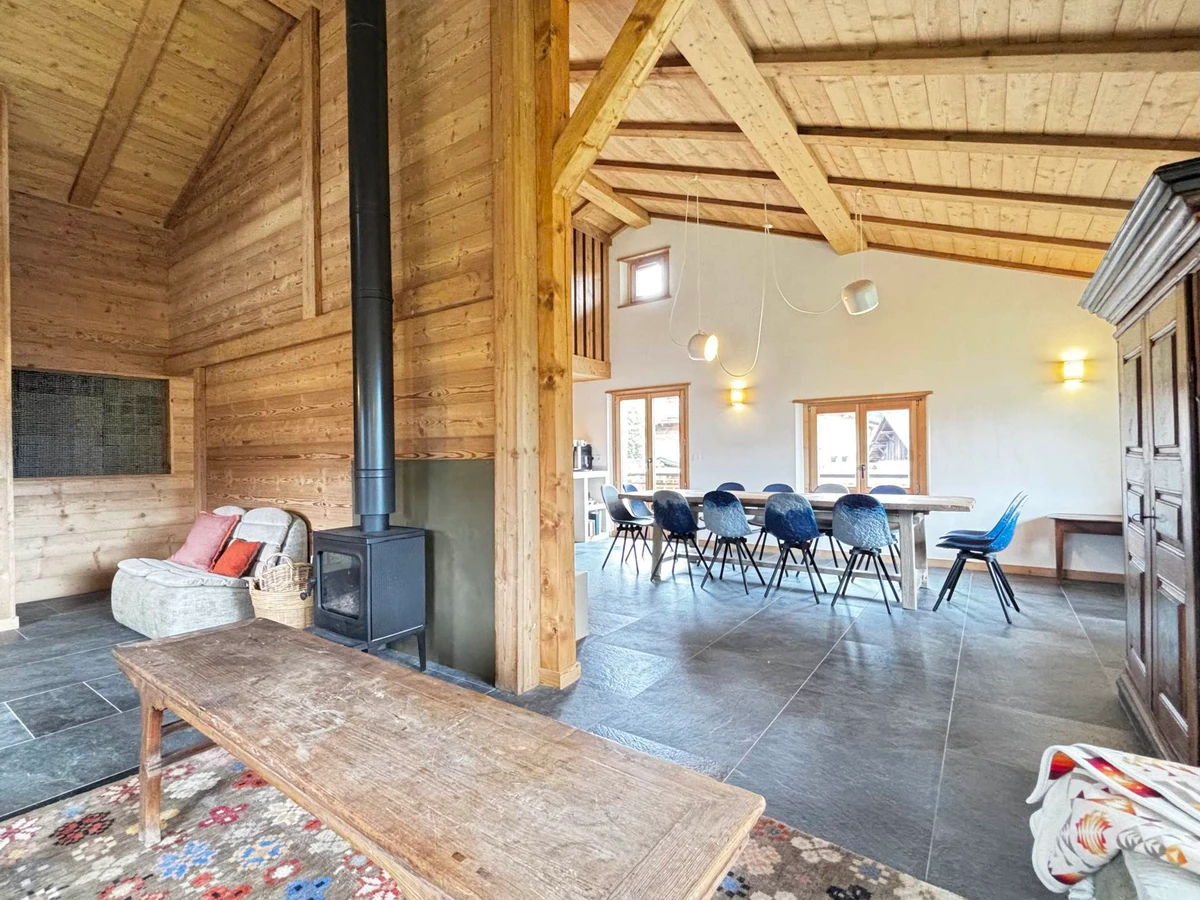 Chalet L'Outa is a beautiful, fully renovated detached chalet, ideally located in the heart of the village, just 200 meters from shops and entertainment, and 400 meters from the Espace Diamant ski slopes and the ski school.
