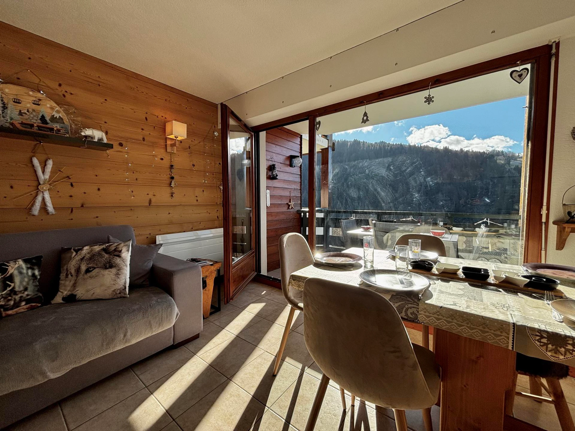The residence enjoys a prime location, just 400 m from shops and amenities, and 600 m from the Espace Diamant ski slopes and the ski school (ski bus stop <100m).