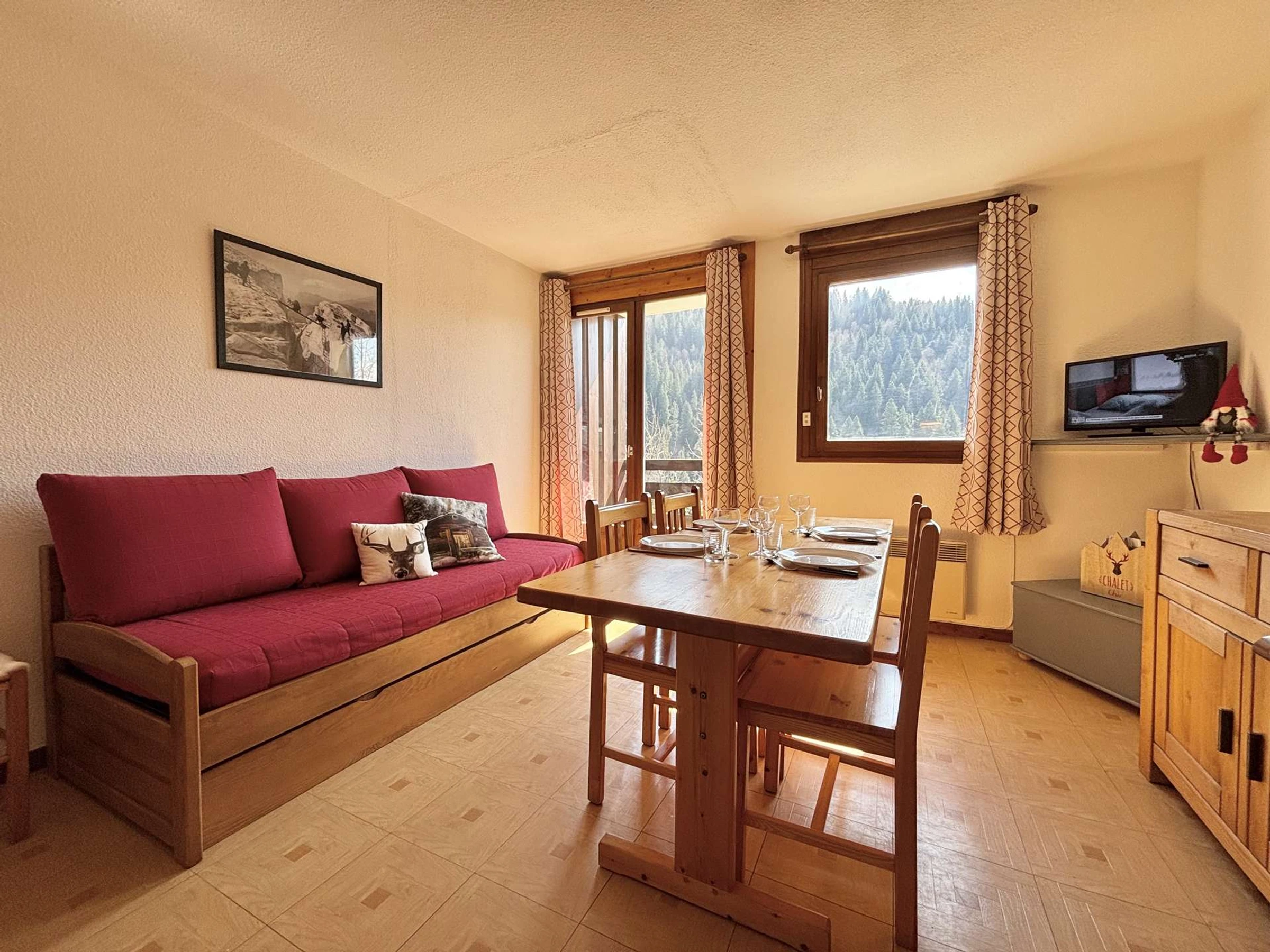 This cozy studio is well equipped and located 400 meters from the village and its shops, and 600 meters from the ski school and slopes. A free shuttle stop located a stone's throw from the residence will take you there in a few minutes.