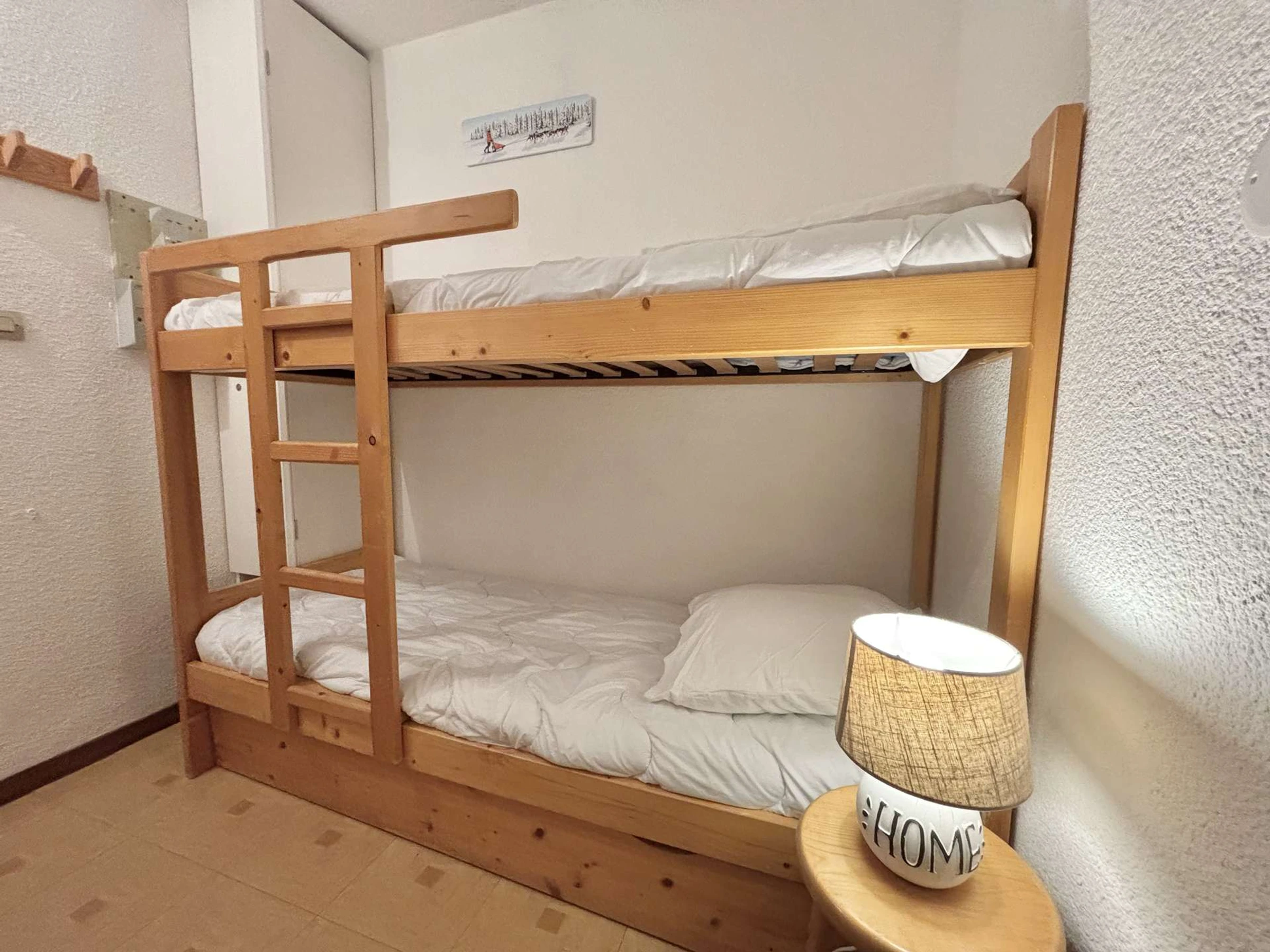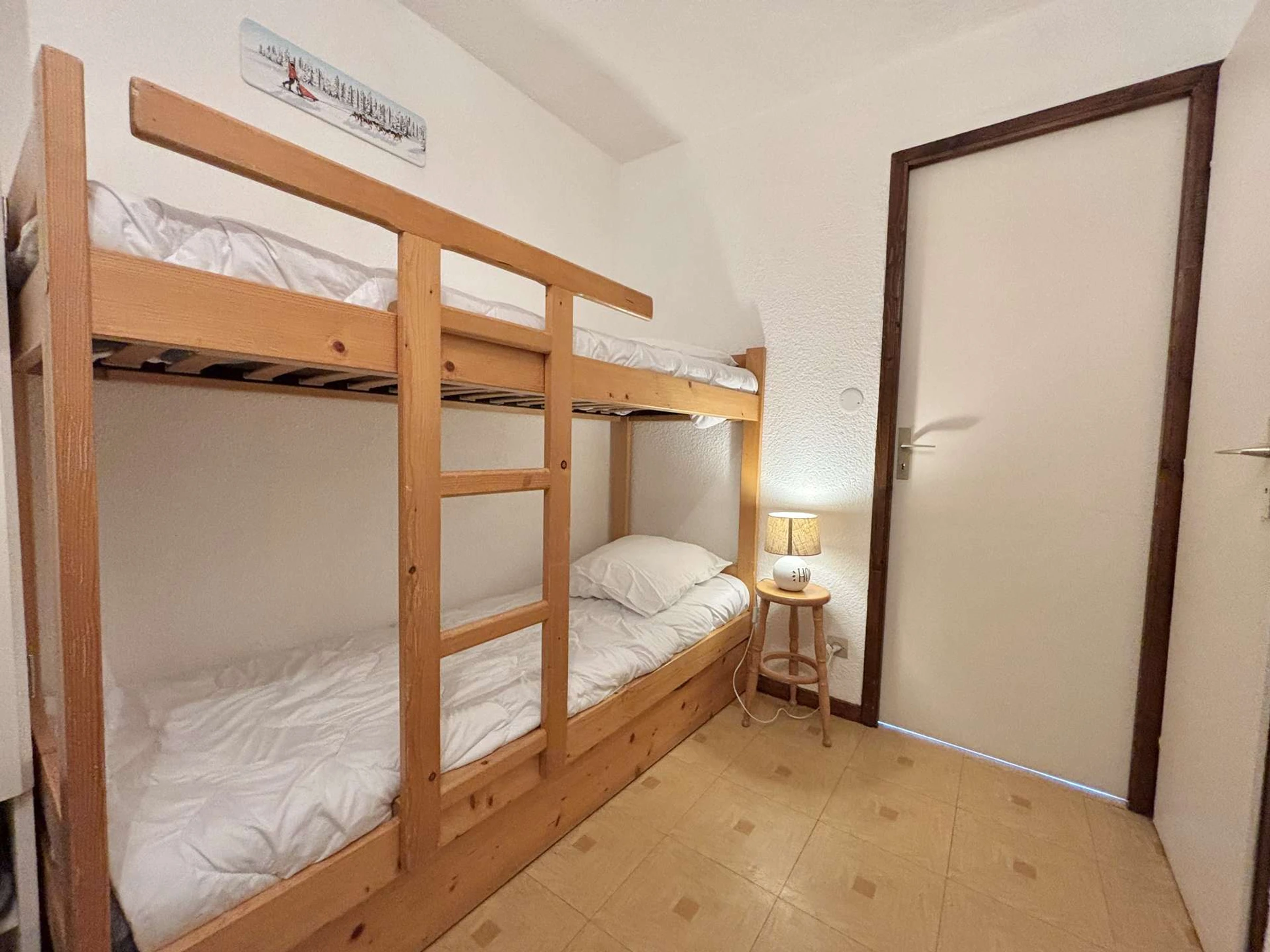 This 25m² vacation studio is located on the first floor without an elevator (access to the apartment: walk down 2 flights of stairs) and includes an entrance hall with a sleeping area: two bunk beds (NB: children under 6 are not allowed to sleep in the top bunk), a living room with two single beds, an equipped kitchenette, a bathroom, a separate toilet, and a balcony.