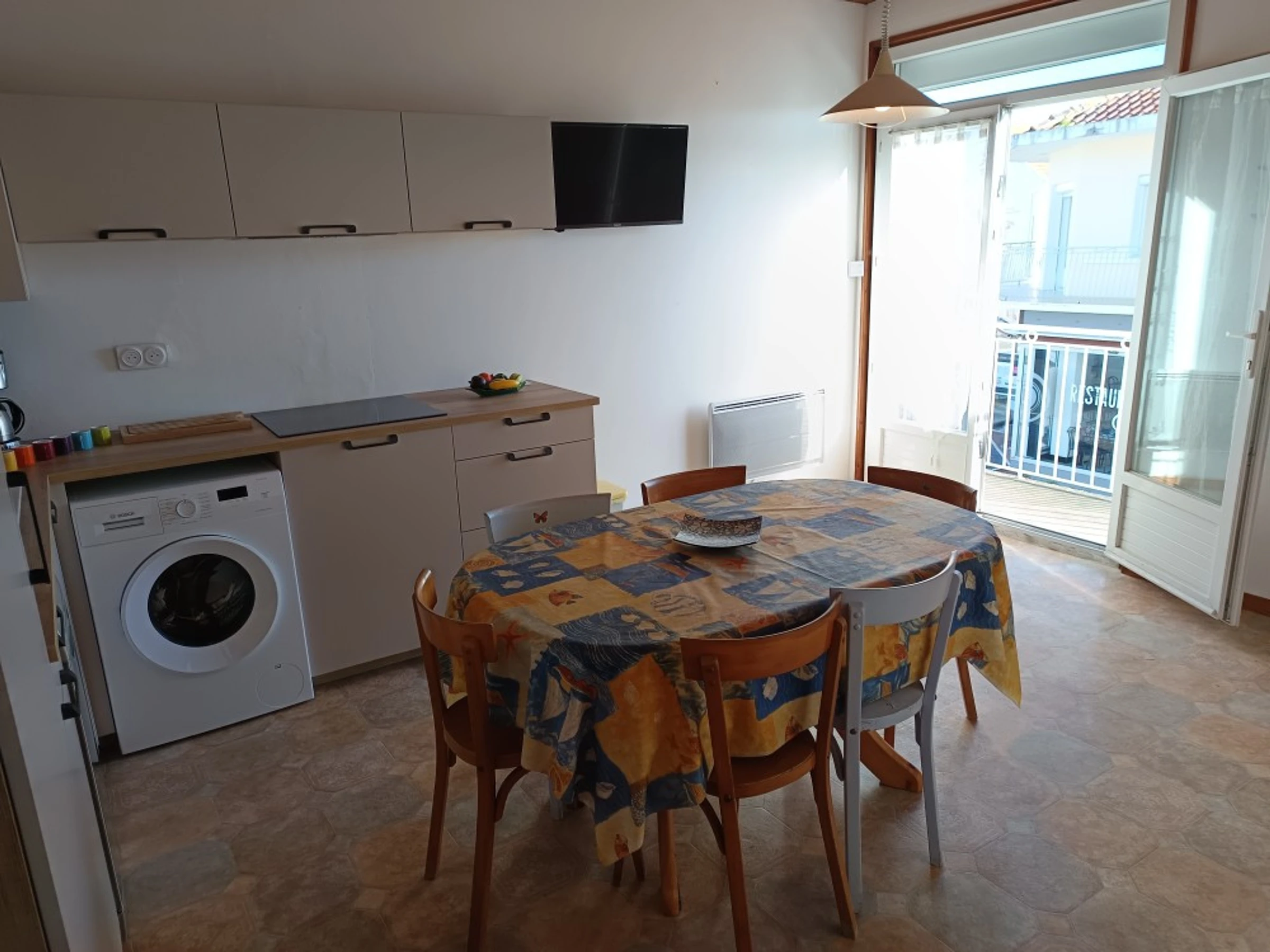 Bright apartment on the first floor of a small residence with balcony, located in the heart of the main street with its local shops. This flat is ideal for enjoying a car-free holiday, as everything is within walking distance! Beach, shopping and walks. It is perfect for short stays but also for holidays.