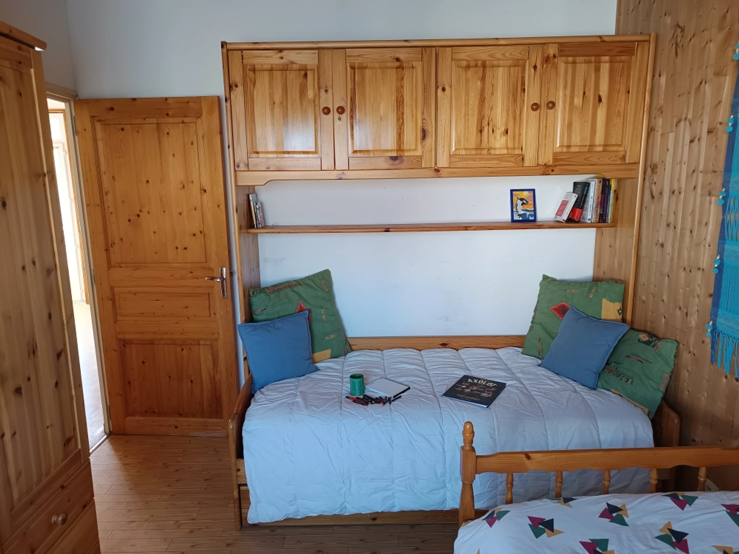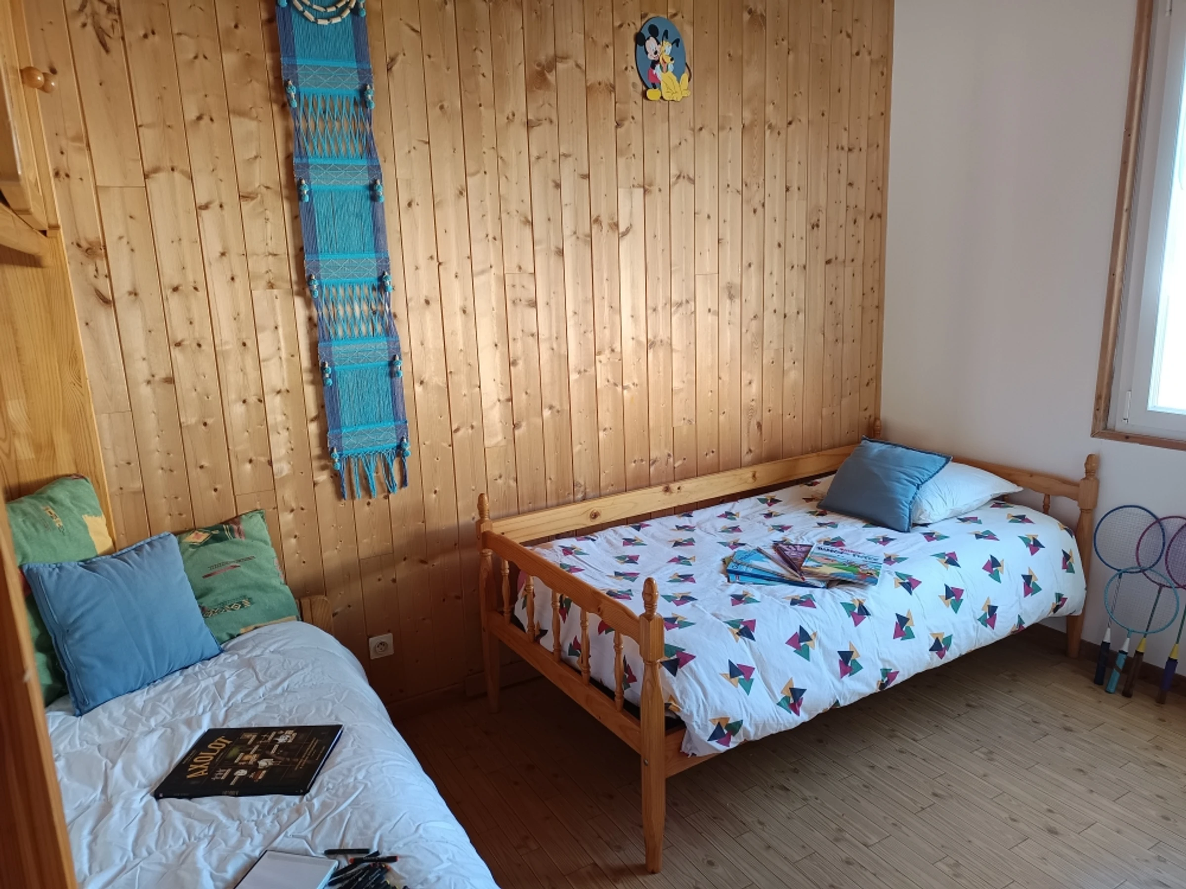 • Bedroom 2: 2 single beds (90 x 190 cm) with bedding (duvets, two square pillows, two cotton mattress protectors), wardrobe, storage space.