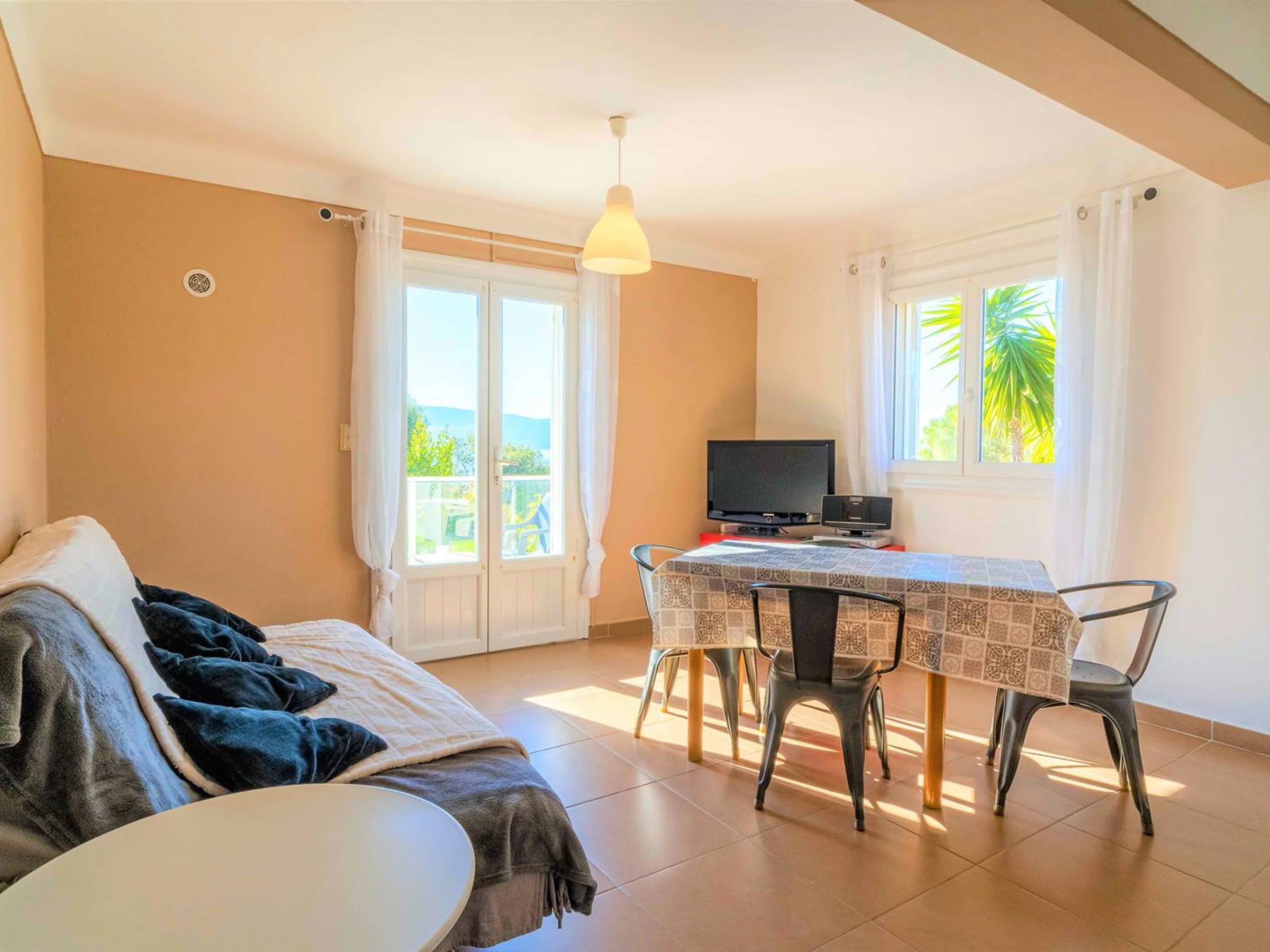 - Bright living room with direct access to the semi-covered terrace, ideal for dining