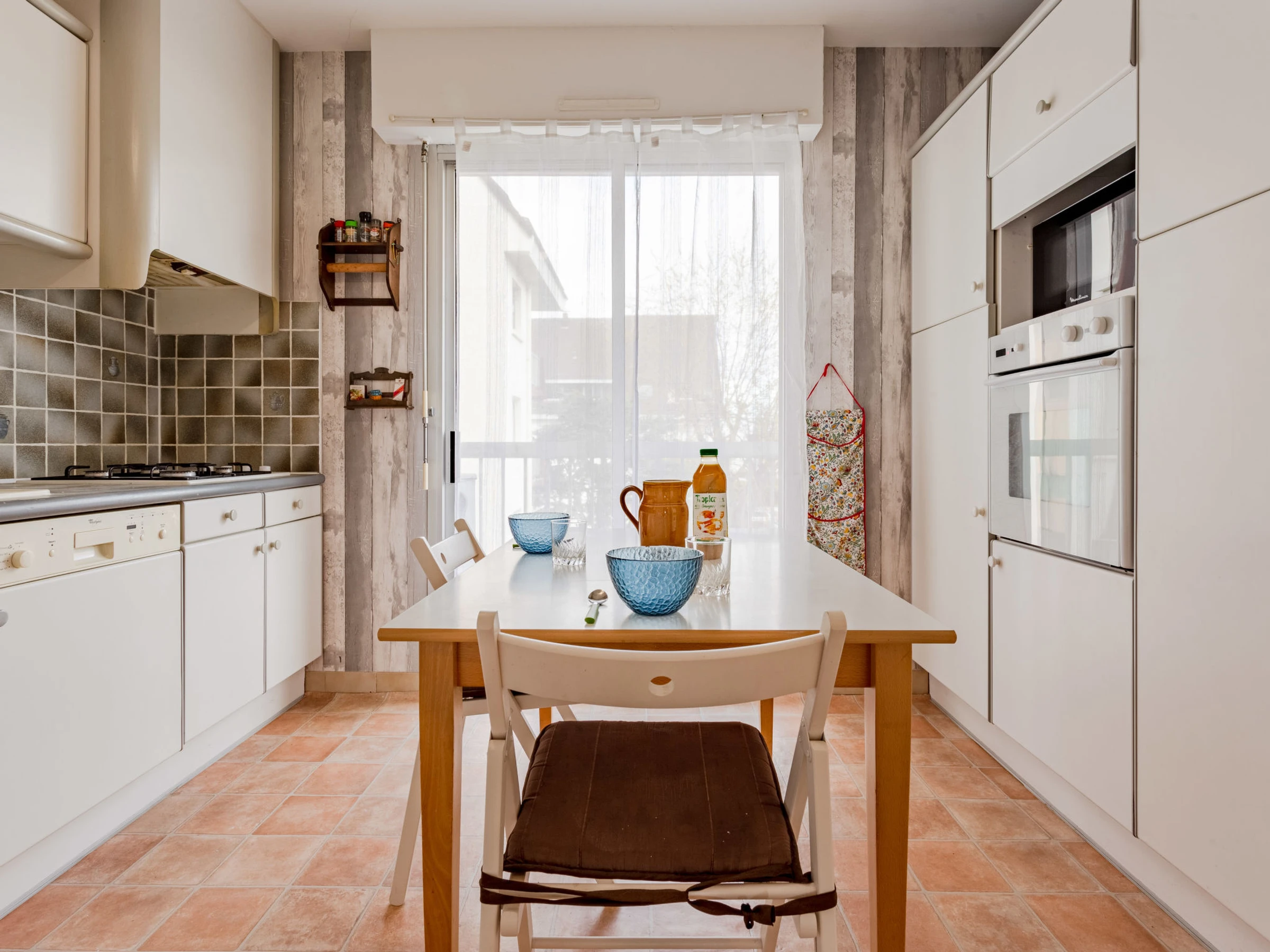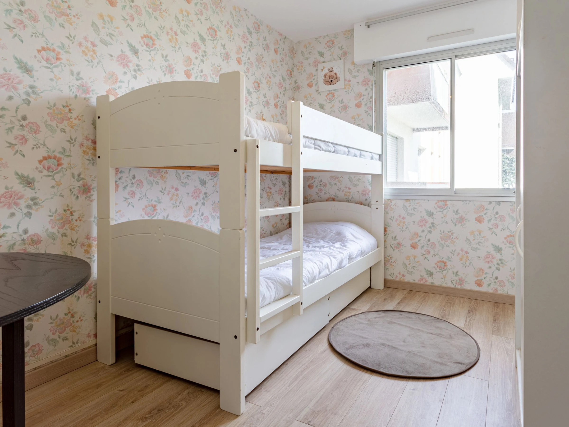 3-room apartment 72 m2 on 2nd floor, east facing position. Large living/dining room with TV (flat screen). Exit to the balcony. Alcove with 1 double sofabed (130 cm, length 190 cm). 1 room with 1 french bed (140 cm, length 190 cm). Exit to the balcony. 1 room with 1 x 2 bunk beds (80 cm, length 190 cm). Kitchen (4 hot plates, oven, dishwasher, toaster, kettle, microwave, electric coffee machine) with dining table. Shower, sep. WC. Gas heating. Balcony 12 m2, balcony 6 m2. Balcony furniture. Facilities: washing machine. Internet (WiFi, free). Reserved parking space n 227. Please note: non-smokers only. Smoke alarm.