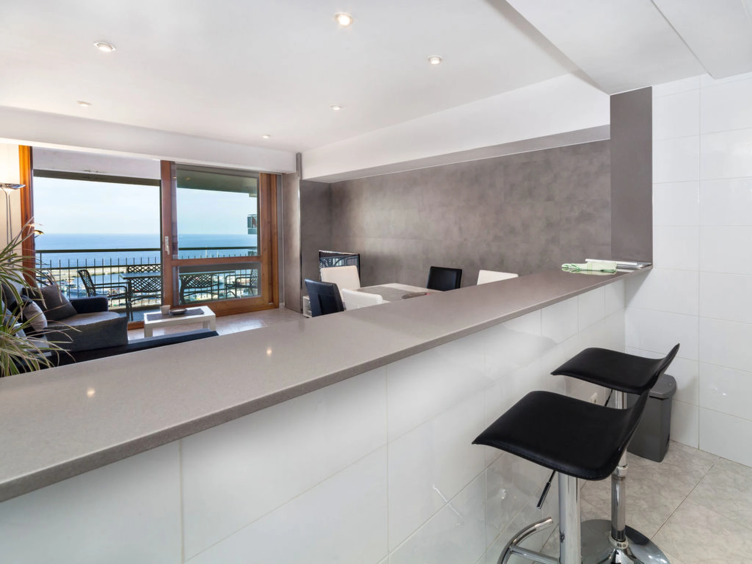 4-room apartment 70 m2 on 18th floor. Renovated in 2015, practical and beautiful furnishings: living/dining room with satellite TV and DVD. Exit to the terrace. 1 room, without wardrobe with 1 bed (90 cm, length 190 cm). 1 room with 1 french bed (135 cm, length 190 cm). 1 room with 1 french bed (150 cm, length 190 cm). Open kitchen (3 hot plates, dishwasher, microwave). Bath/bidet/WC. Electric heating, boiler (100 litres). Terrace 10 m2. Terrace furniture. Very beautiful view of the sea and the port. Facilities: washing machine, children's high chair, baby cot for up to 2 year olds. Internet (WiFi, free). HUTG017482