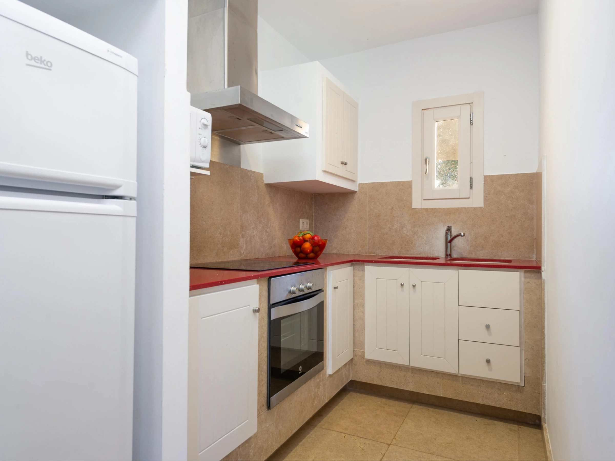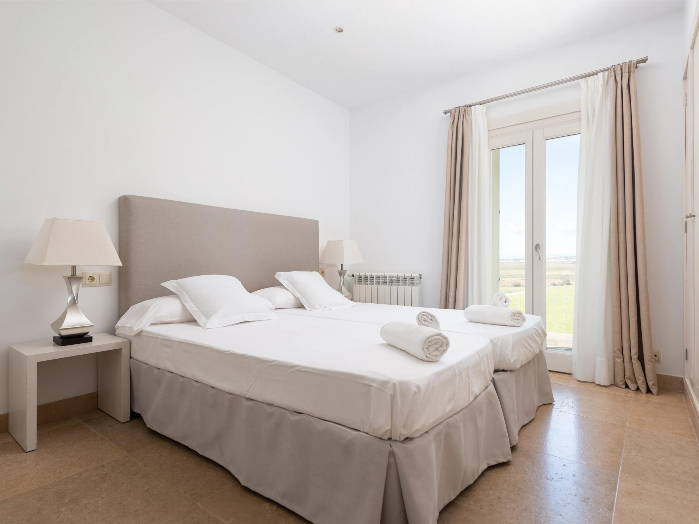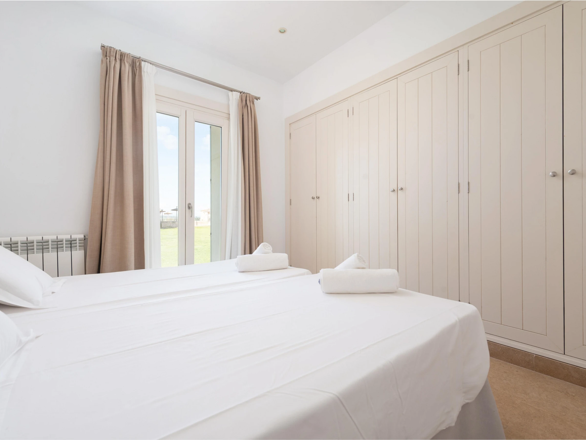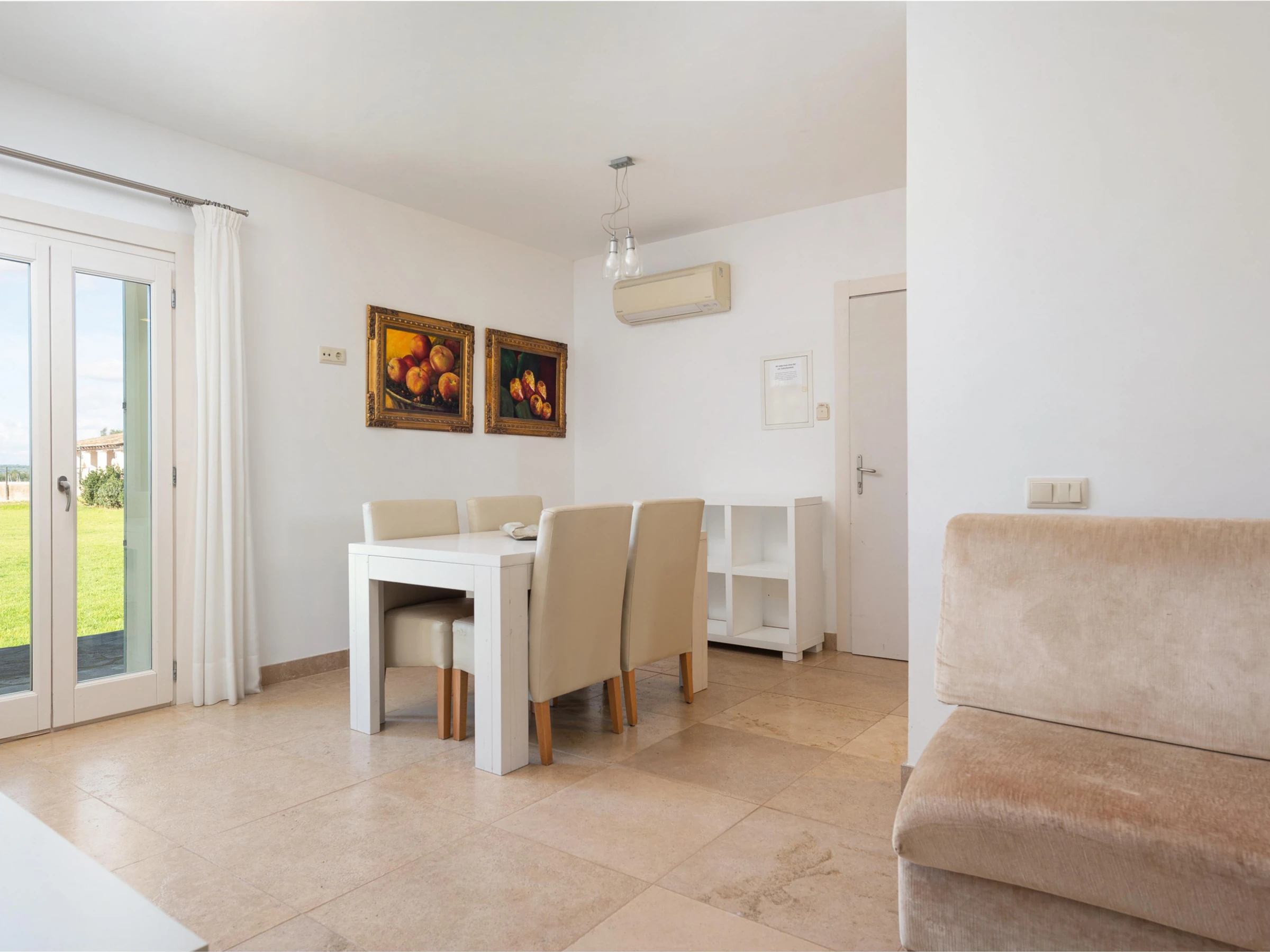 The interior of the property, of typical Majorcan style and high vaulted ceilings, is designed to offer you the rest you deserve. In the common areas you will find a large living room with tables and armchairs where you can meet and take refuge from the heat. Your apartment, on one level, consists of a dining room with satellite TV. The kitchen, open to the living room, is equipped with induction hobs and all the necessary utensils to cook comfortably. In the house there is a washing machine, iron and ironing board. There are two bedrooms, both with two single beds together, AC, heating and en suite bathroom with shower. If you are traveling with your baby, we can provide a crib and highchair.