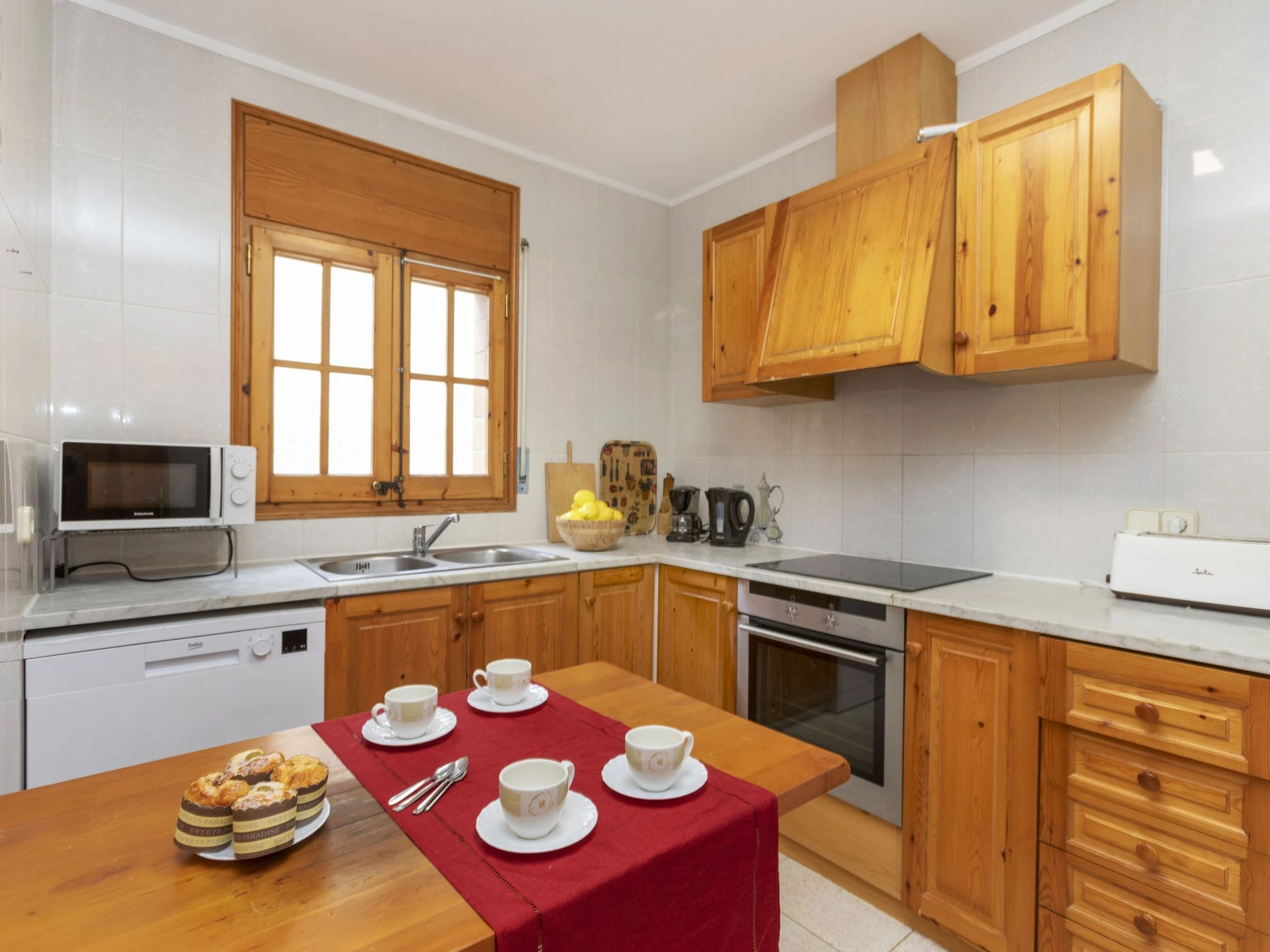 "Torremora Arnaldo", 5-room villa 130 m2, lower ground floor. Practical and comfortable furnishings: living/dining room with open-hearth fireplace (only for decoration), digital TV. 1 room with 1 french bed (1 x 150 cm, length 190 cm). 2 rooms, each room with 2 beds (90 cm, length 190 cm). 1 room with 1 x 2 bunk beds (90 cm, length 190 cm), air conditioning and forced-air heating with bath/bidet/WC. Kitchen (oven, dishwasher, 3 induction hot plates, toaster, kettle, microwave, electric coffee machine) with dining table. Sep. WC. Large terrace. Terrace furniture. View of the swimming pool. Facilities: washing machine, iron, children's high chair, baby cot for up to 2 year olds, hair dryer. Internet (WiFi, free). Reserved parking at the house. Please note: 1 pet/ dog allowed. TV only ES. Smart Tv- Wi-Fi service by Fiber router. Air conditioning in all rooms and heat pump through renewable energy. [hidden]