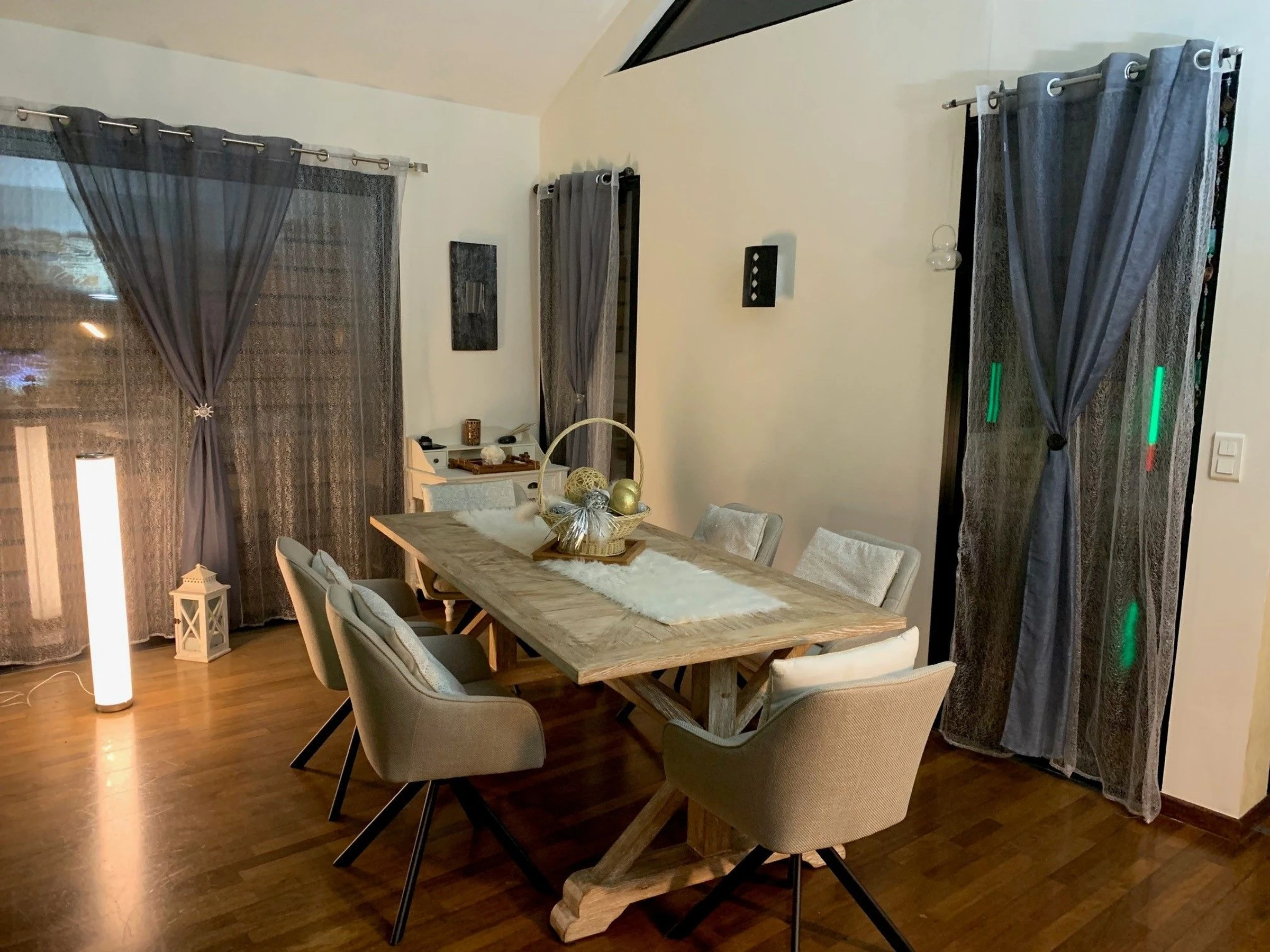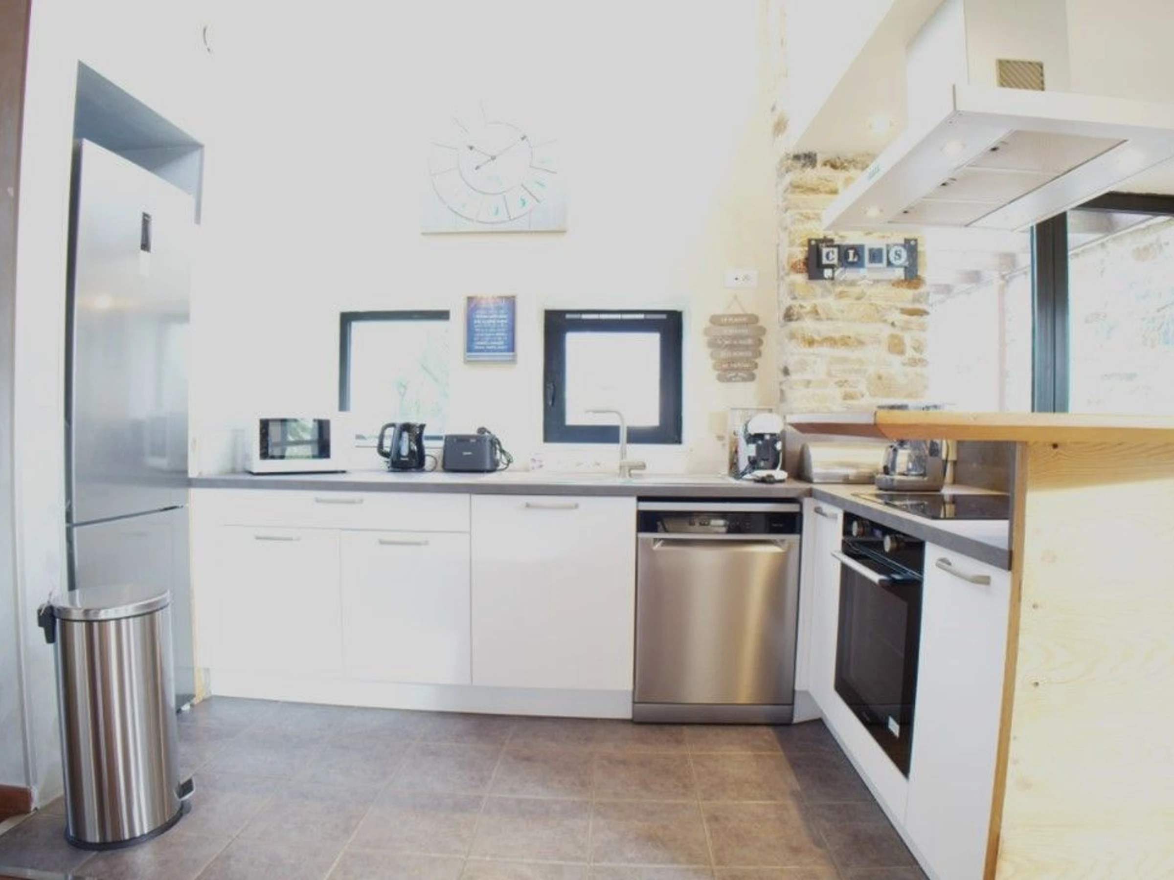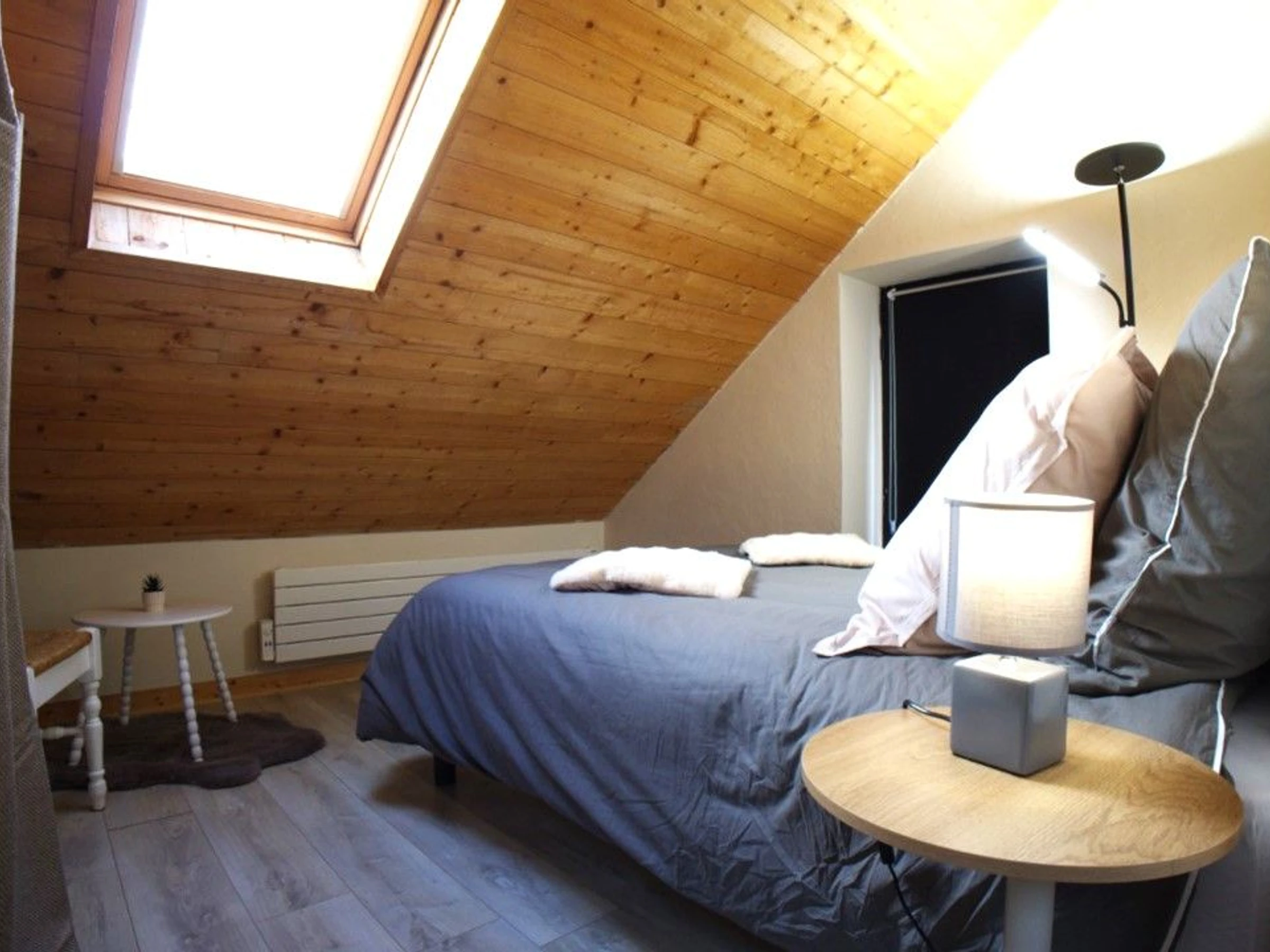 Upstairs: 2 attic bedrooms (1: double bed 140x190cm, 2: two single beds 90x190cm), mezzanine, bathroom and separate WC. Amenities included: Wi-Fi, DVD player, Bluetooth speaker, crib/high chair, Tassimo coffee machine, and electric griddle.