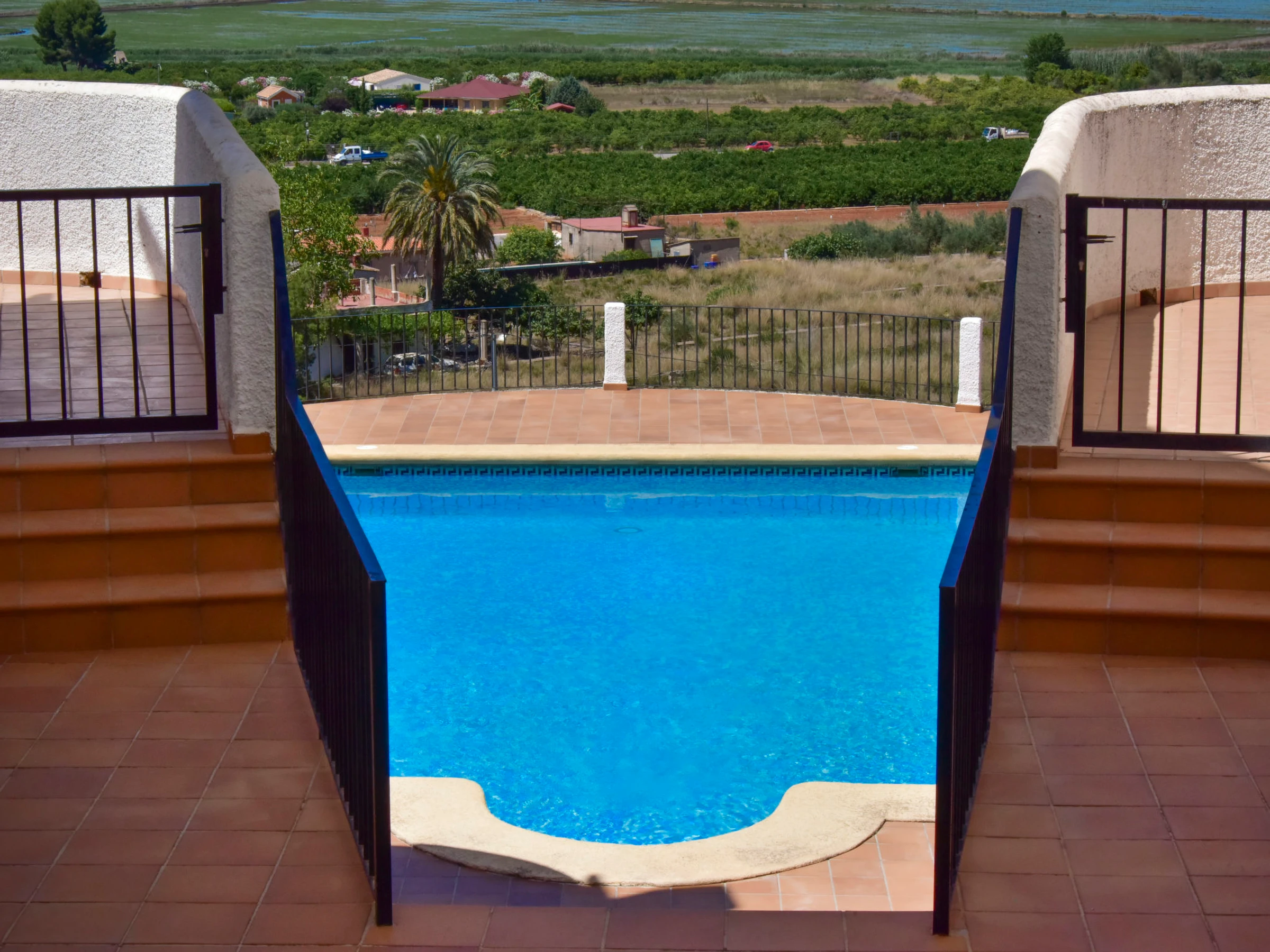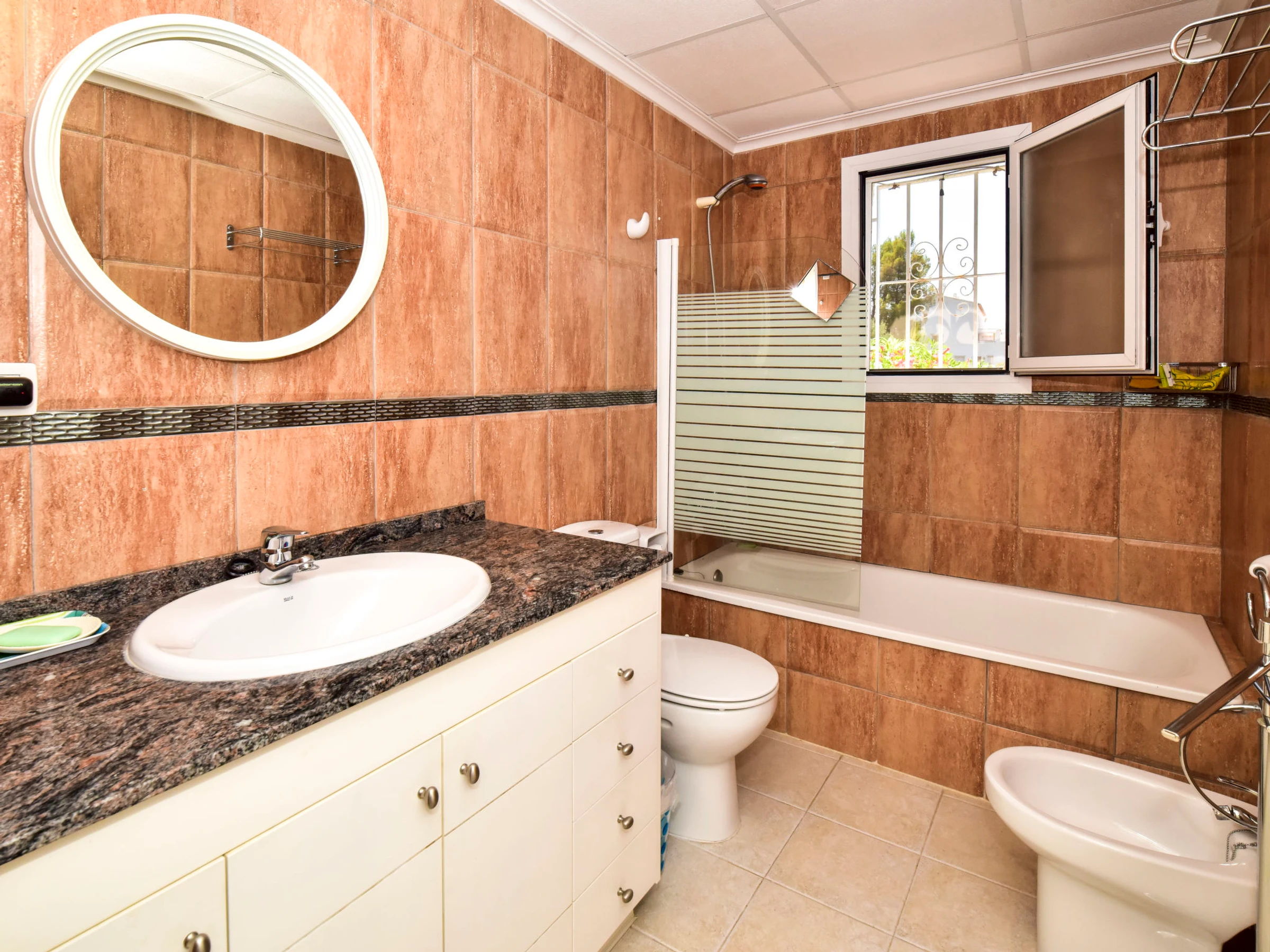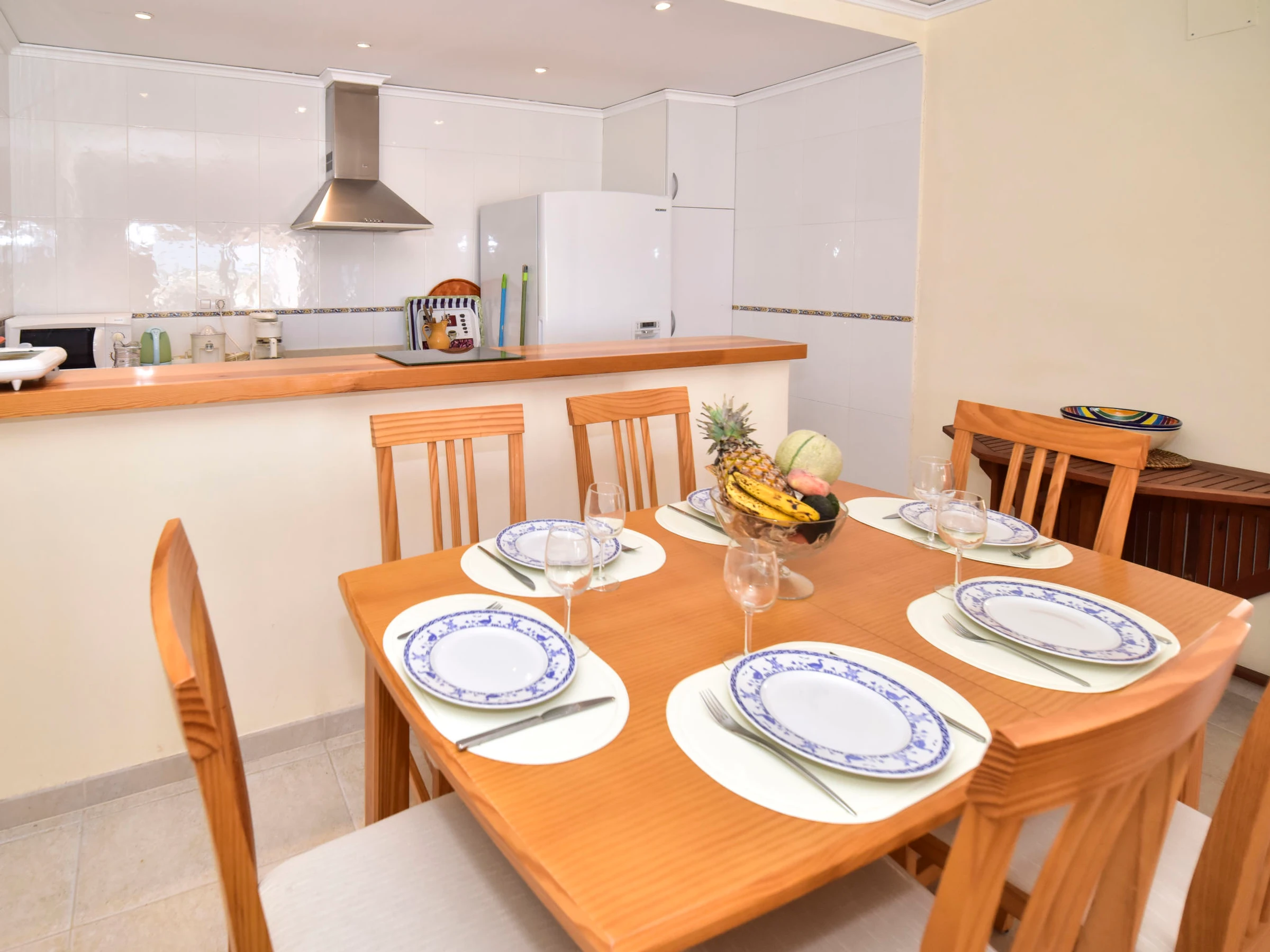 Beautiful, cosy terraced house "Don Pepe", 2 storeys. In the district of Monte Pego, in a quiet, sunny position residential area (villas), traffic calmed area, 7 km from the sea, 7 km from the beach. For shared use: well-kept terraced garden, swimming pool angular (14 x 8 m, seasonal availability: [hidden] - [hidden] with internal staircase. Outdoor shower, parking on the premises. Shop 4 km, supermarket, restaurant 500 m, sandy beach 7 km. Golf course (18 hole) 10 km, tennis 500 m. The owner does not accept any youth groups. First floor is closed off and unoccupied.