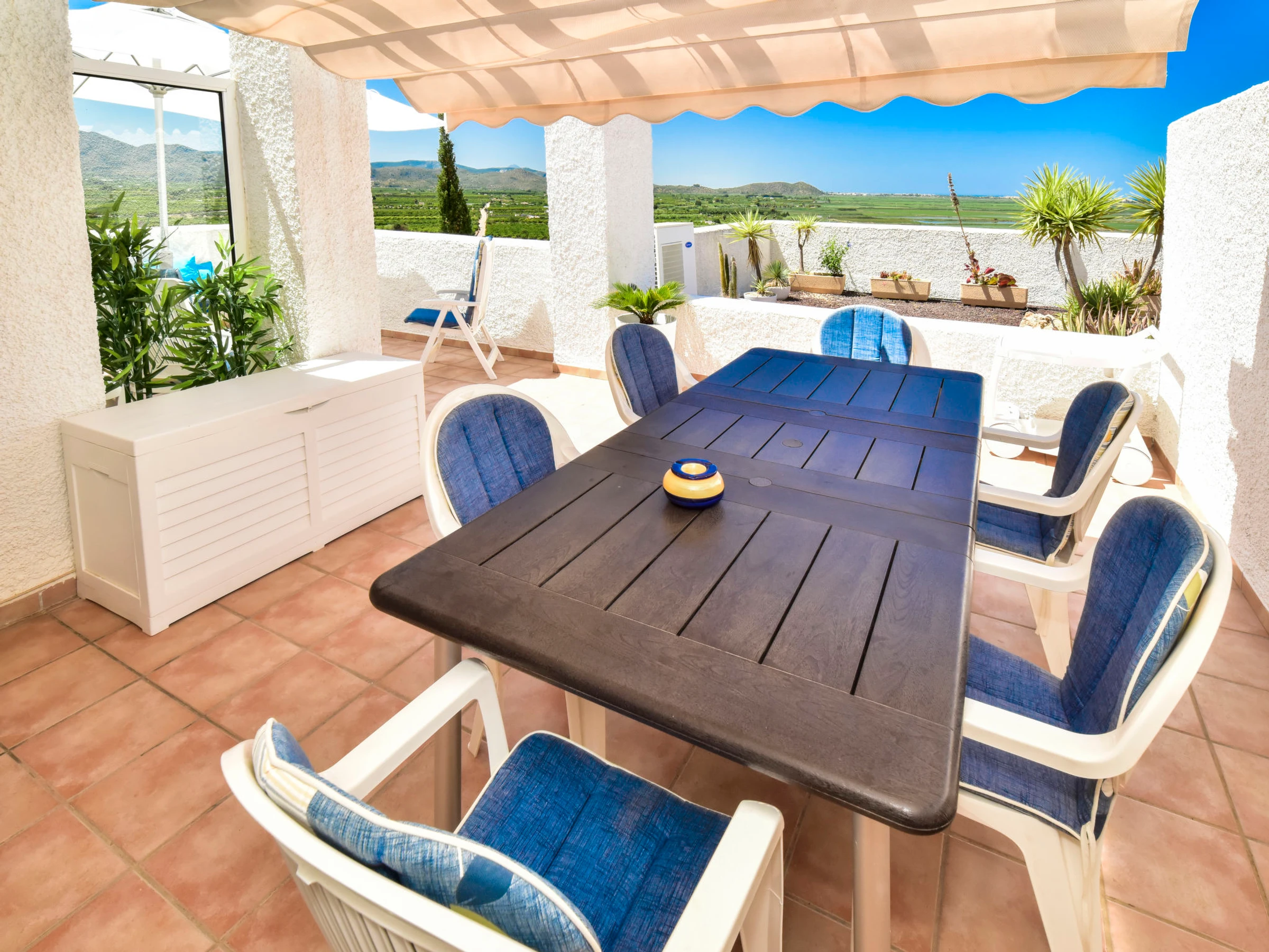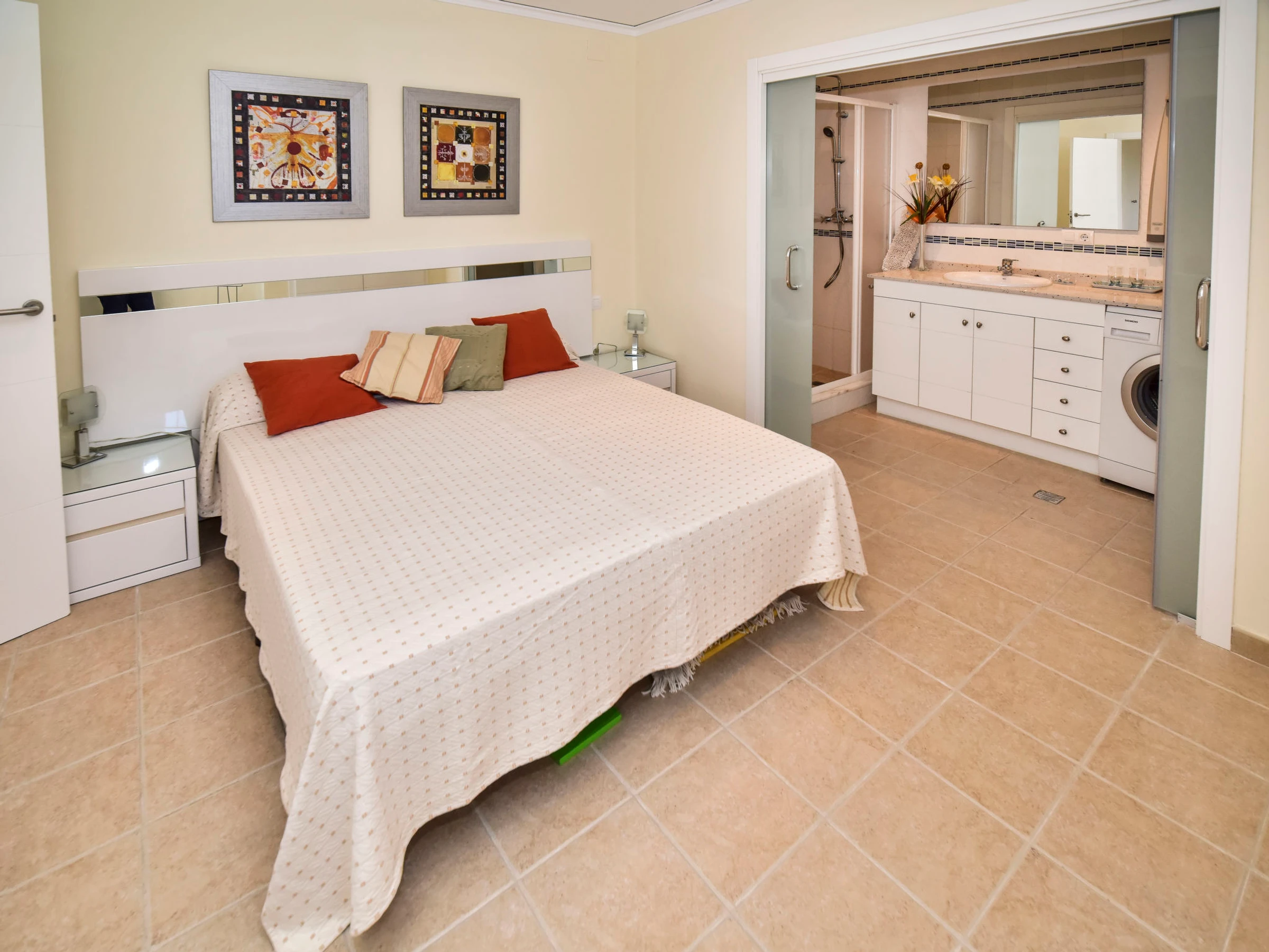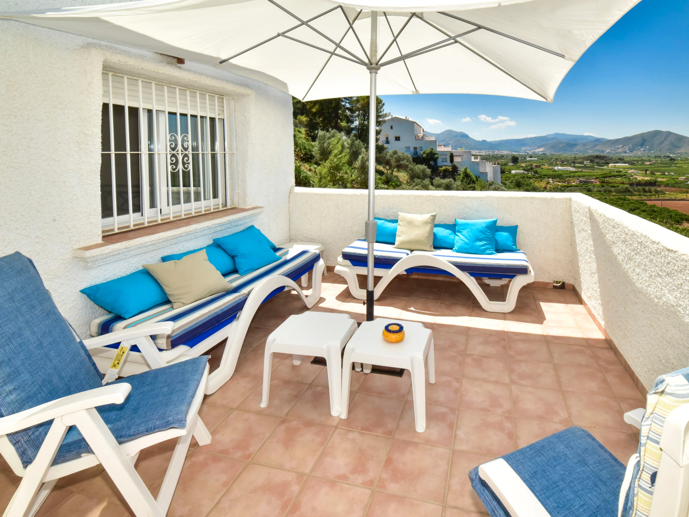 Beautiful, cosy terraced house "Don Pepe", 2 storeys. In the district of Monte Pego, in a quiet, sunny position residential area (villas), traffic calmed area, 7 km from the sea, 7 km from the beach. For shared use: well-kept terraced garden, swimming pool angular (14 x 8 m, seasonal availability: [hidden] - [hidden] with internal staircase. Outdoor shower, parking on the premises. Shop 4 km, supermarket, restaurant 500 m, sandy beach 7 km. Golf course (18 hole) 10 km, tennis 500 m. The owner does not accept any youth groups. First floor is closed off and unoccupied.