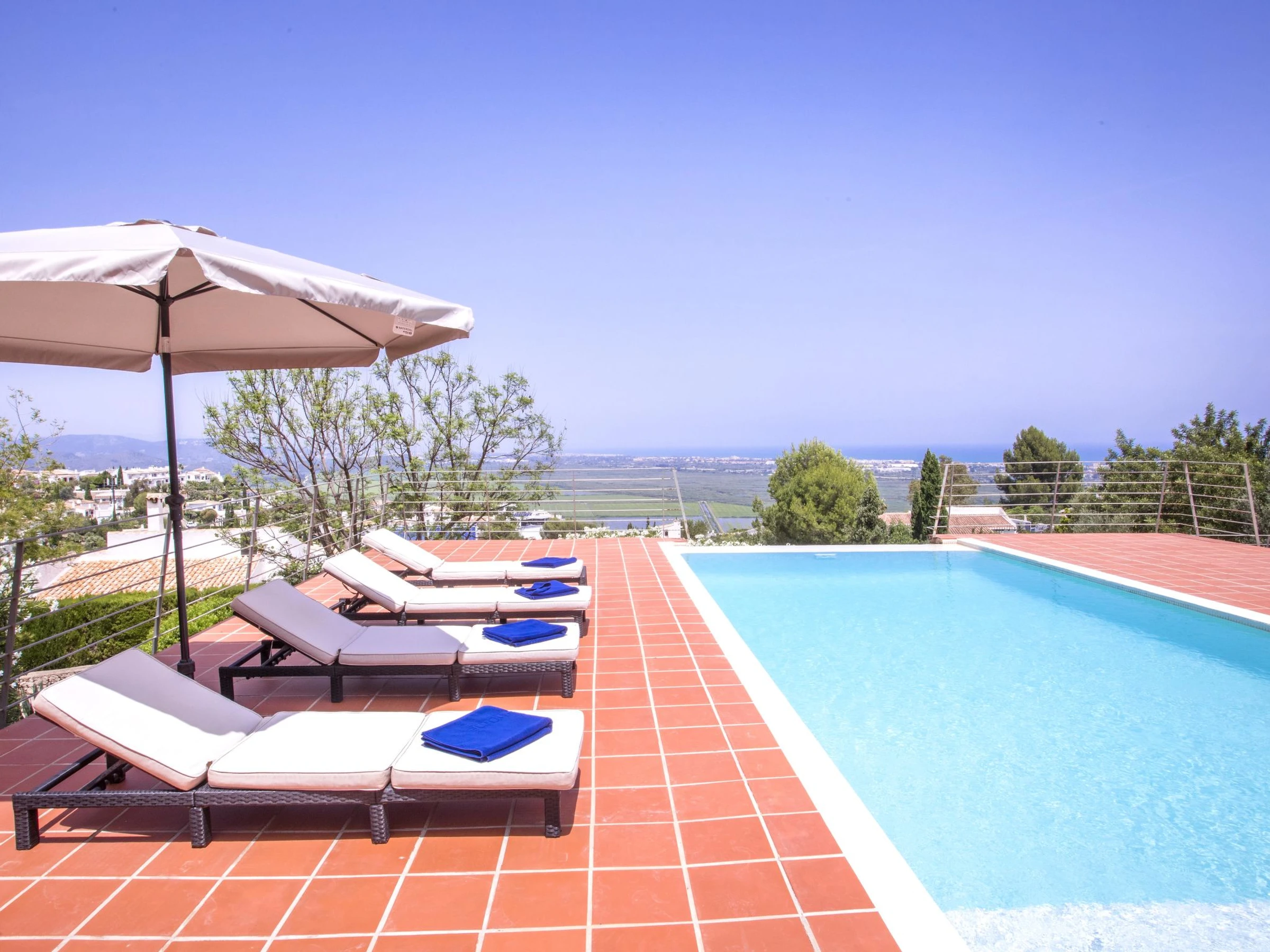 "Casa La Torre", 4-room house 140 m2 on 2 levels. Spacious and bright, very comfortable and stylish furnishings: living/dining room with satellite TV, air conditioning and forced-air heating. Exit to the patio, to the swimming pool. 1 room with 1 french bed (160 cm, length 200 cm), shower/WC, air conditioning and forced-air heating. 1 room with 1 french bed (160 cm, length 190 cm), shower/WC, electric heating and air conditioning. Large, open kitchen (oven, dishwasher, 3 ceramic glass hob hotplates, toaster, kettle, microwave, freezer, electric coffee machine). Upper floor: 1 room with 1 french bed (180 cm, length 200 cm), shower/WC and air conditioning. Large terrace. Terrace furniture, barbecue, deck chairs, sitting area. Marvellous view of the sea, the mountains and the valley. Facilities: washing machine, iron, children's high chair, baby cot for up to 2 year olds, hair dryer. Internet (WiFi, free). Parking. Please note: non-smoking house. To be taken into account: The pool has a jet stream system and it is also an infinity pool. [hidden] // Reg. Nr.: ESFCTU0000030150002845240000000000000[hidden]0