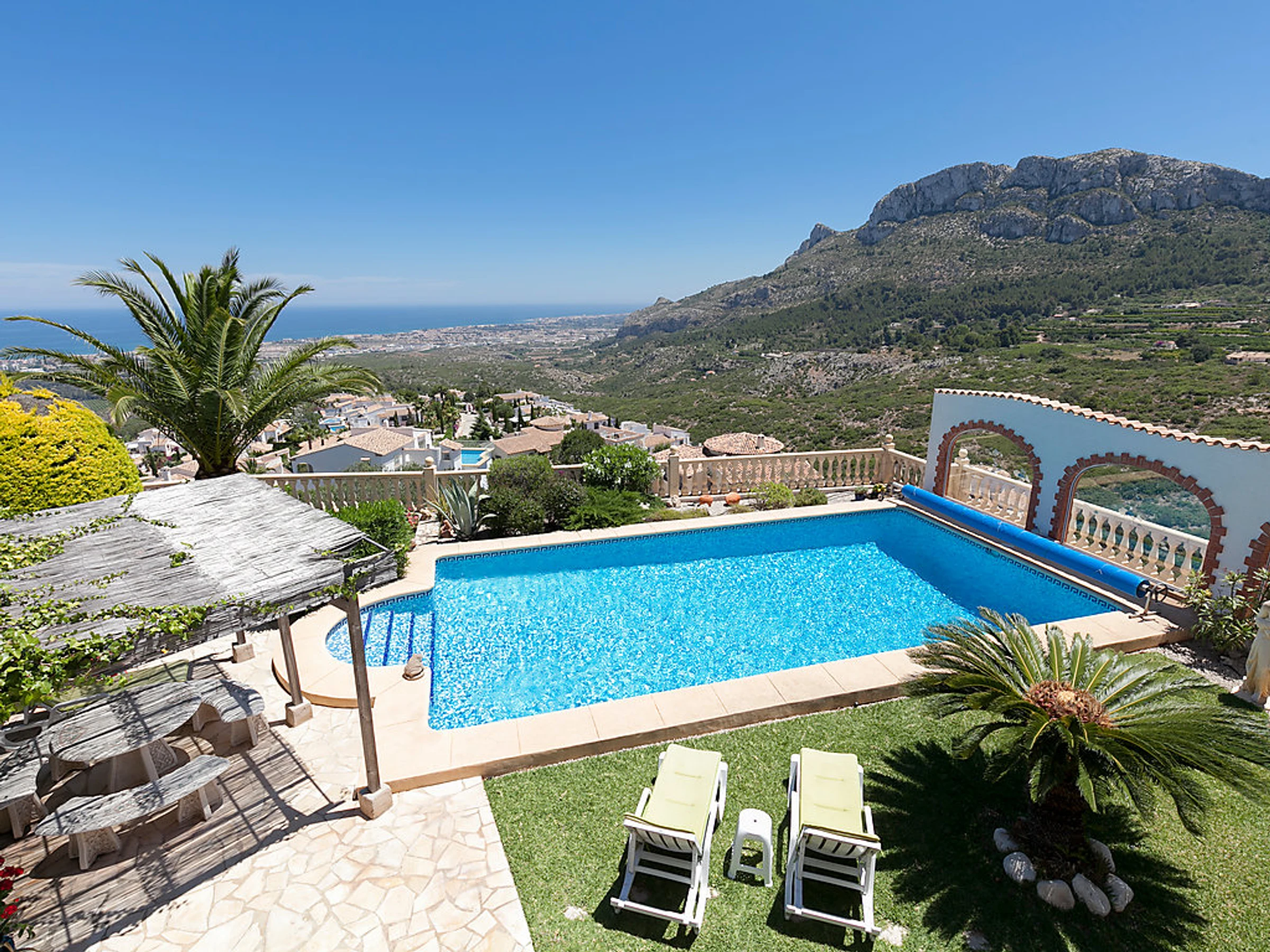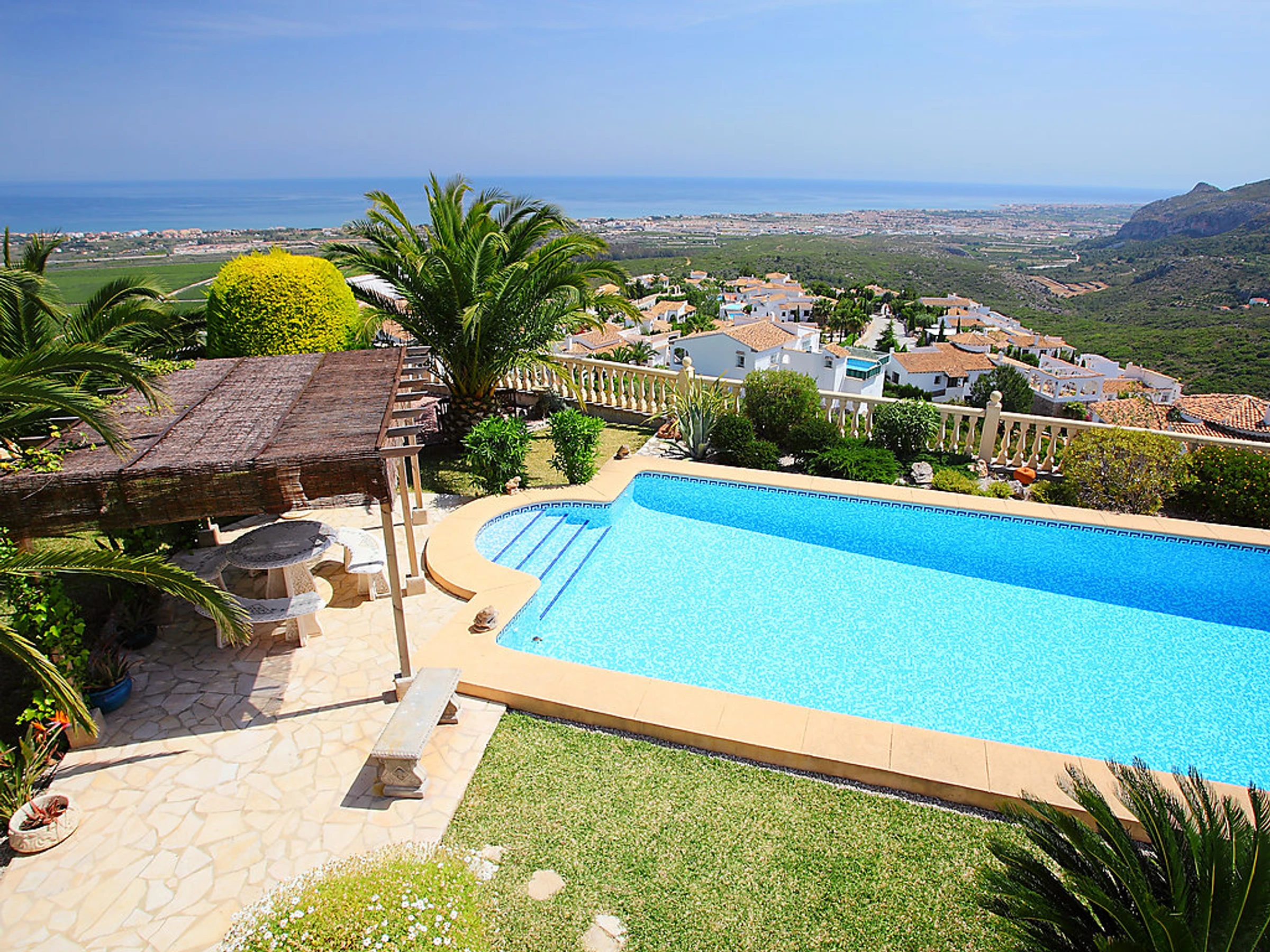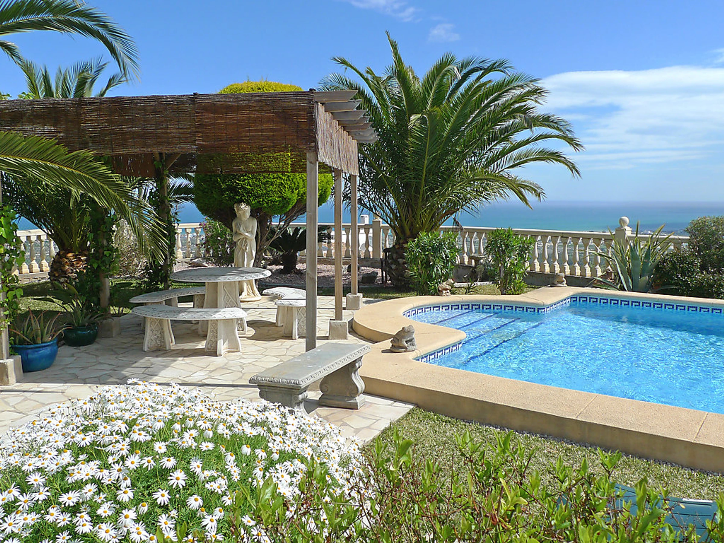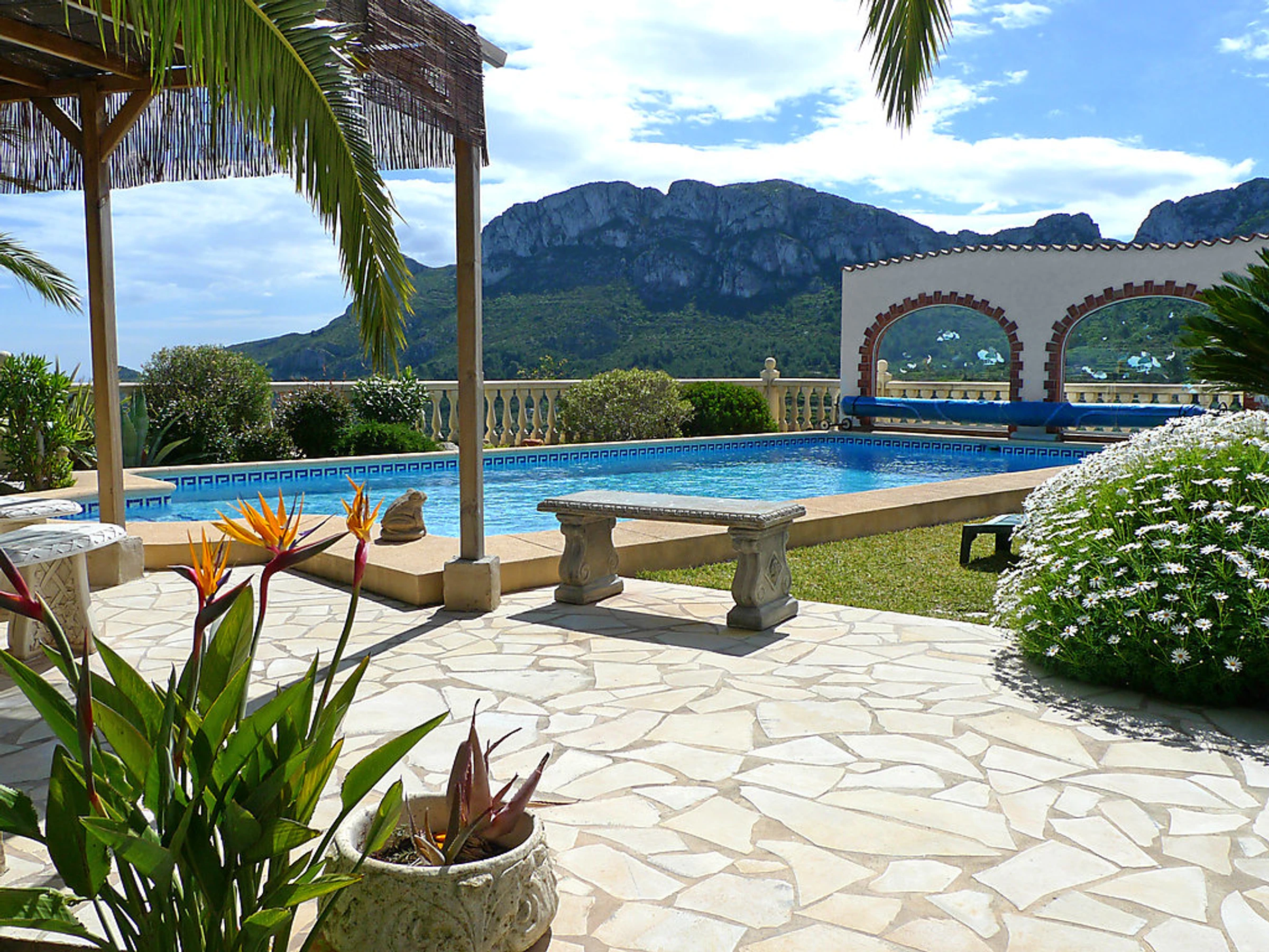 Very beautiful, luxurious villa "Mariposa", 2 storeys. In the district of Monte Pego, in a quiet, sunny, elevated position on top of a hill, 8 km from the sea. Private: garden 1'485 m2 (fenced) with lawn, wildlife garden, flowers and trees, swimming pool (10 x 5 m, 01.01.-31.12.) with internal staircase. In the house: central heating system. Roofed, parking. Shop 6 km, supermarket 6 km, shopping centre 12 km, restaurant 1 km, bar 1 km, sandy beach 8 km. Golf course 12 km, tennis 1 km.