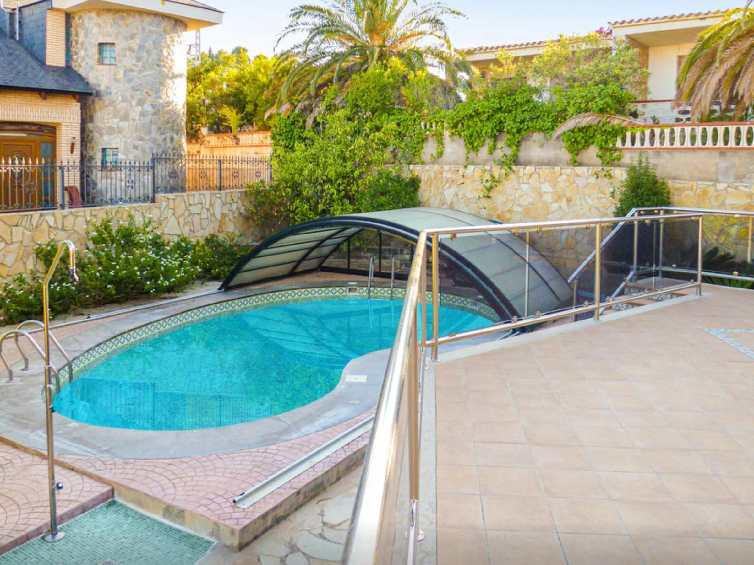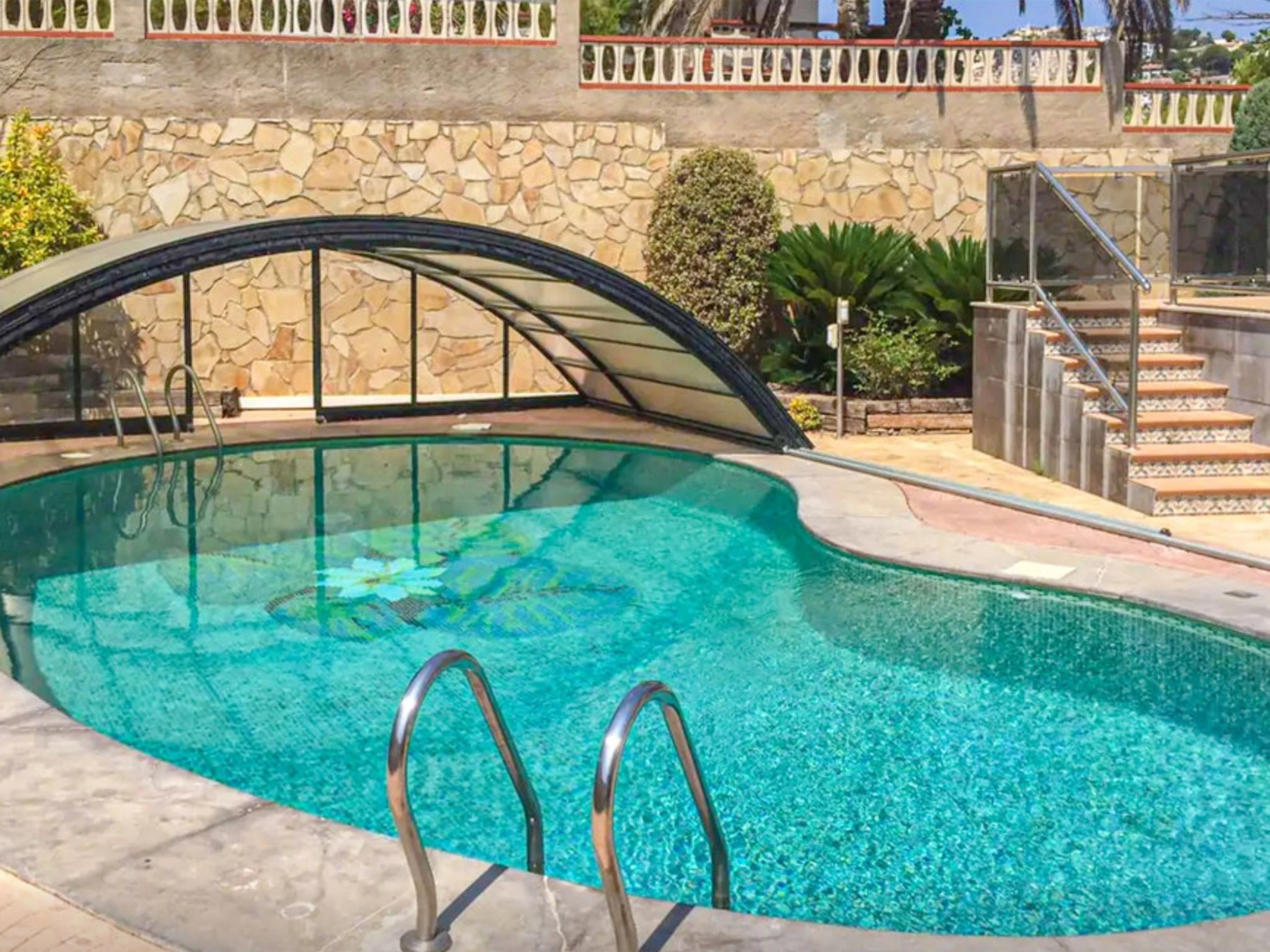 Very comfortable villa "Los Olivos". In the centre of Peñiscola, in a central, sunny position, 500 m from the sea, 400 m from the beach. Private: property with wildlife garden, swimming pool (8 x 4 m, 01.04.-31.10.). Outdoor shower, barbecue, single garage at the house, public parking on the road. Supermarket 400 m, restaurant, bar, café 100 m, sandy beach "Playa Sur" 400 m. Sports harbour 900 m, golf course 32 km. Groups of teenagers on request only.