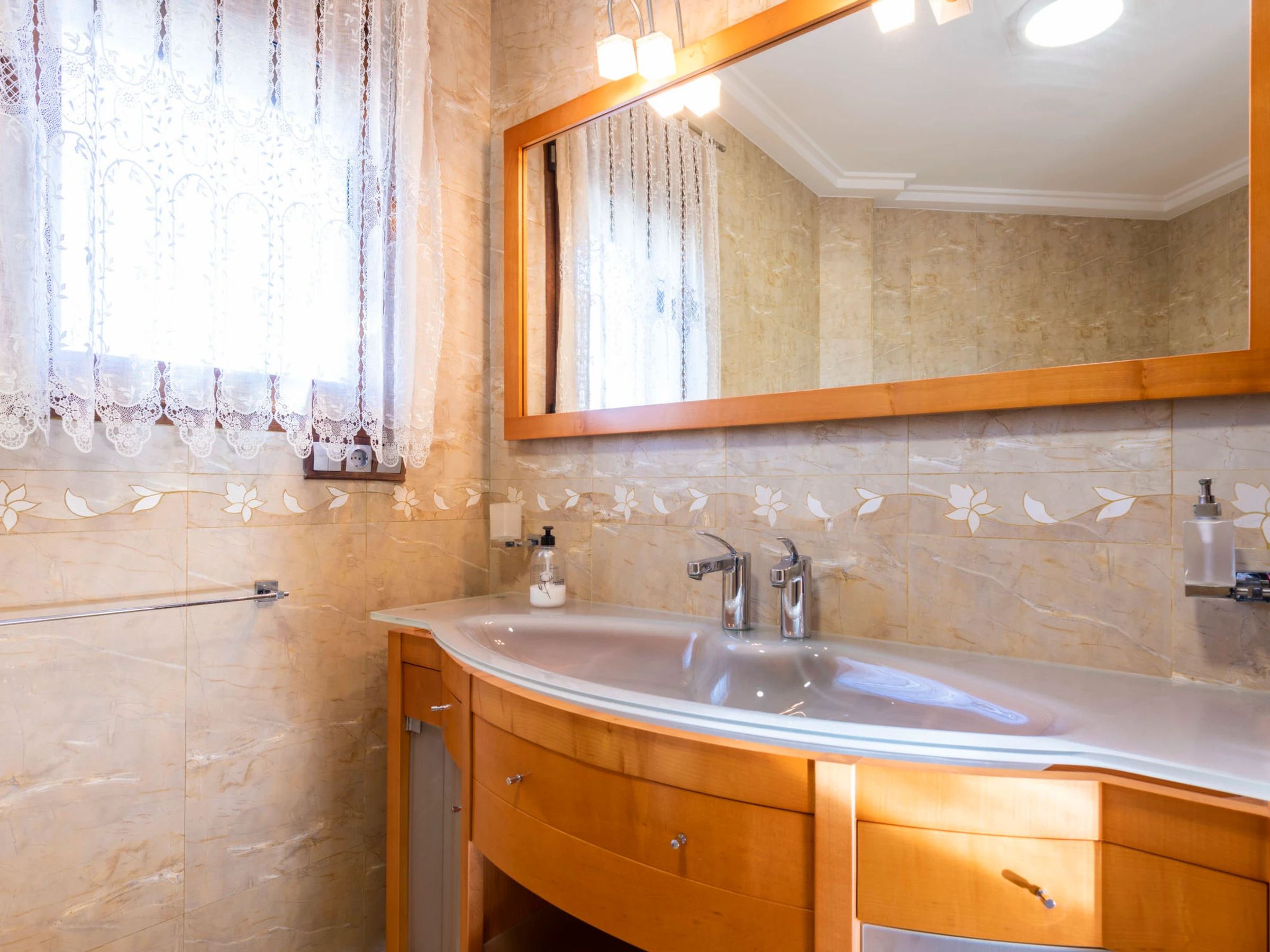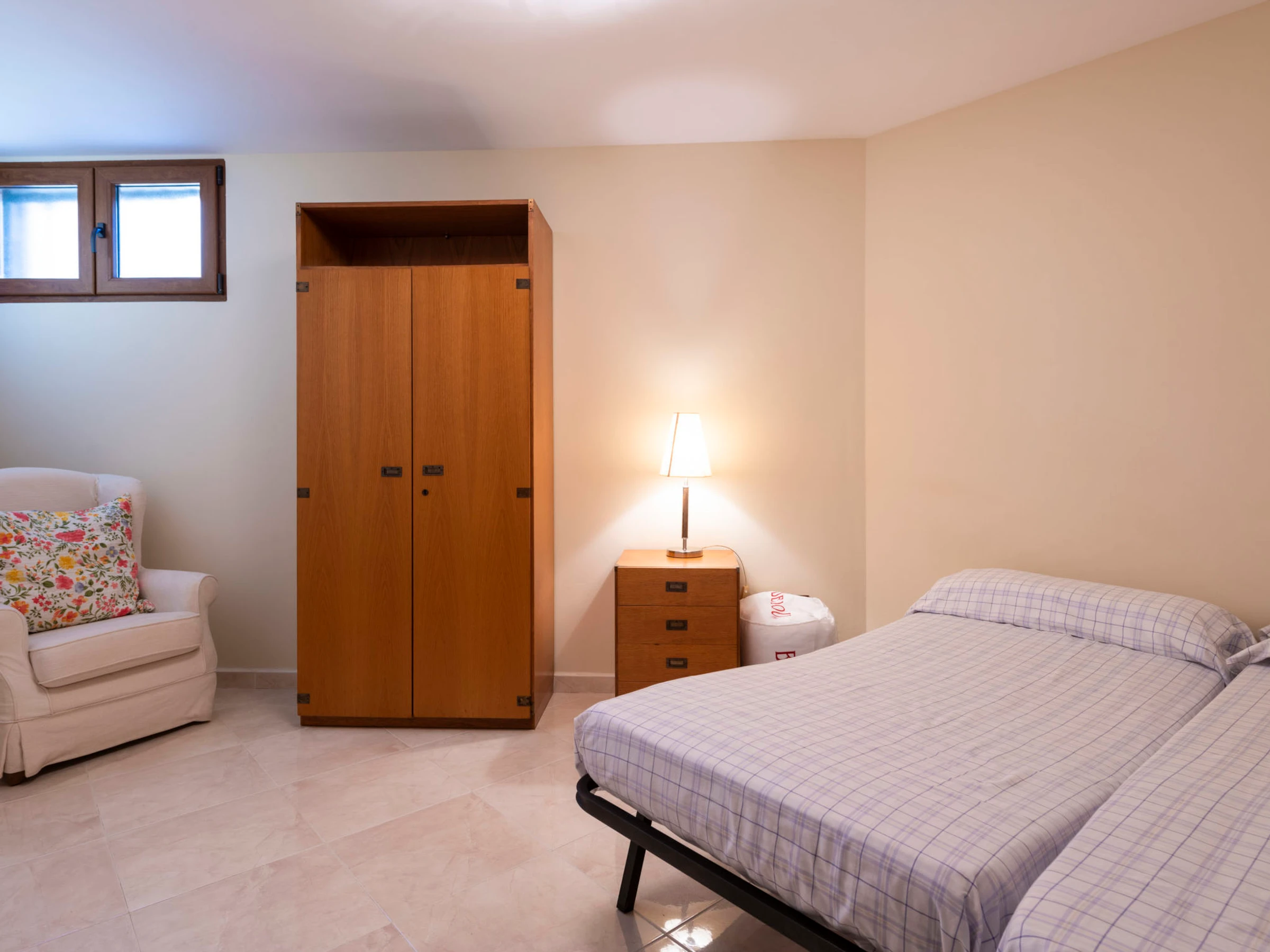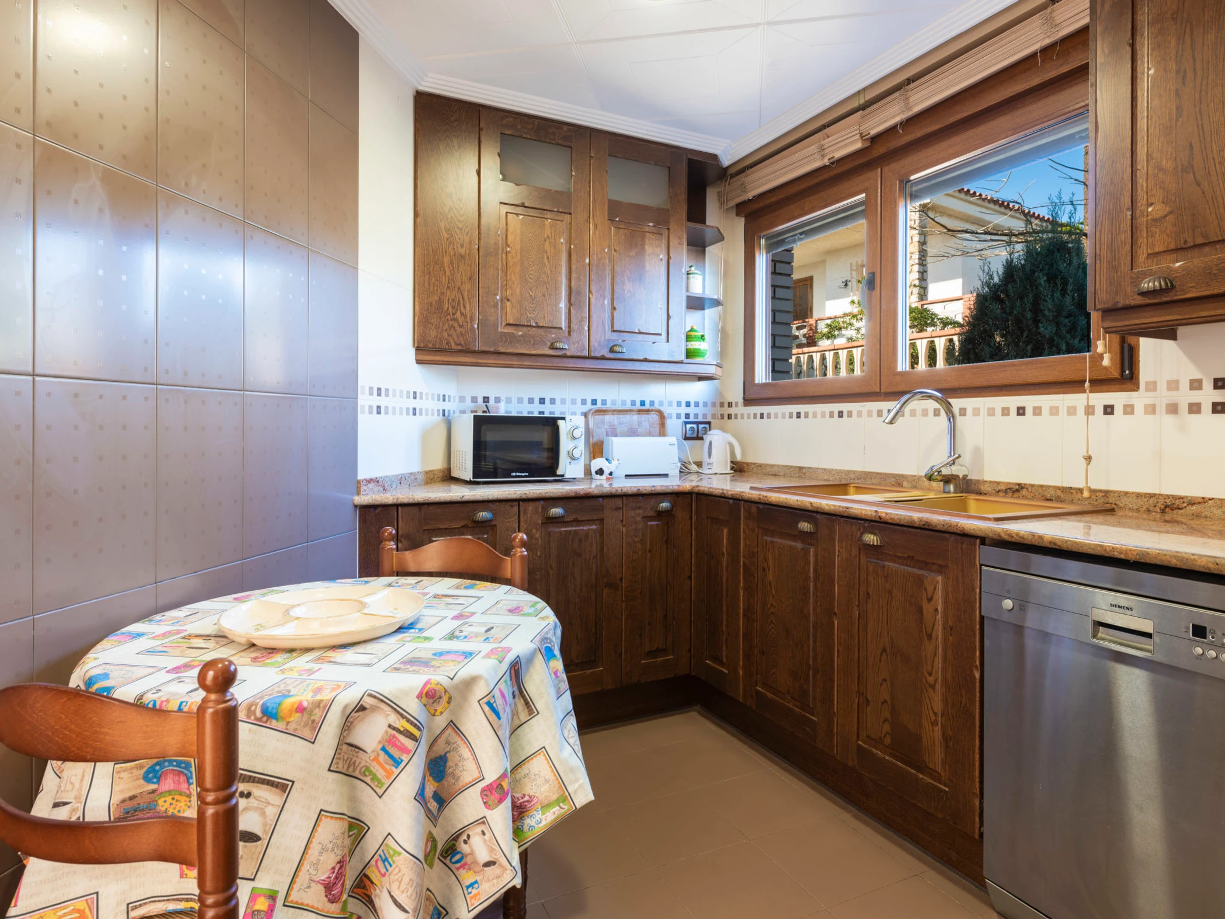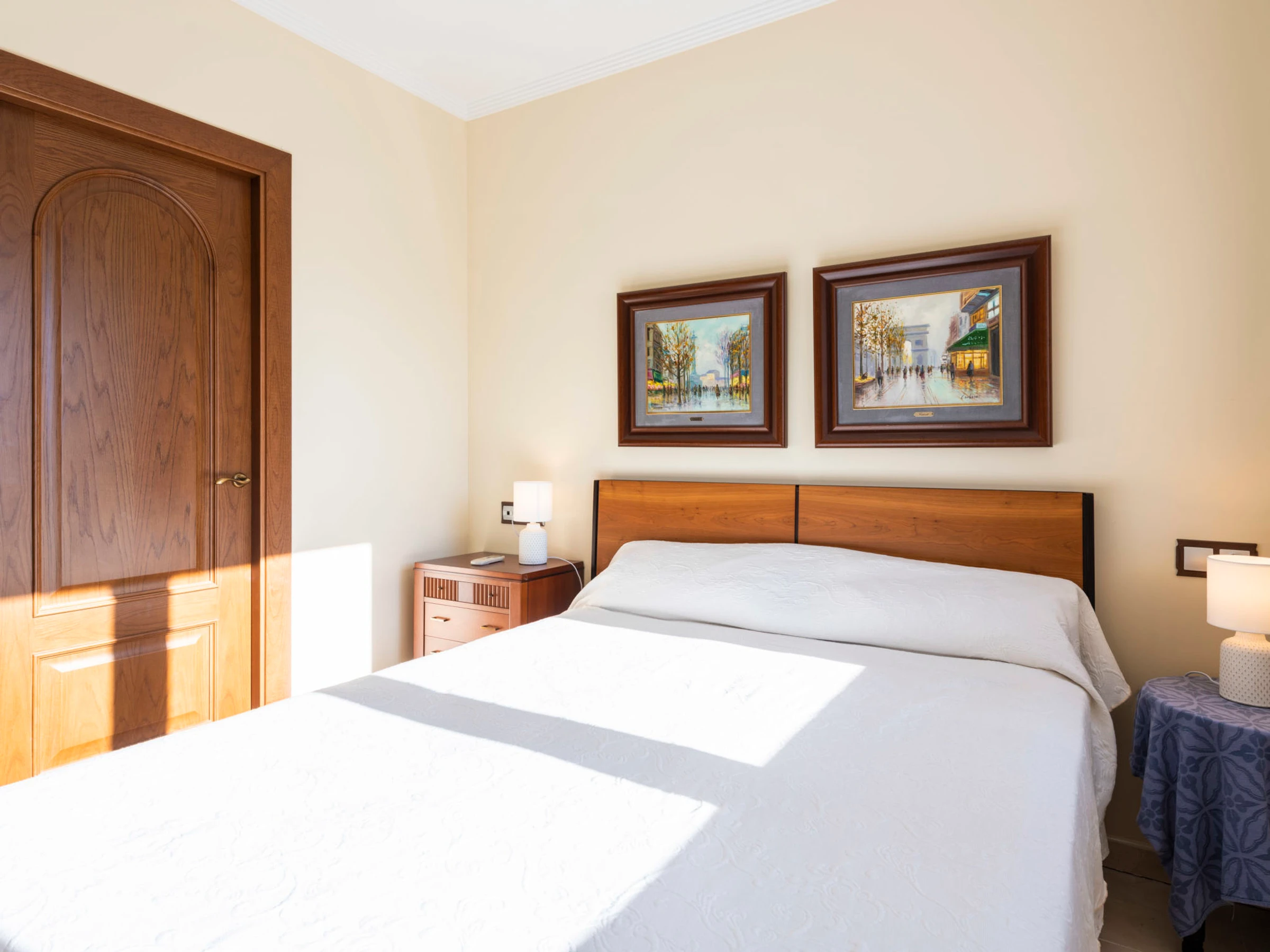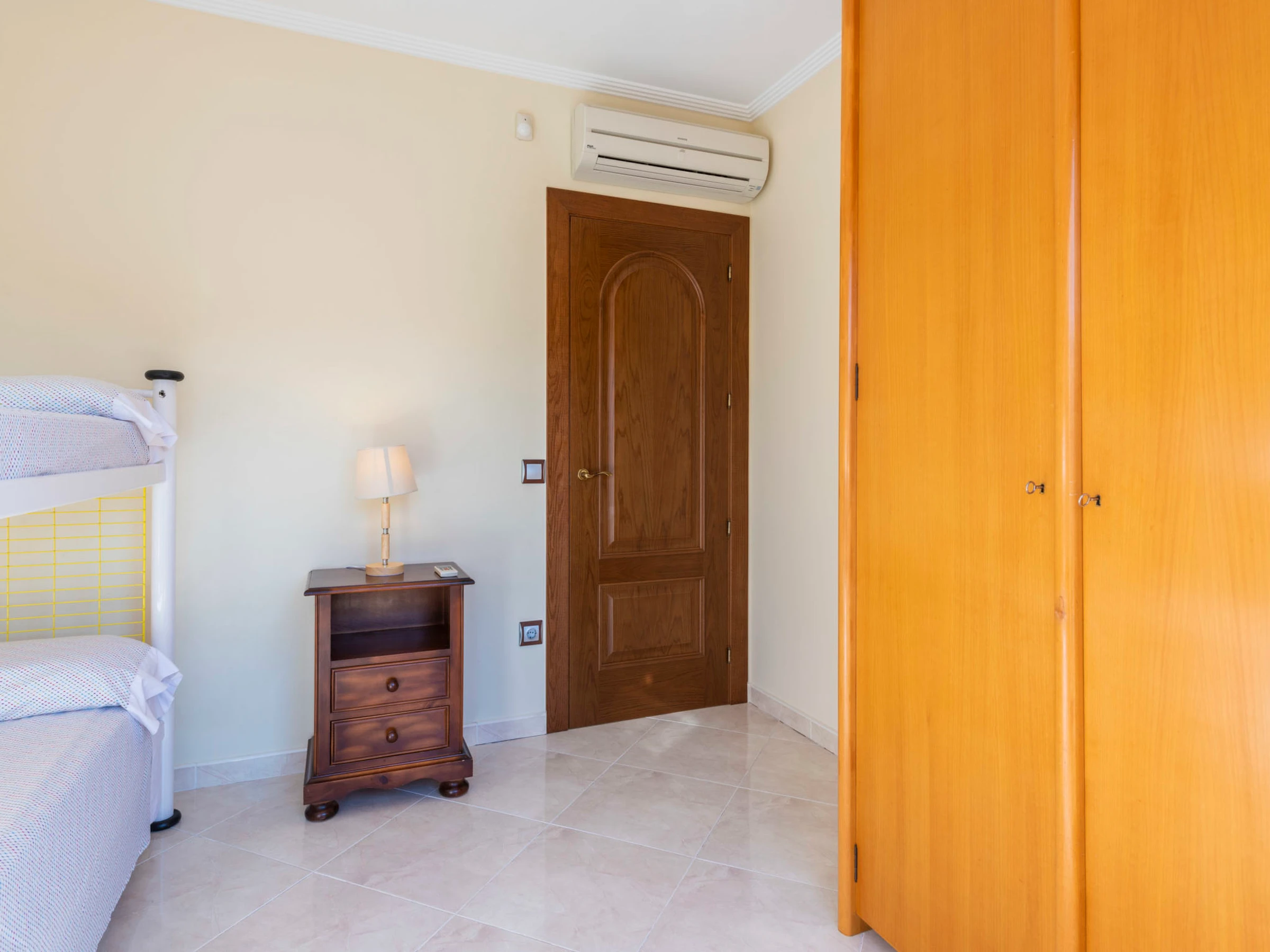 "Los Olivos", 5-room villa 200 m2 on 3 levels. Spacious and bright, very comfortable furnishings: living/dining room with 1 double sofabed, dining table, digital TV and air conditioning. Exit to the terrace. 1 double bedroom with 1 french bed (150 cm, length 190 cm), shower/bidet/WC. Kitchen (oven, dishwasher, 4 ceramic glass hob hotplates, toaster, kettle, microwave, freezer, electric coffee machine) with small dining table. Oil heating. On the lower ground floor: 1 double bedroom with 2 beds (90 cm, length 190 cm). Oil heating. Upper floor: 1 double bedroom with 1 french bed (150 cm, length 190 cm). Exit to the terrace. 1 double bedroom with 1 x 2 bunk beds (90 cm, length 190 cm), air conditioning. Bath/bidet/WC. Oil heating. Balcony, 2 terraces. Terrace furniture, barbecue, deck chairs (4). Panoramic view of the sea, the swimming pool and the resort. Facilities: washing machine, iron, children's high chair, baby cot, hair dryer. Internet (WiFi, free). Garage (3 cars). Suitable for families. 1 pet/ dog allowed. [hidden]