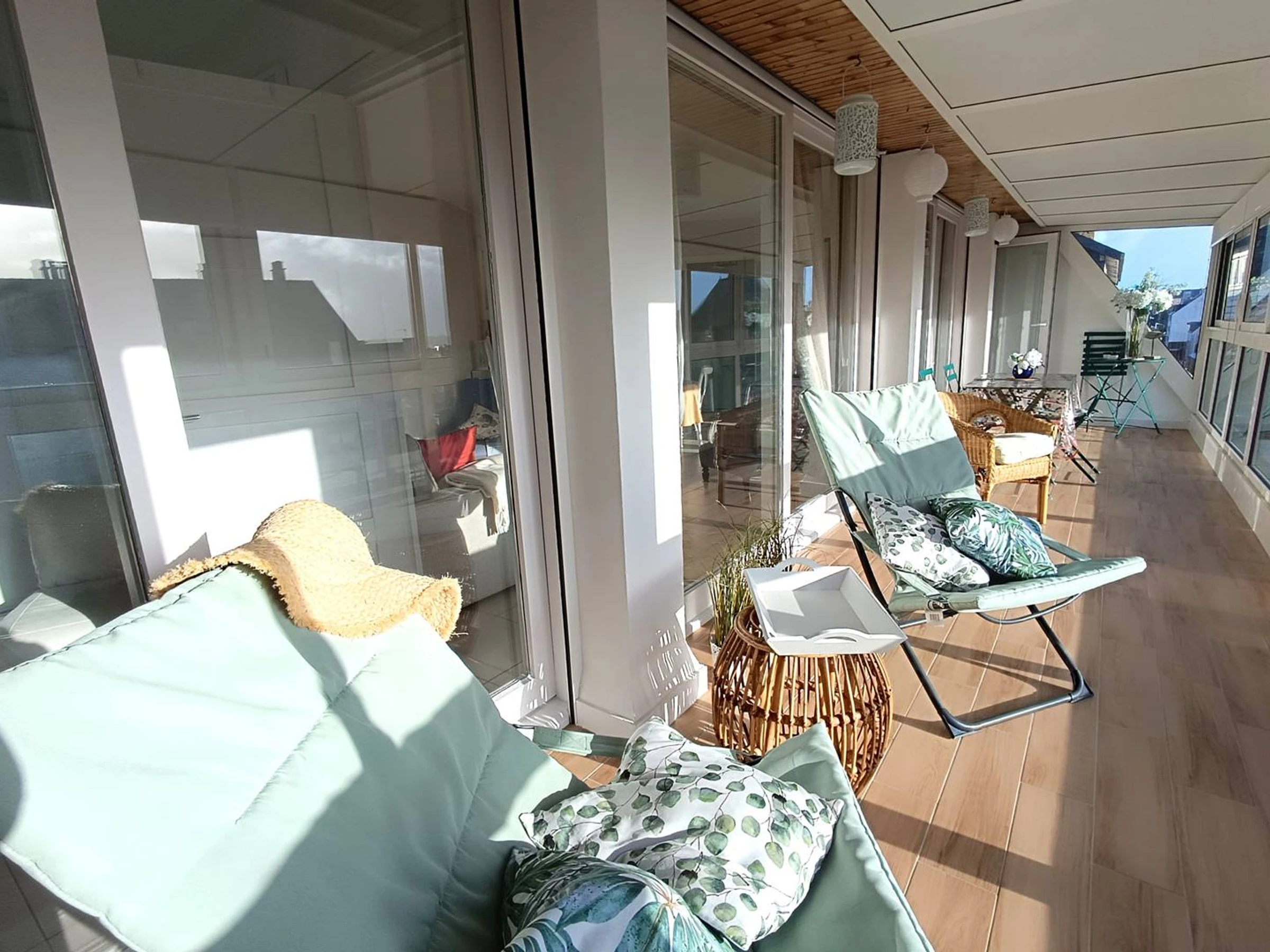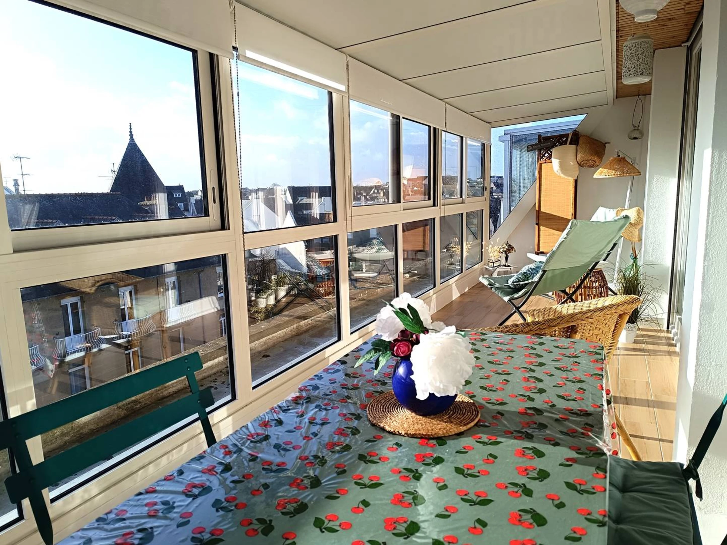 No. 938 - A recently built, well-equipped, bright, 3-star apartment with Wi-Fi in the center of Perros-Guirec. It is located on the 5th and top floor with elevator of the Kreiz Ker Braz residence, located on Rue des 7 Iles, 800m from Trestraou beach. It includes: