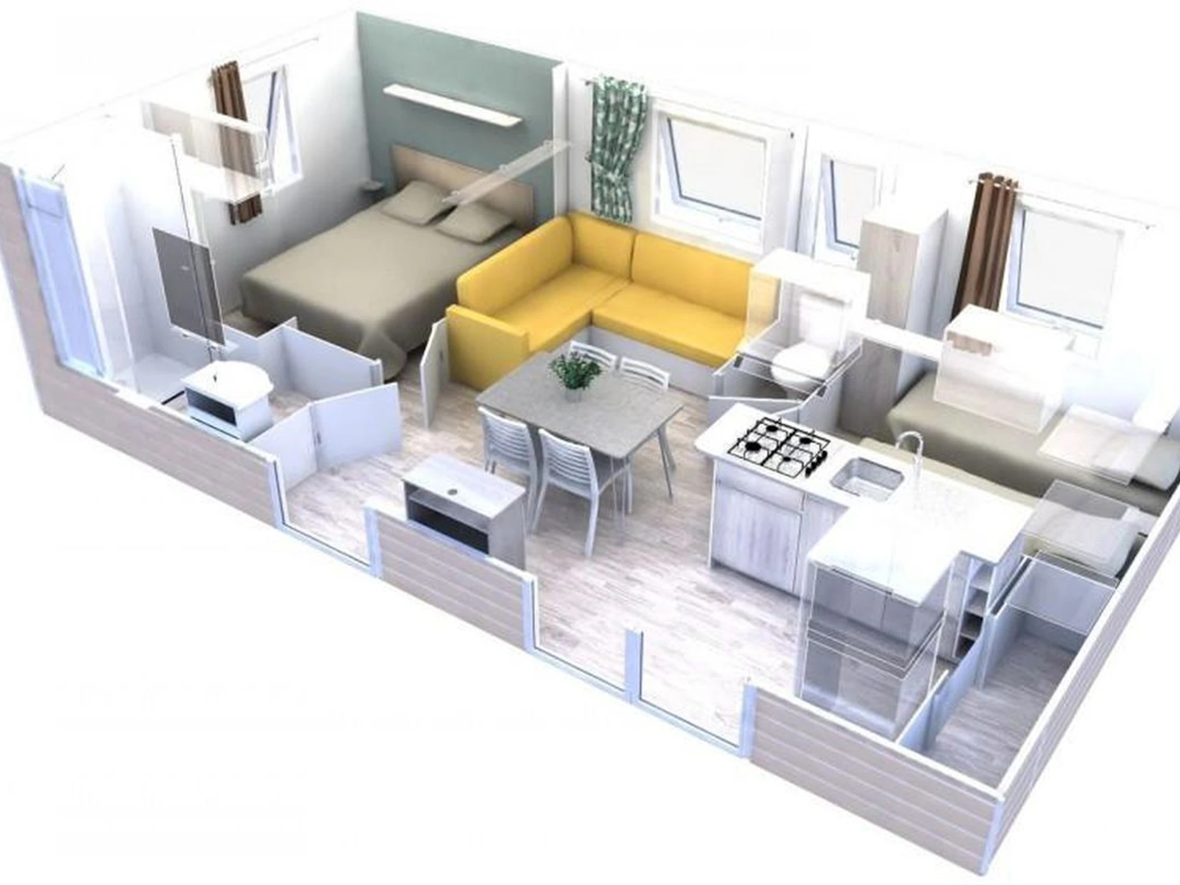 29m² mobile home for 4 people: