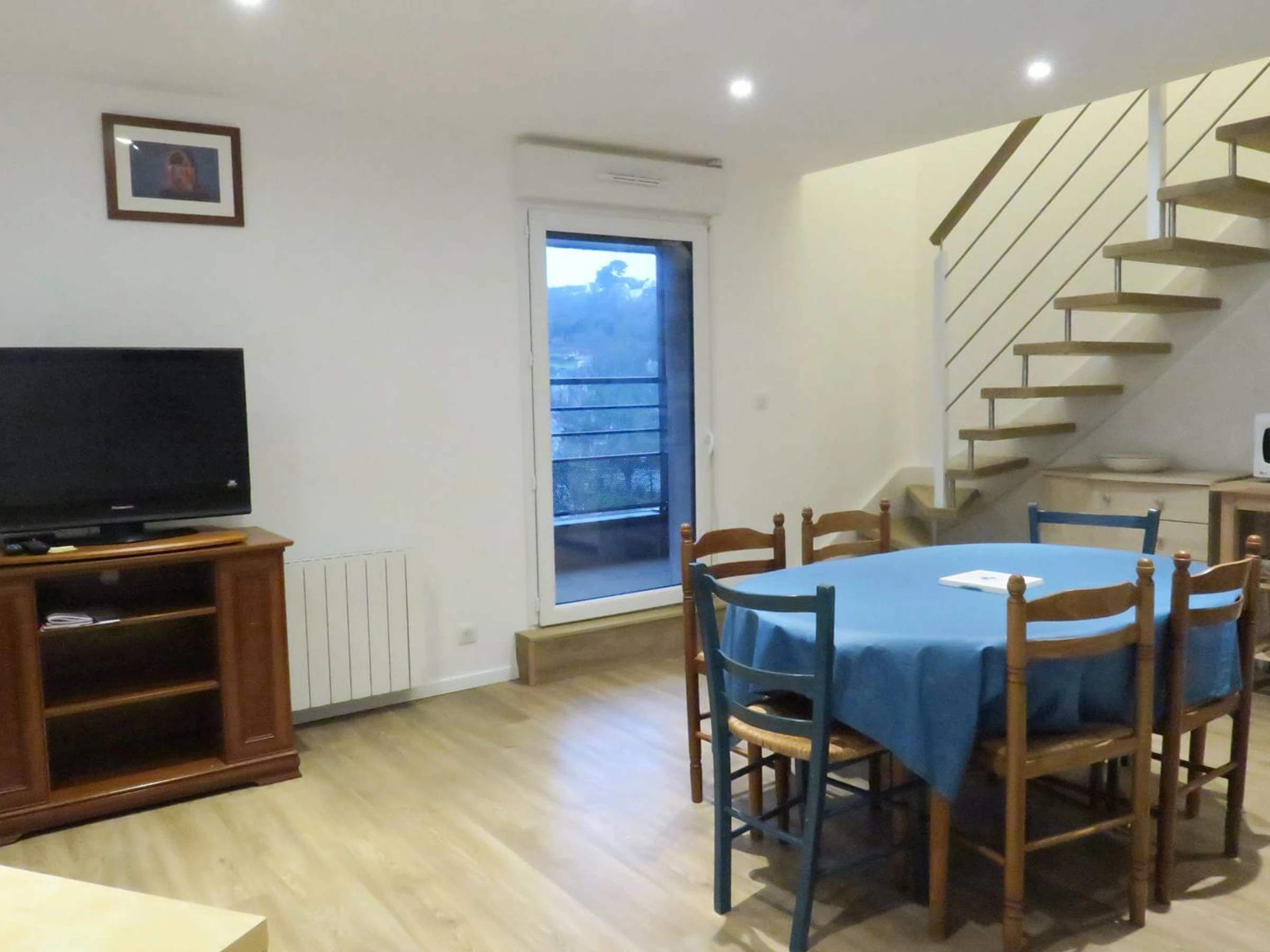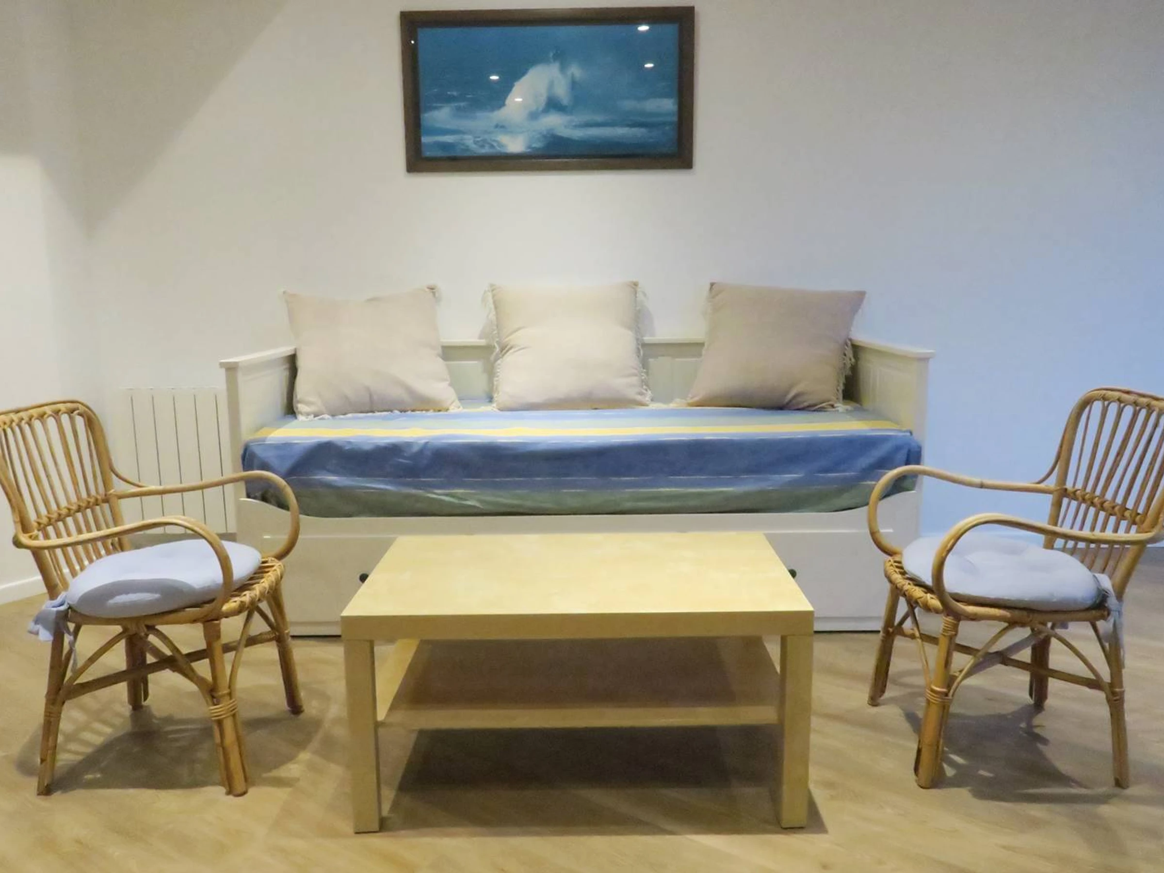 1 living room with sofa bed (sleeping 1 person), TV, overlooking balcony terrace -