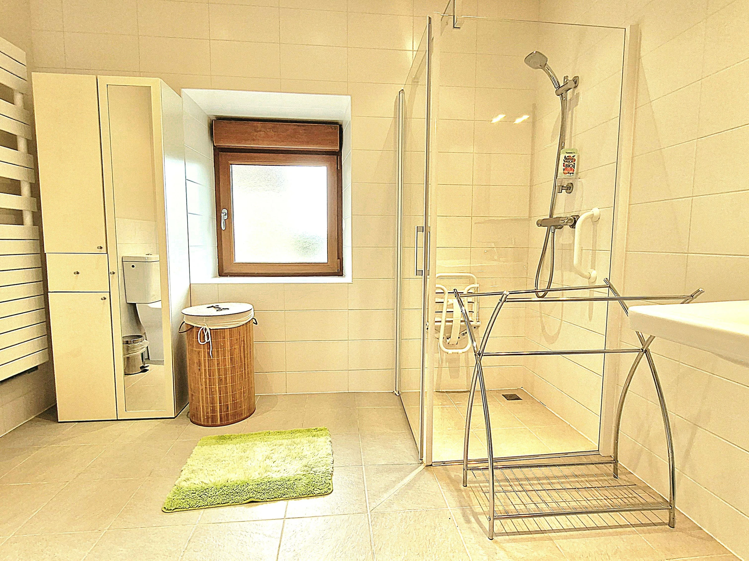 All-inclusive accommodation (bed linens with beds made upon arrival, towels, kitchen linens, heating, electricity, and end-of-stay cleaning). The bathroom in the large gîte is equipped with a chair and grab bar in the shower, a toilet grab bar, and an armchair that fits under the sink.