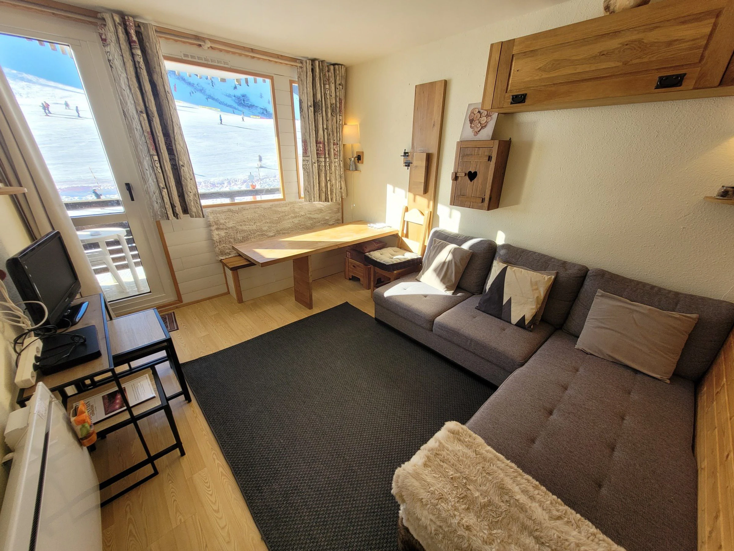 This studio is located on level "H" of the Paquebot des Neiges building and is accessible via the "Zodiac" elevator. It comprises a living room, a separate kitchen, and a bathroom with a toilet. The south-facing balcony offers a lovely view of the slopes.